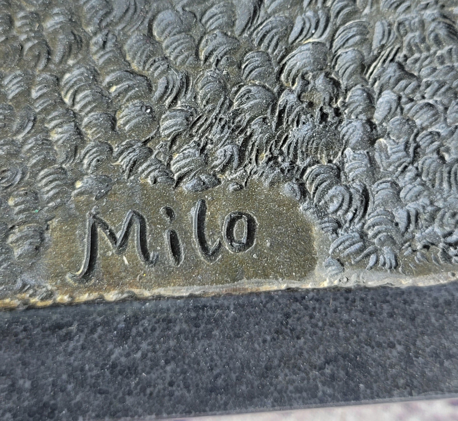 The bronze sculpture stands proudly on a sleek black marble base, adding a touch of elegance and stability to the piece. A rich brown patina brings depth and character to the artwork, enhancing the texture and contours of the sculpture. This limited-edition masterpiece is signed by the renowned artist Milo, ensuring its authenticity and value as a collector's item.