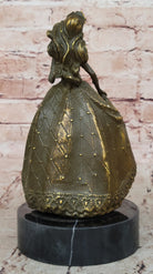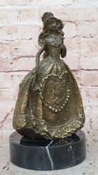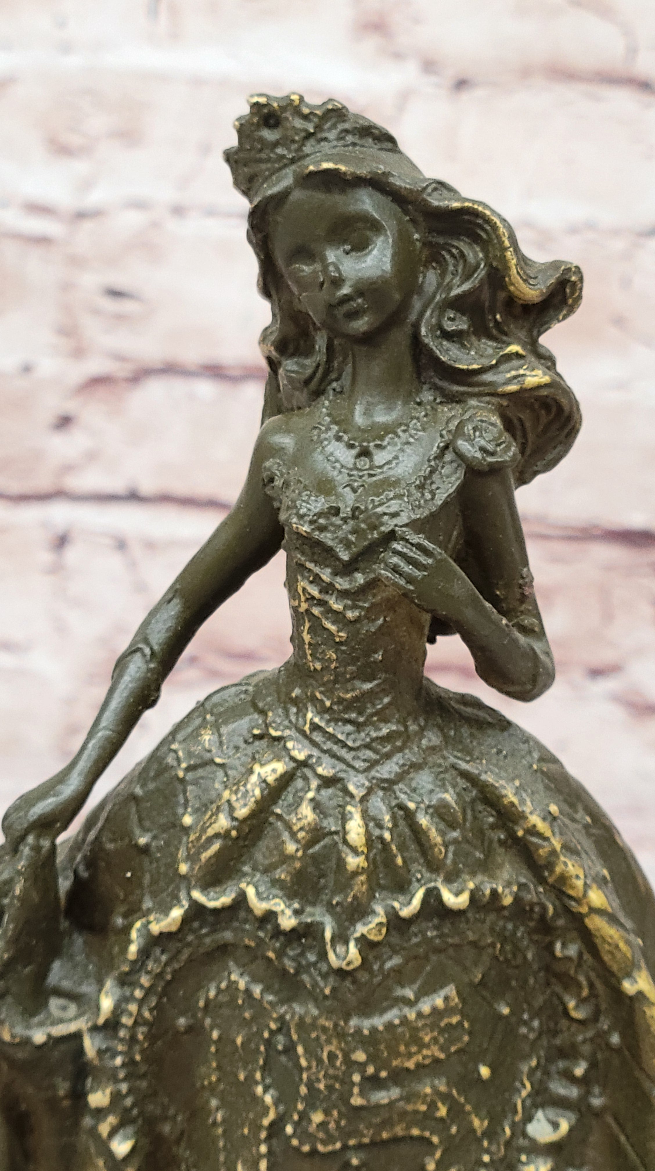 This handmade original bronze sculpture by Jean Patoue captures the grace and poise of a young pageant girl, elegantly portrayed as a queen. Dressed in regal attire with a composed expression, the figure stands tall and confident, embodying beauty, dignity, and youthful charm. The sculpture exudes a sense of celebration and admiration for the spirit of young achievers. Created using the time-honored lost wax method, this artwork is meticulously detailed and hot cast in genuine bronze. The rich brown patina enhances every fold of her gown, the texture of her hair, and the delicate lines of her youthful face. Patoue’s artistry brings out the personality and presence of the subject, making this piece not just a sculpture, but a narrative in bronze. Mounted on a black marble base for a refined finish, this statue serves as an elegant decorative piece for any setting—be it a living space, display shelf, or personal art collection. Ideal for collectors and admirers of feminine strength, grace, and ceremonial beauty, it is a timeless tribute to the confidence and aspiration of young women.