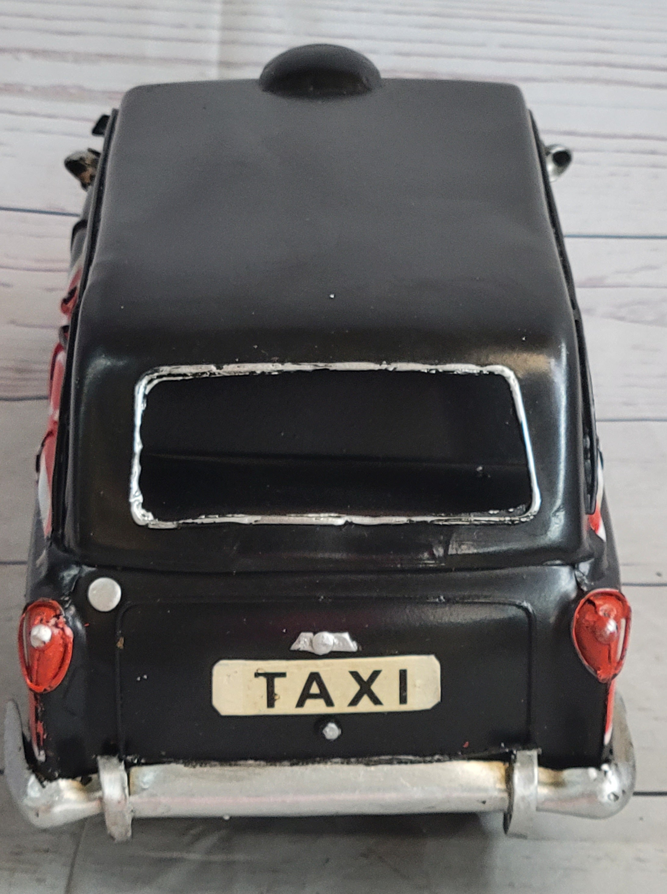 Decorate for any table, desk, or shelf in sporty fashion with Our Rustic 1966 Black Austin Taxi . Featuring a rustic iron frame, this charming vintage Classic Car includes a fine detail's. The Black metal Exterior are in natural colors. For more than 20 years, European Finery has been providing high quality sculpture, accessories, and decor for any room for its customers' homes. Based in New York area, We grown to become one of the largest importers and wholesalers of home decor and hand made sculptures in the country. Whether you're looking for accent Sculpture, wall decor, vintage Toys, or just about any outdoor lifestyle sculpture , We Became a proven and trustworthy name that has become synonymous with superiority.