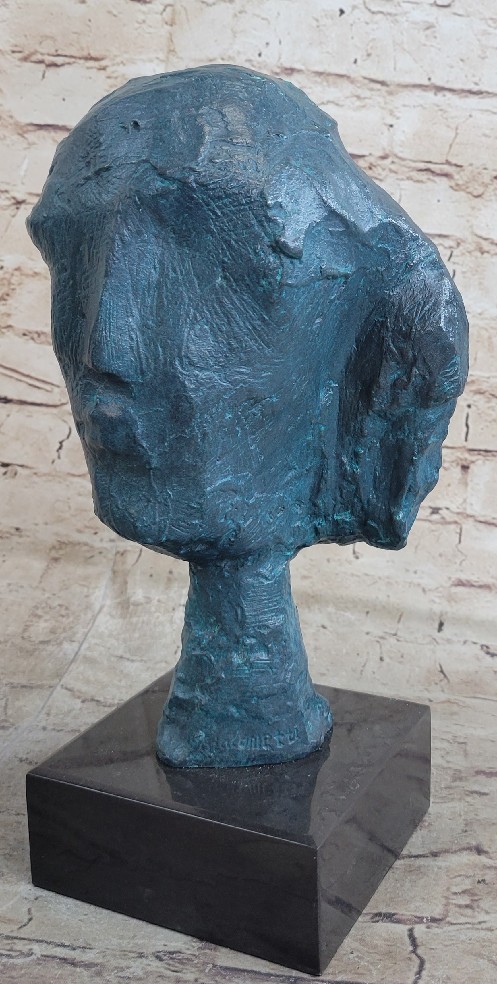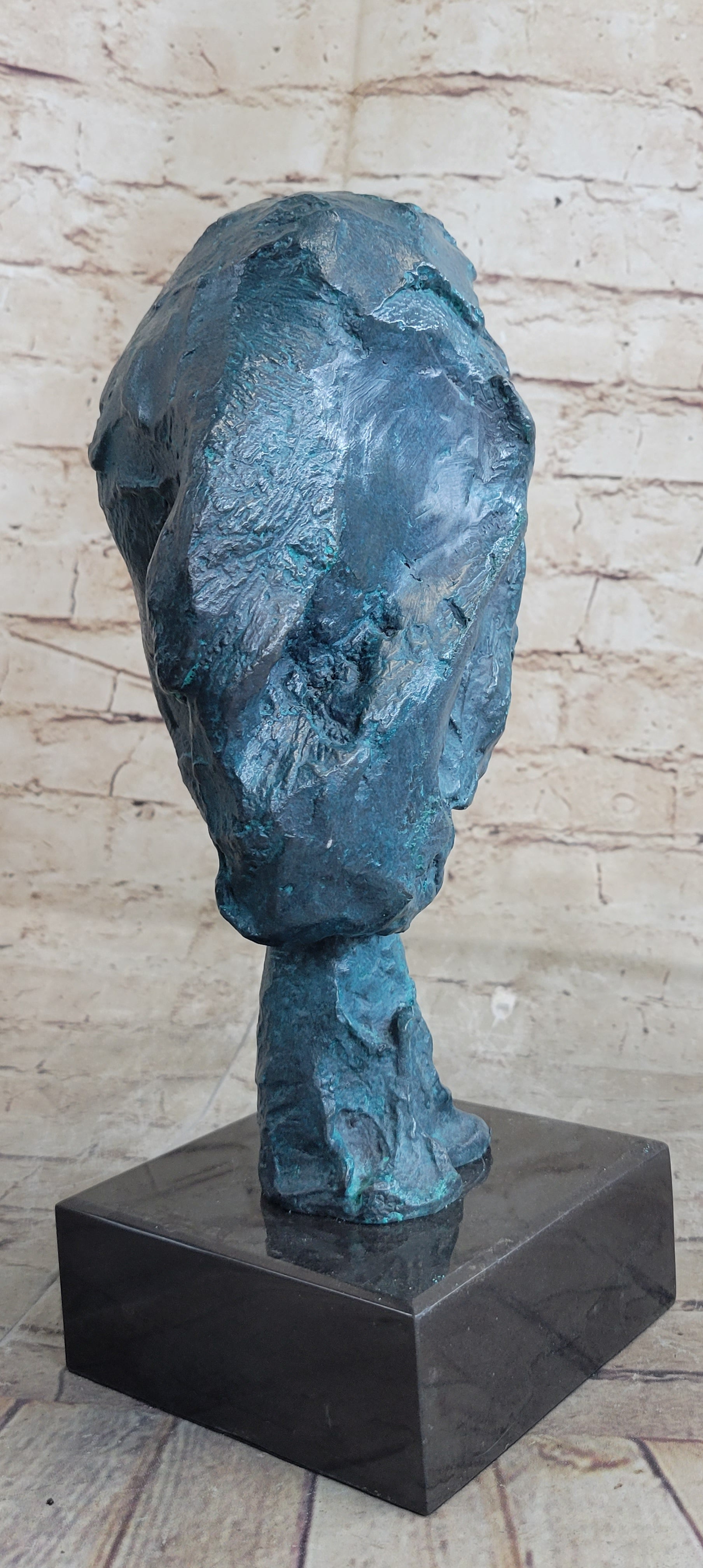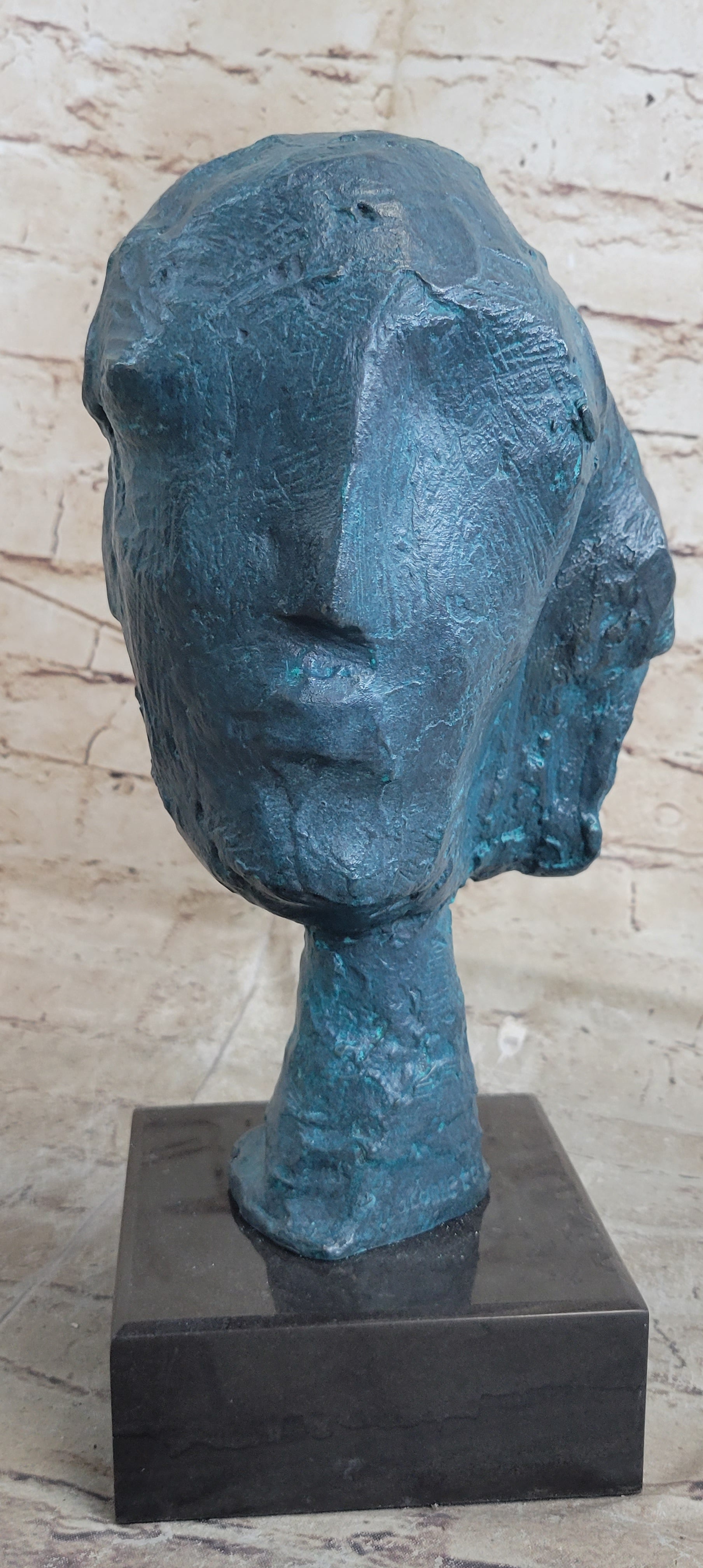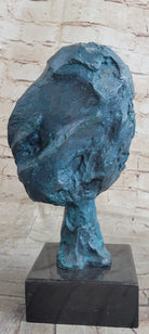 A Line Through Time Abstract Modern Artwork Female Bust Green Patina Bronze Statue