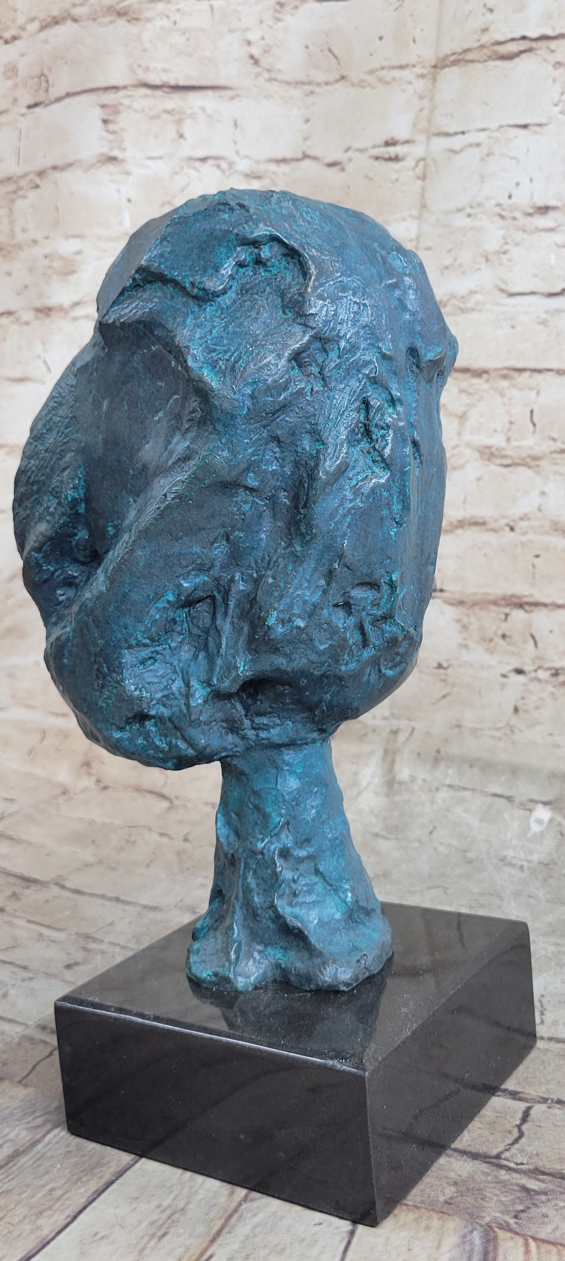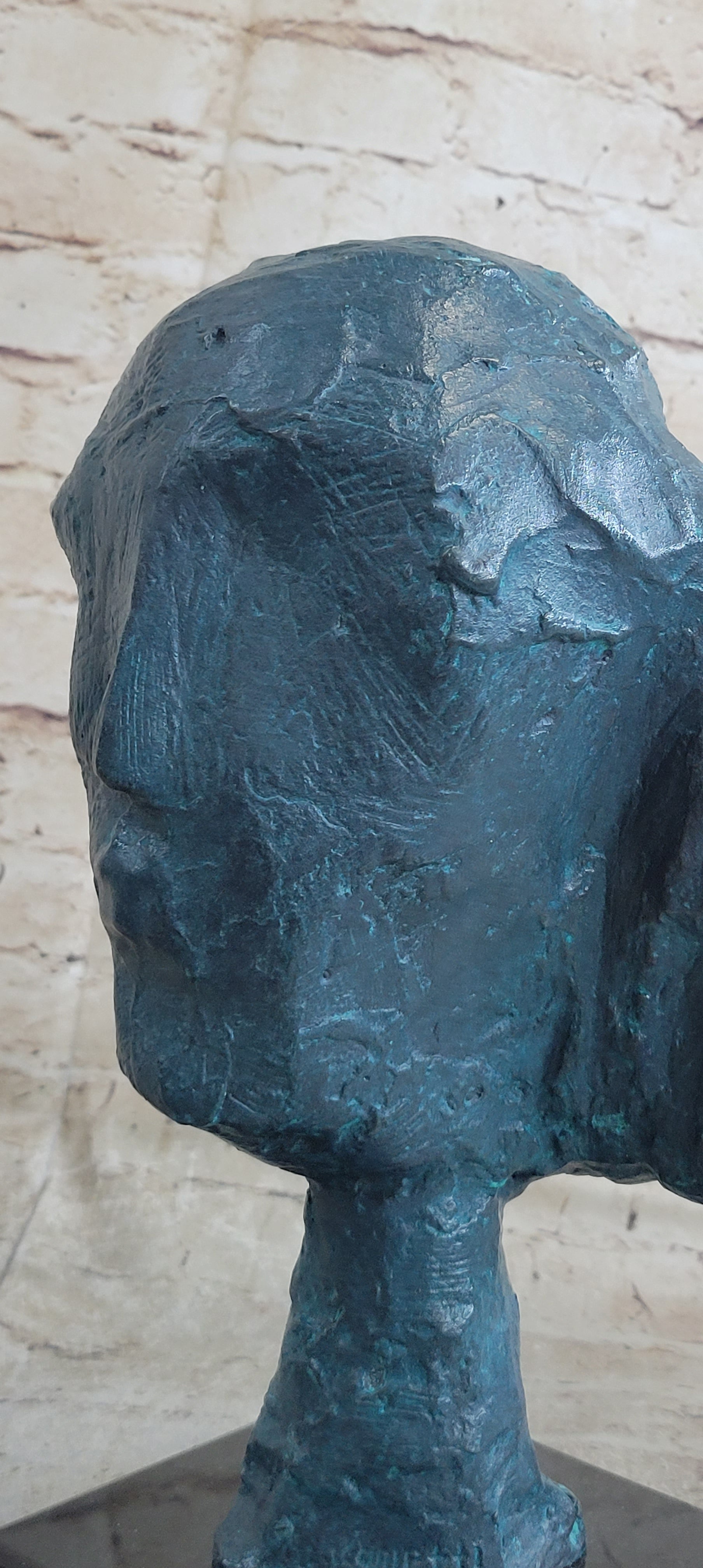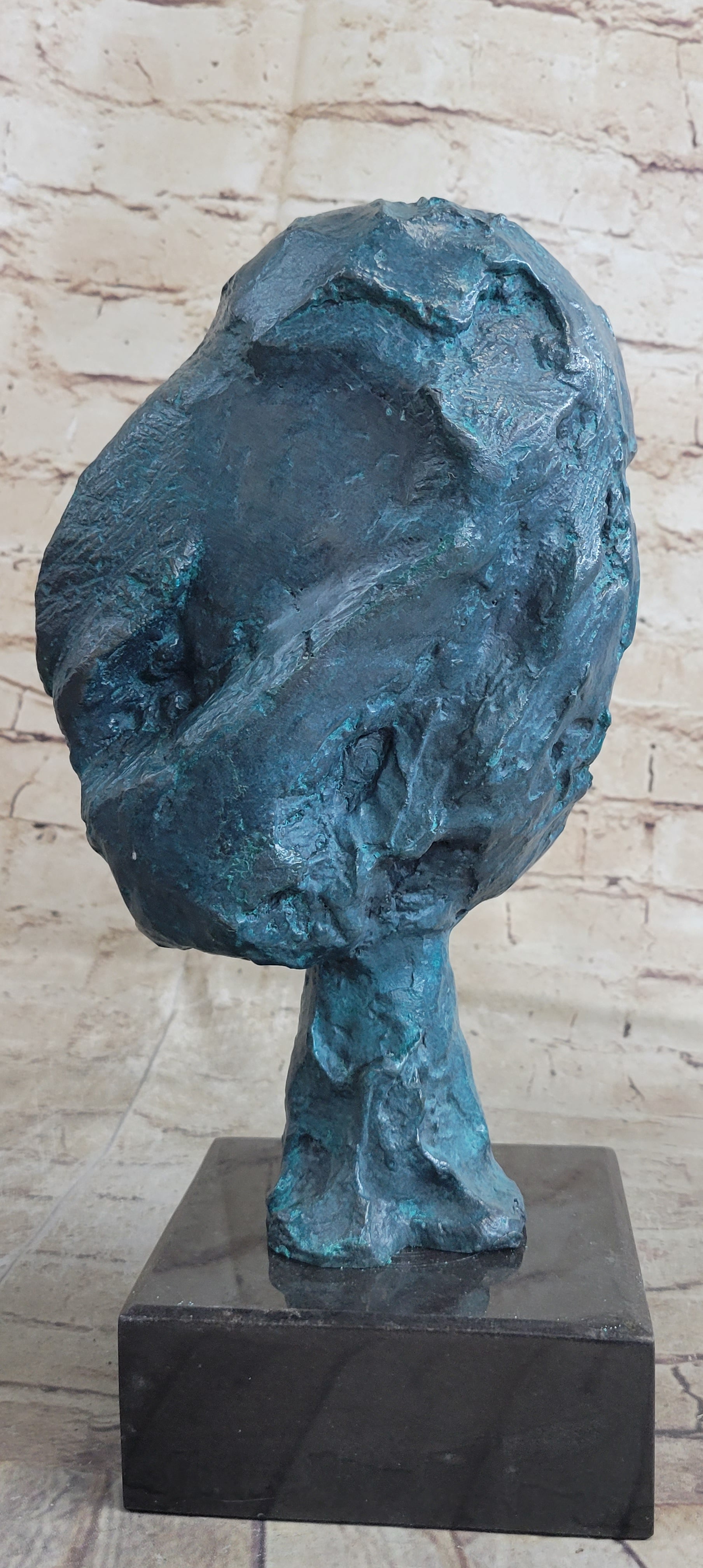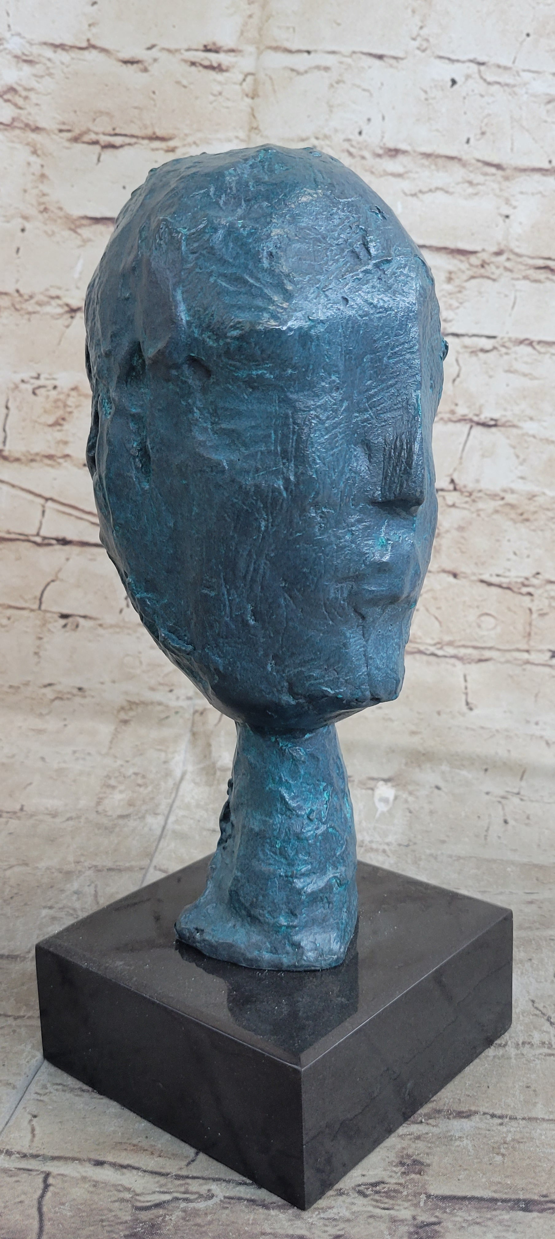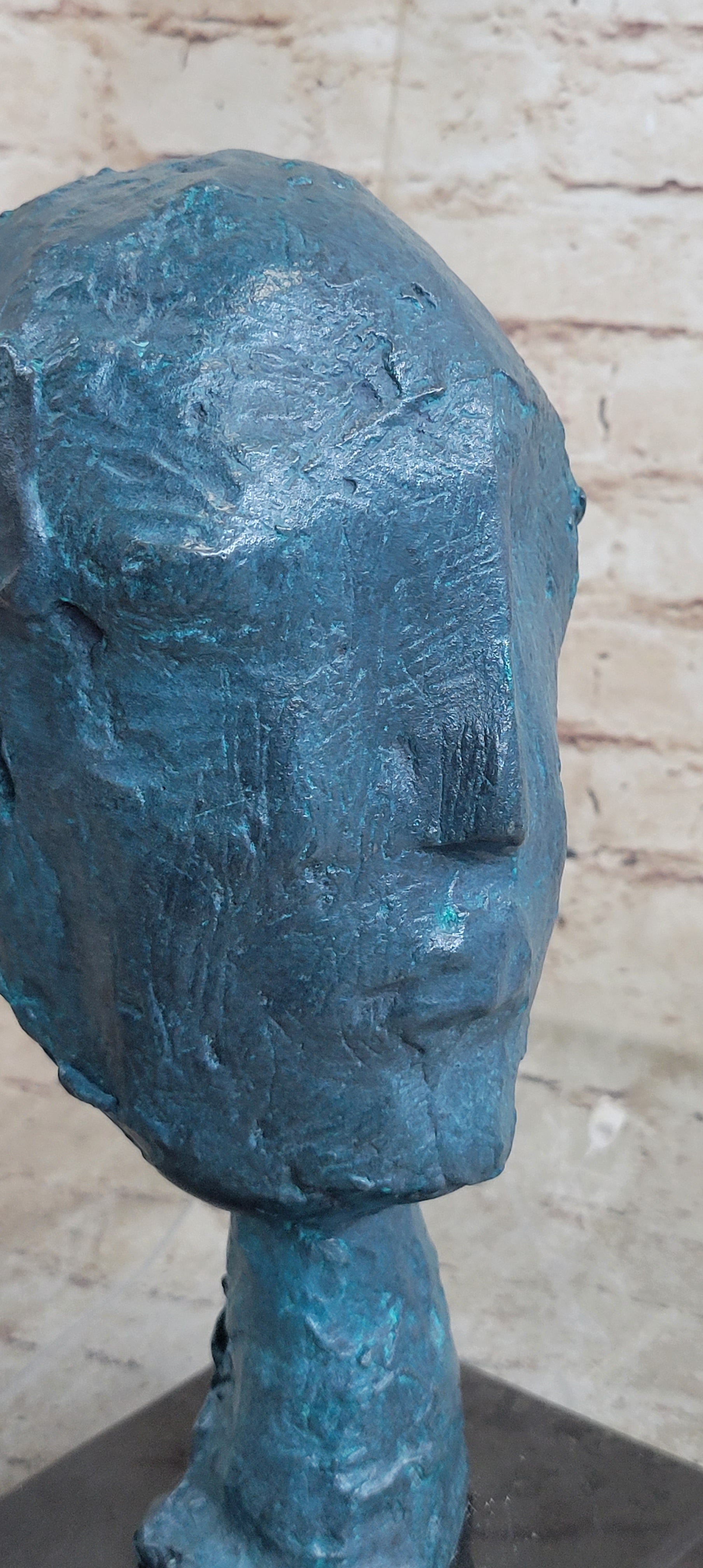 Delve into the intricacies of this art piece, where a crooked nose, a reverted mouth, and subtly suggested eyes create an enigmatic composition that ignites the imagination. The slender neck, gracefully supporting the slightly oversized head, adds a touch of tension and dynamic instability, amplifying its visual impact and leaving a lasting impression.