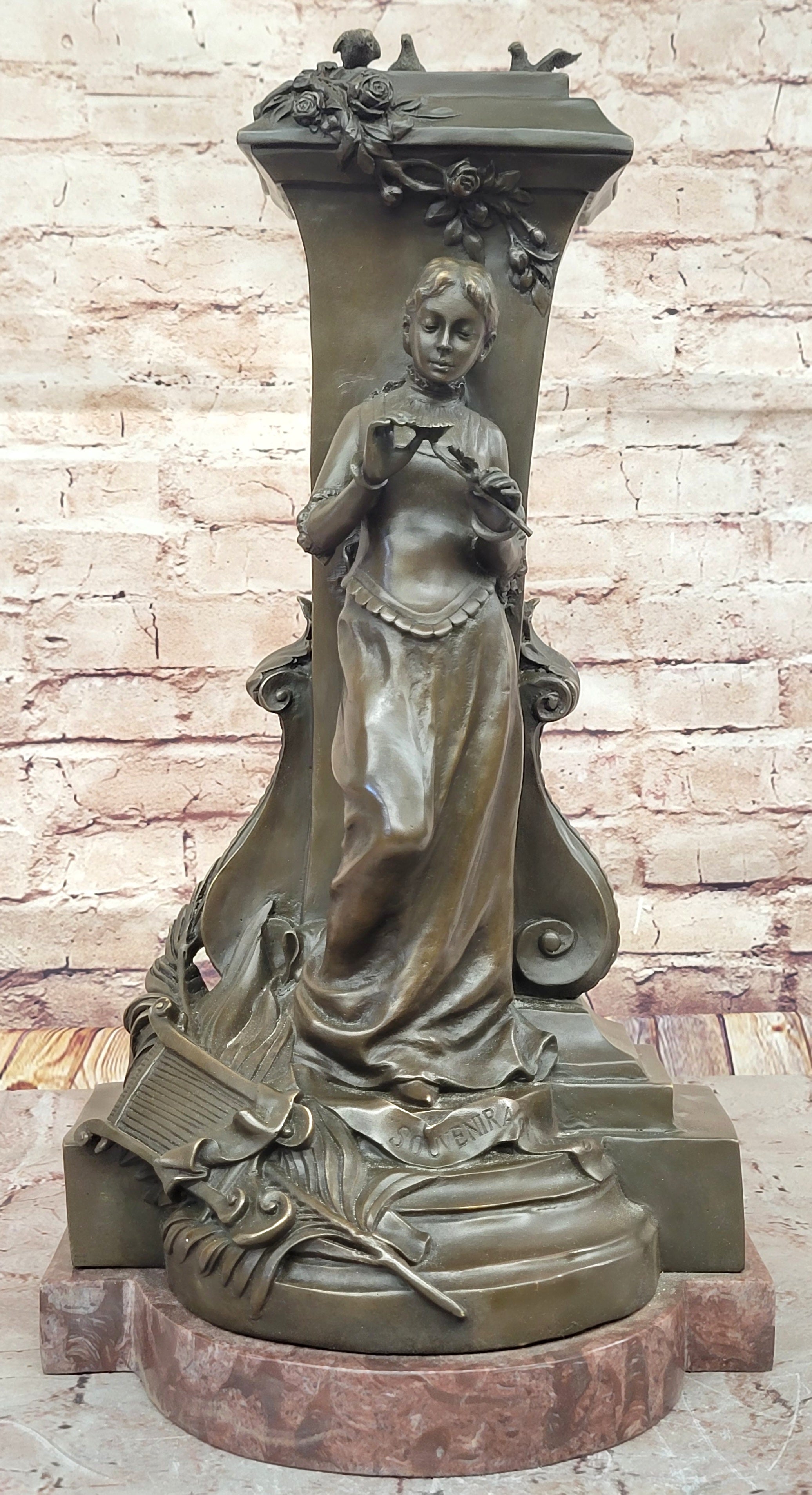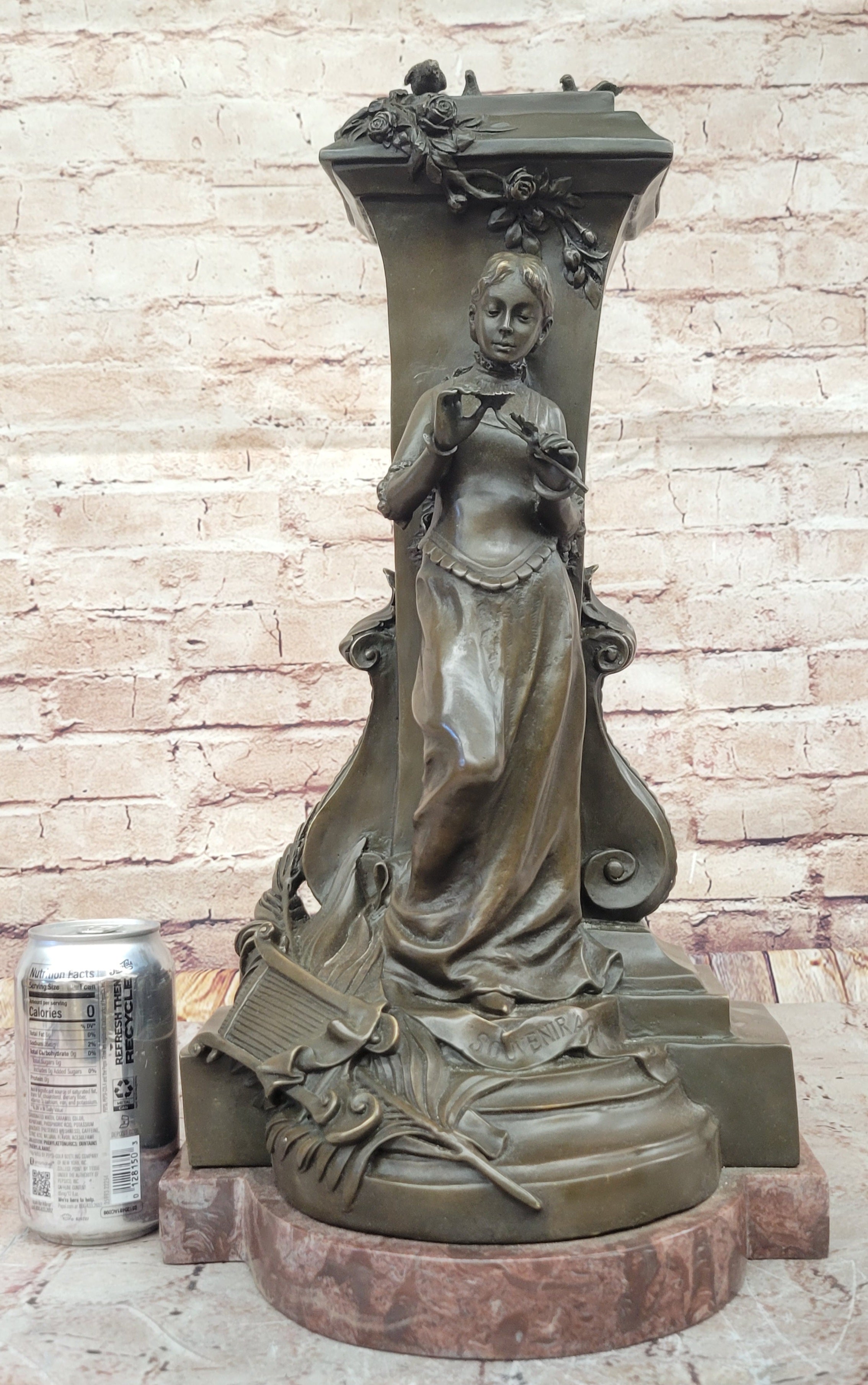 A Maiden Holding a Flower "Souvenir" by Charles Gounod Hand Made Bronze Sculpture