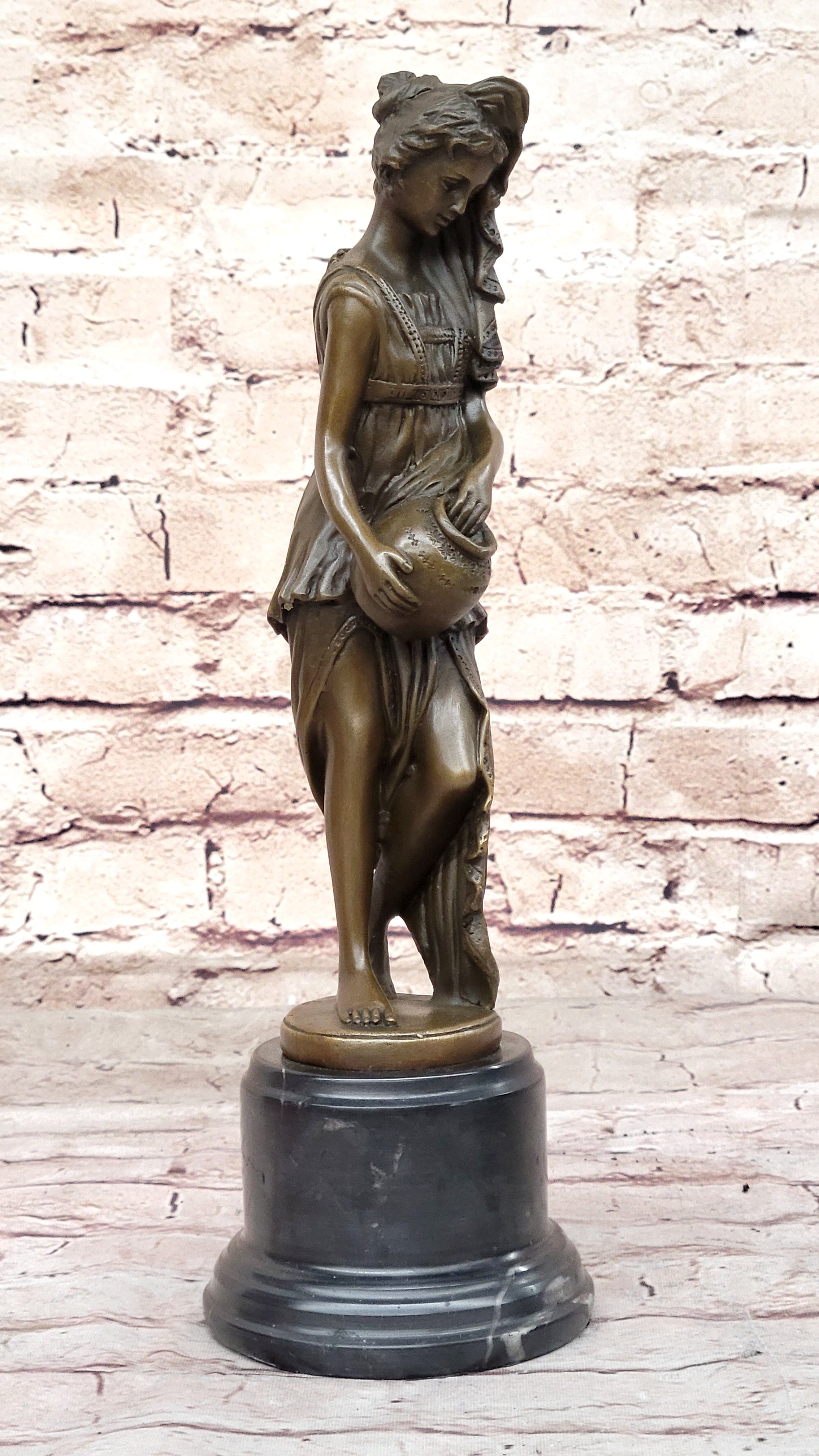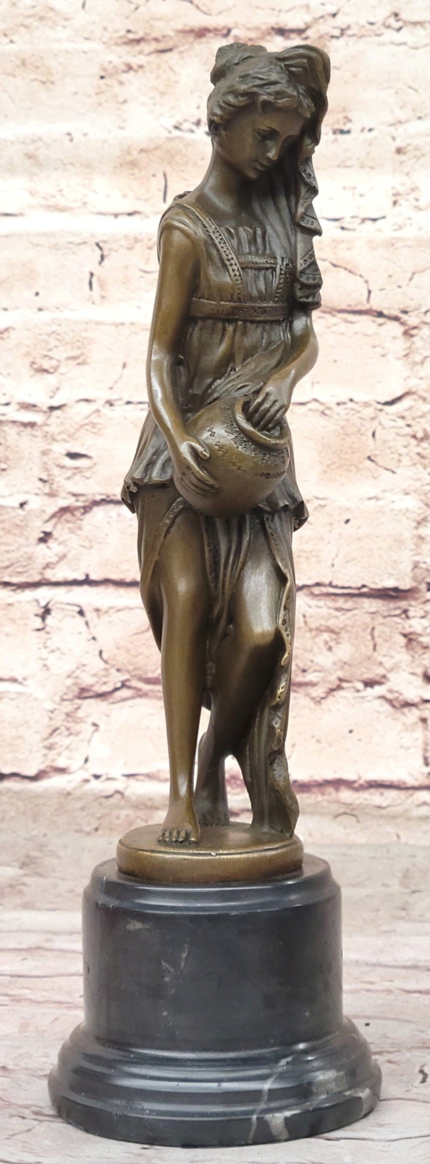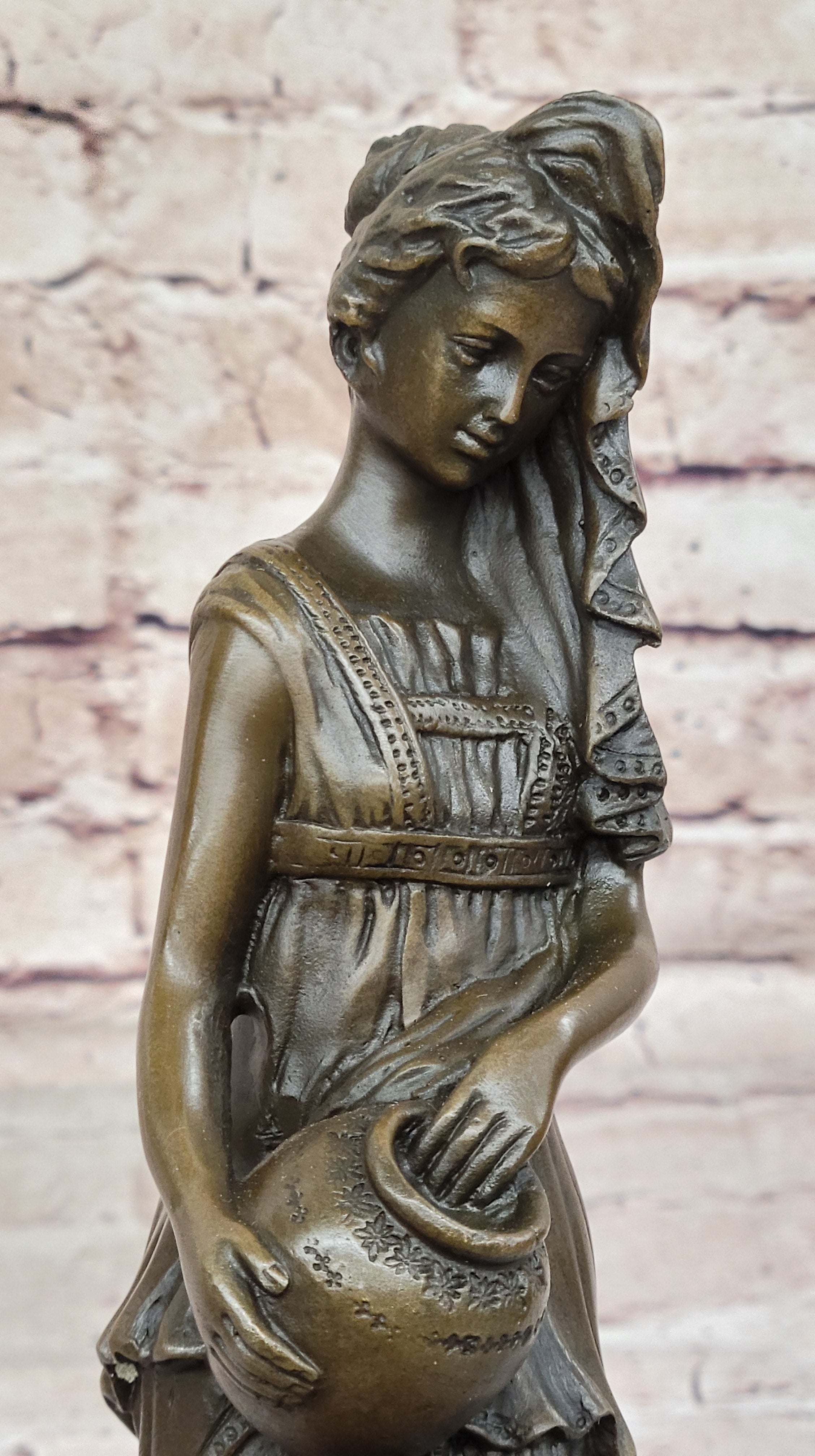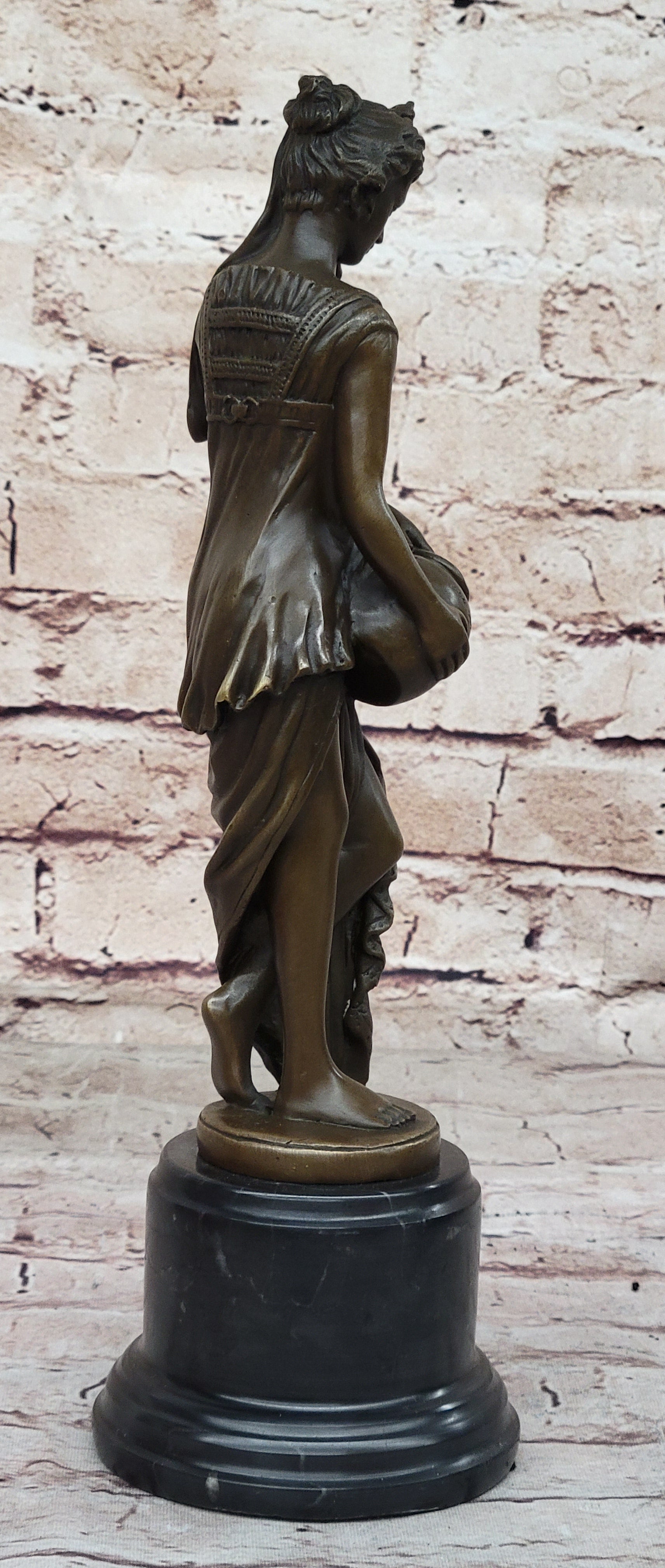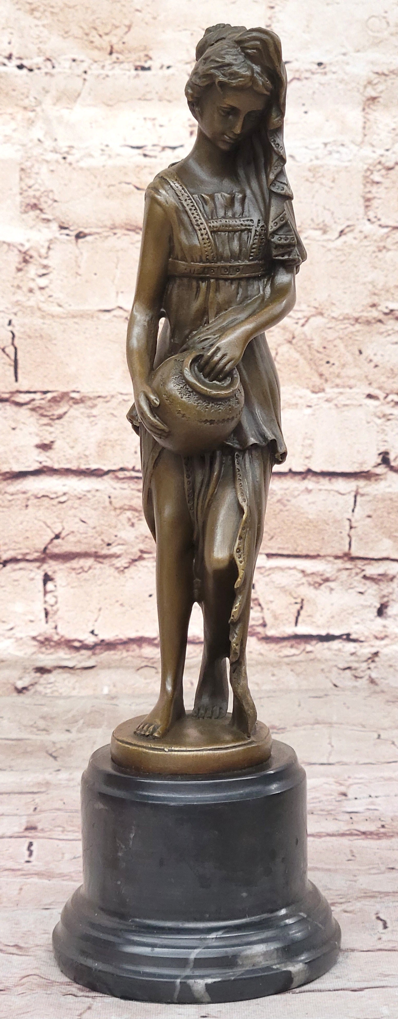 Water Bearer Young Woman Classical Bronze Sculpture Statue Figure on Marble Base by Milo
