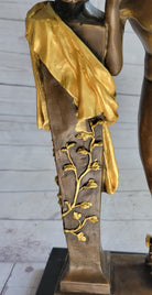Handcrafted with meticulous attention to detail, this bronze sculpture was brought to life using the revered lost wax method. This ancient technique ensures that every nuance and detail of the original design is preserved with the highest fidelity. The two-tone brown and gold patina finish adds depth and allure to the piece, enhancing its visual appeal and giving it a unique character. Resting on a sleek black marble base, the statue exudes a sense of permanence and sophistication, making it a standout piece in any setting.