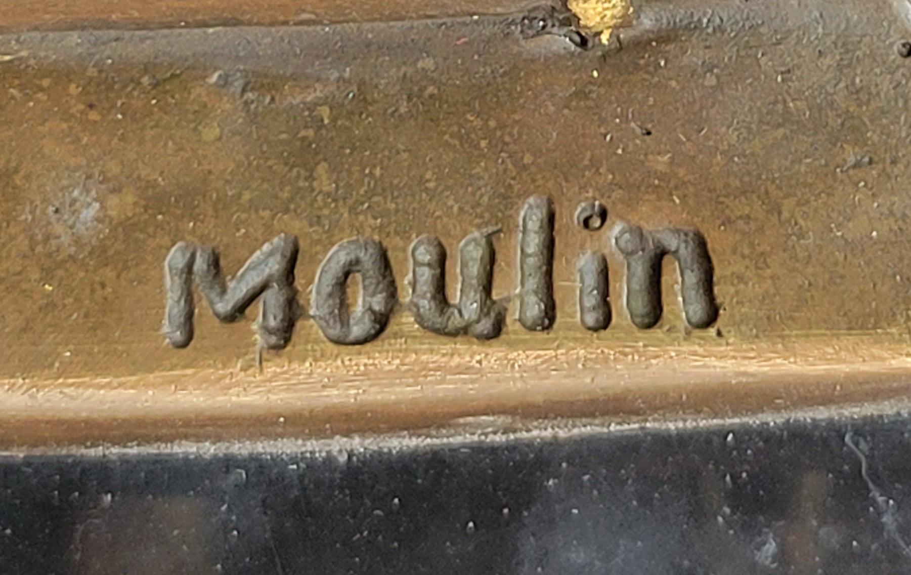 This magnificent "Nude Flying Mercury" bronze statue is more than just a piece of art; it is a testament to the artist's skill and creativity, as well as a window into the rich world of mythology and classical aesthetics. Whether displayed in a home, office, or gallery, this sculpture is bound to captivate the imagination and admiration of all who behold it. Signed by Hippolyte Alexandre Julien Moulin, this statue not only celebrates the beauty of its form but also carries the prestige of a collector's item, making it a valuable addition to any art collection.Bronze Dimensions with Marble Base: Height 17" X Width 10"