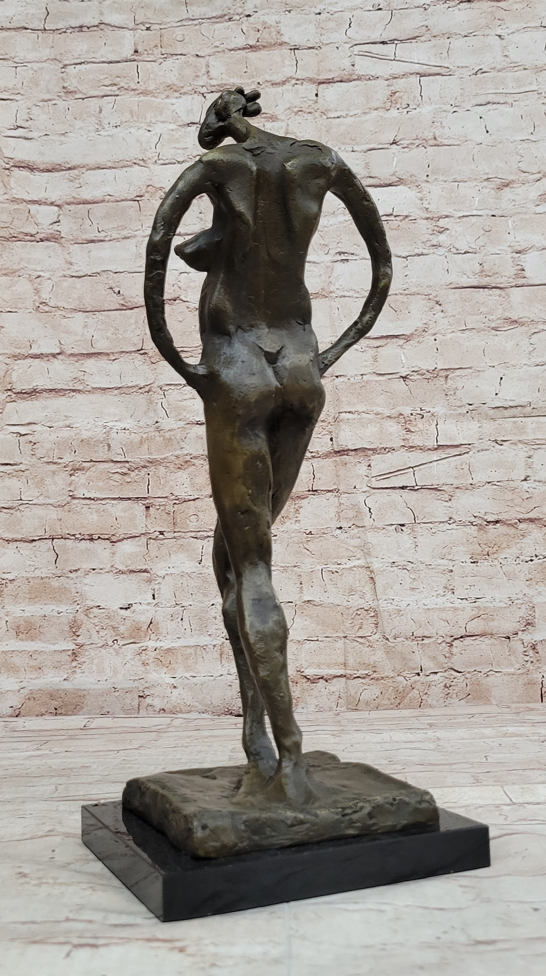 Crafted using the ancient "Lost Wax Method," this sculpture combines timeless craftsmanship with avant-garde expression. The meticulous application of a brown patina finish ensures both its preservation and the infusion of texture and depth into the artwork. Every inch of this sculpture is a result of dedicated handwork, making it a true testament to artistic mastery. Resting gracefully on a steadfast black marble base, it stands as a captivating addition to any art collection or space, prompting viewers to explore the boundaries of perception and interpretation.
