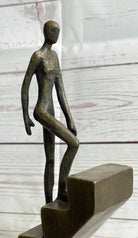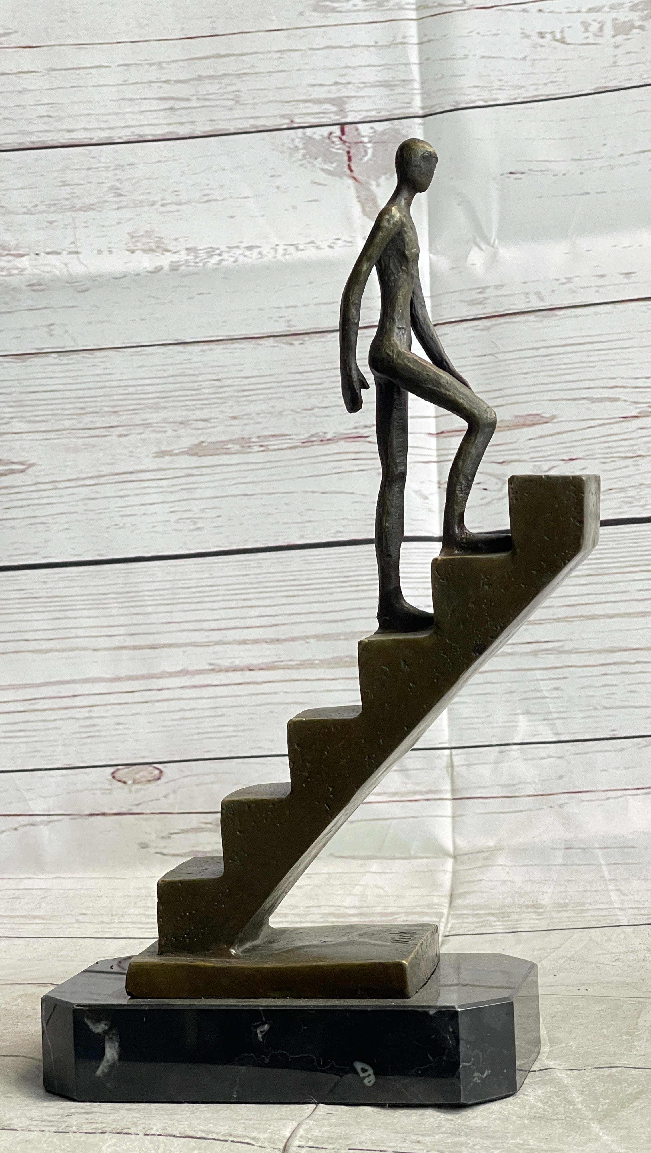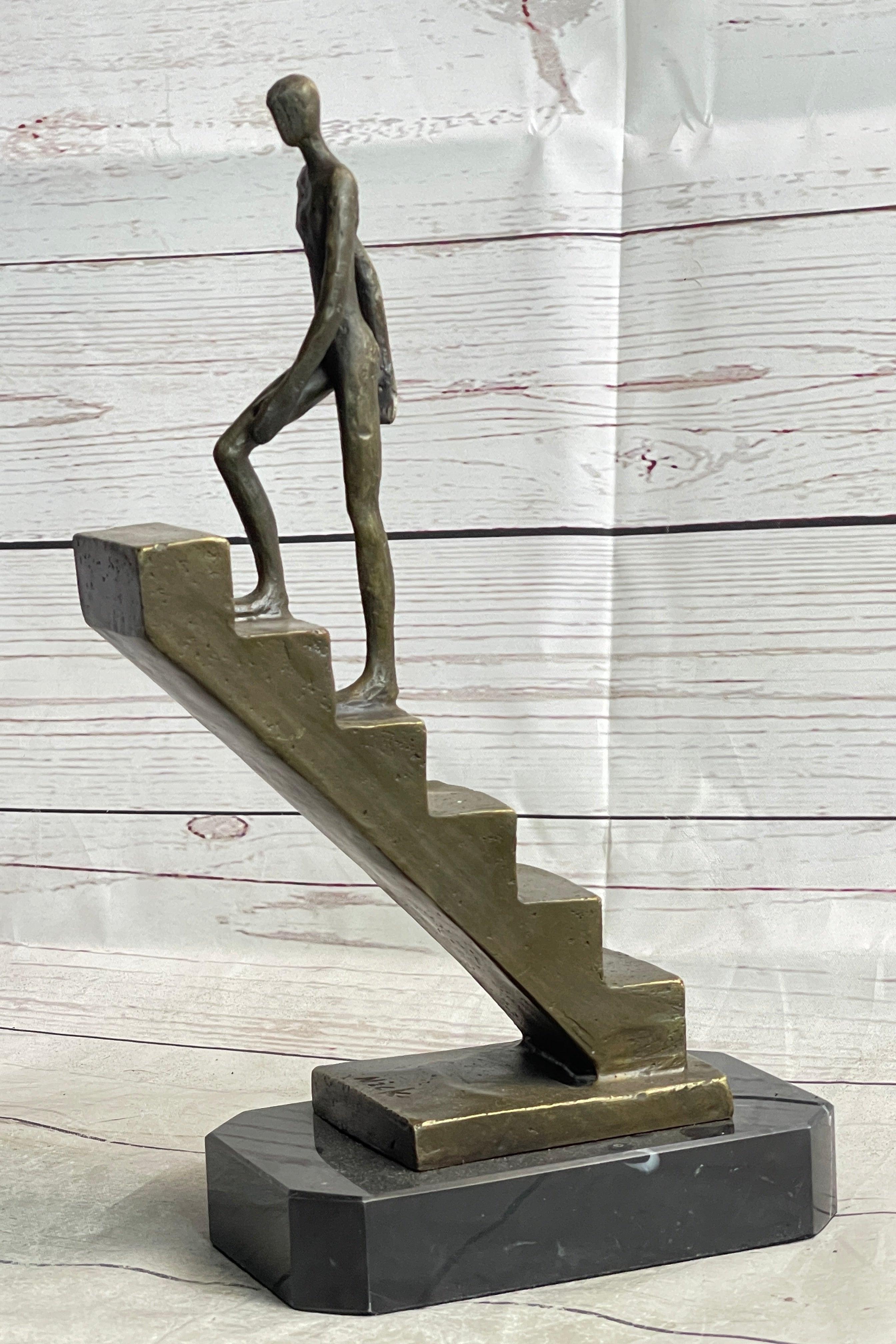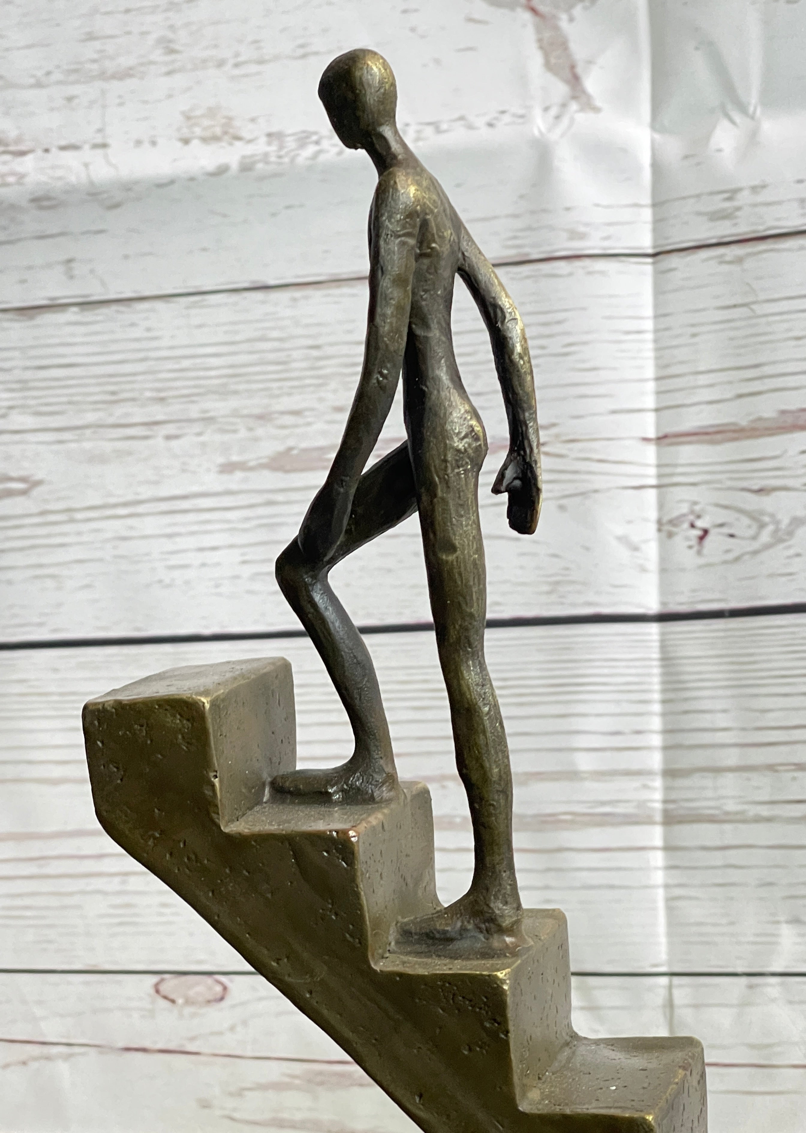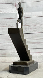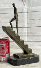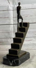 Abstract Bronze Sculpture of a Man Climbing Stairs Staircase - Original Art by Mario Nick