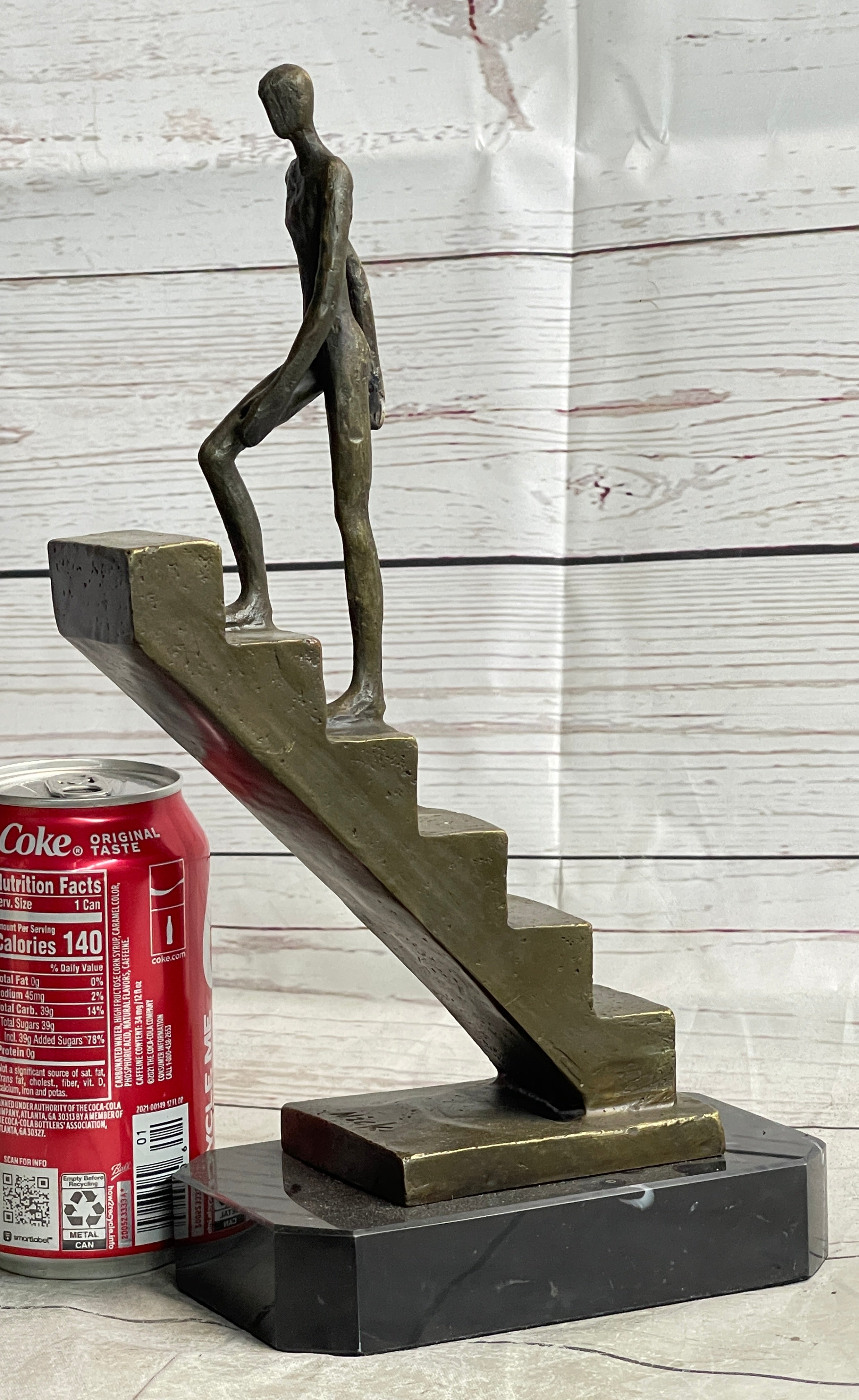 Resting on a sleek black marble base, this signed original artwork by Mario Nick is not just a sculpture—it's a statement piece that sparks curiosity and contemplation. Whether displayed in a gallery, office, or home setting, "Climbing Stairs" invites viewers to engage with the artistic journey, inspiring them to embrace change, embrace challenges, and strive for new heights in their own lives.Bronze Dimensions with Marble Base: Height 12" X Width 8.5"