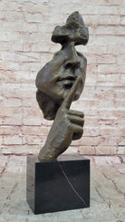 Abstract Dali Bronze Face Sculpture – Silence Shushing Statue on Marble Base