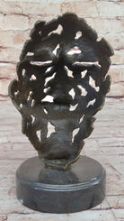 Immerse yourself in the surreal world of Salvador Dali with this exquisite bronze sculpture, capturing the essence of a relaxed woman wearing a face mask. The artwork, signed by the renowned artist himself, showcases Dali's unique vision and mastery of his craft. Crafted using the traditional lost wax method, every detail of the sculpture has been carefully handcrafted to perfection, resulting in a stunning and lifelike depiction. The woman's face exudes a sense of calm and tranquility as she wears the face mask, showcasing the relevance of this piece in today's world. The dark brown patina finish adds depth and dimension to the sculpture, making it a timeless and elegant addition to any collection. Displayed on a round black marble base, this genuine bronze sculpture is a true statement of artistry and craftsmanship. Whether you're an art enthusiast or a fan of Salvador Dali's iconic style, this sculpture is a must-have for any art lover's collection. It serves as a testament to the enduring legacy of one of the most influential artists of the 20th century. Bring a touch of surreal beauty and sophistication to your home or office with this captivating bronze masterpiece.