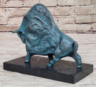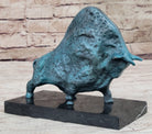 This impressive sculpture rests on a sleek black marble base with a striking green patina, enhancing its visual appeal and creating a stunning contrast. The combination of the majestic bull and the elegant base makes this artwork an eye-catching centerpiece. As with all our bronze products, this masterpiece is meticulously crafted using the lost-wax casting technique, guaranteeing its authenticity and lasting beauty. For art lovers, admirers of Picasso's masterpieces, and collectors of modern art objects, this bronze sculpture is an invaluable addition to any collection. Embrace the power and grace of the bull symbol with this extraordinary piece of art.Bronze Dimensions with Marble Base: Height 8" X Width 8.5"