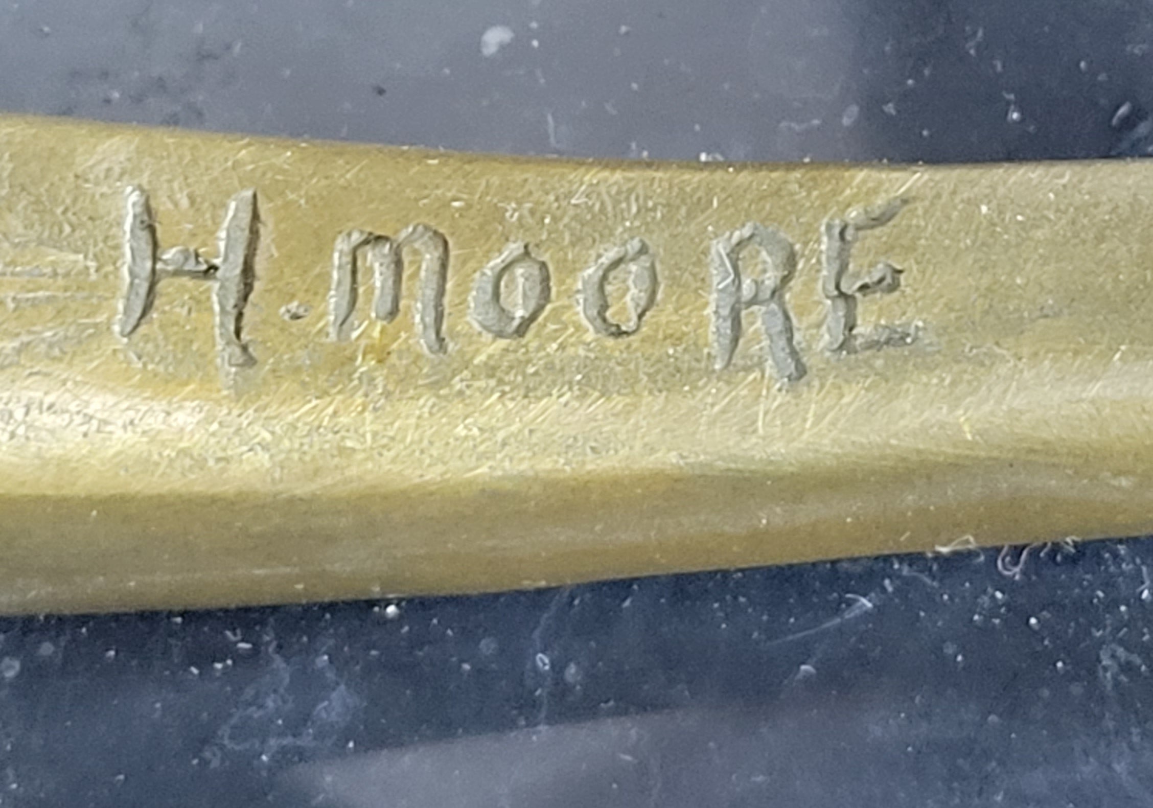 The signature of the esteemed artist, Henry Moore, serves as a testament to the sculpture's craftmanship and artistic merit. This extraordinary bronze artwork is a true collector's piece, inviting you to appreciate Moore's unique interpretation of the human form. Add a touch of sophistication and artistic excellence to your space with this timeless masterpiece that celebrates the beauty and complexity of the human figure.Bronze Dimensions with Marble Base: Height 12" X Width 19.5"
