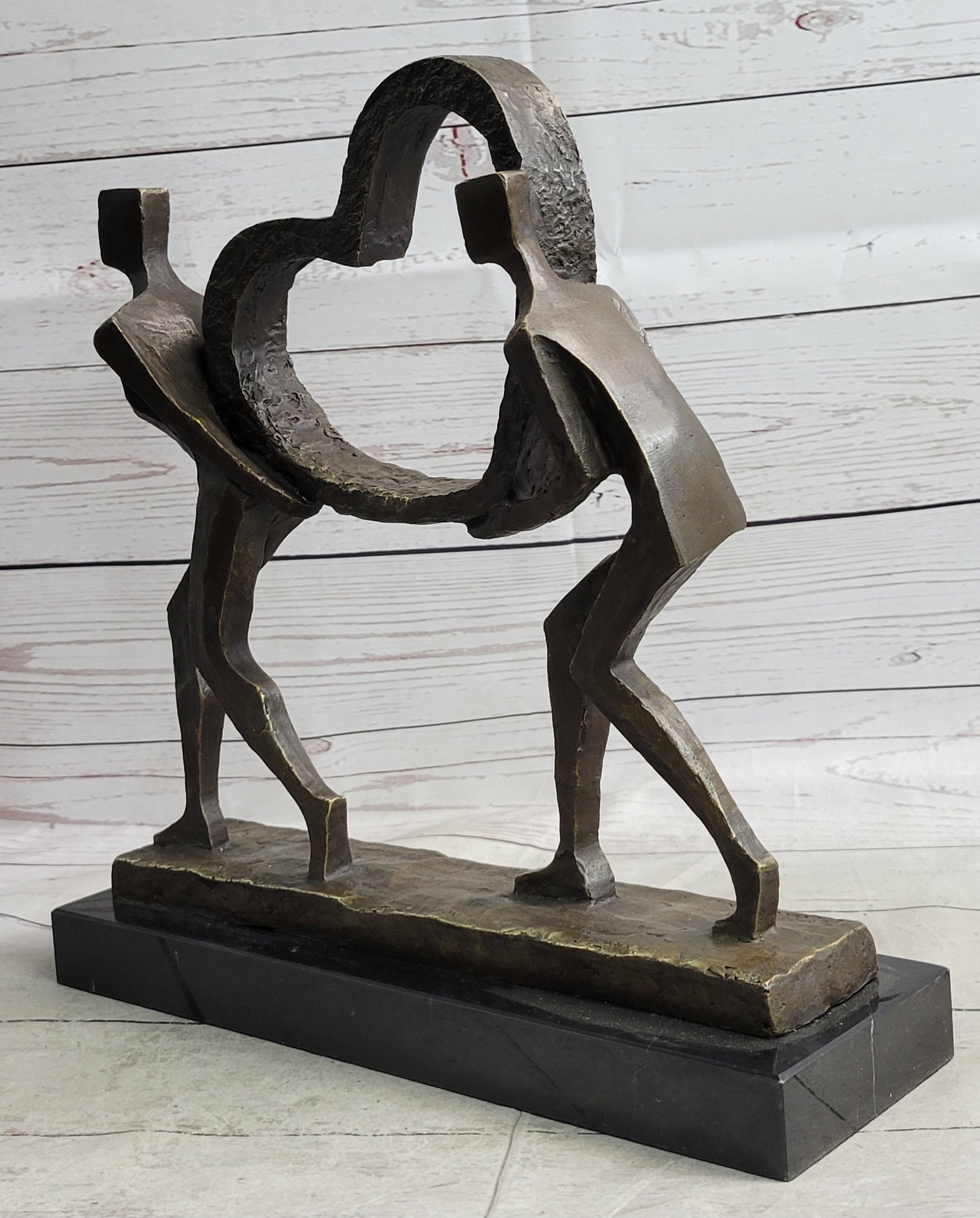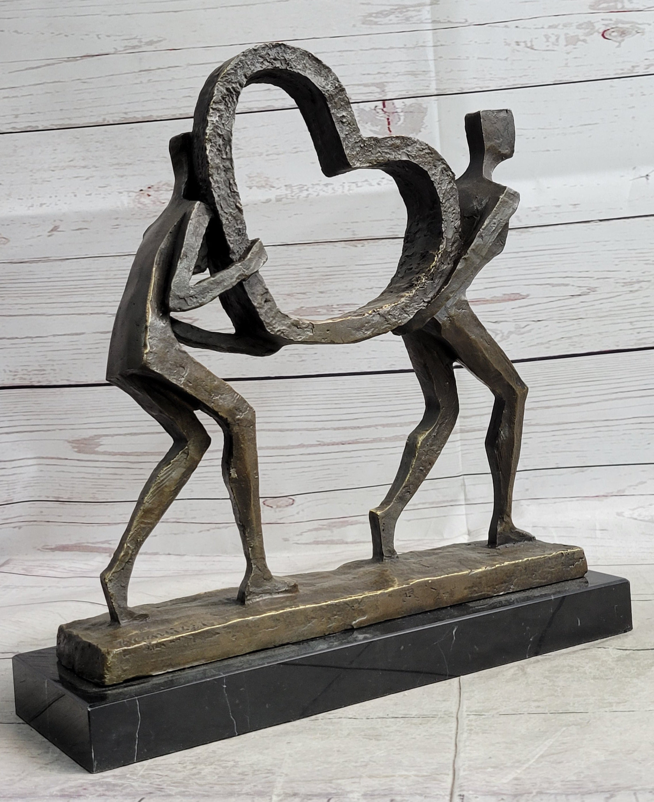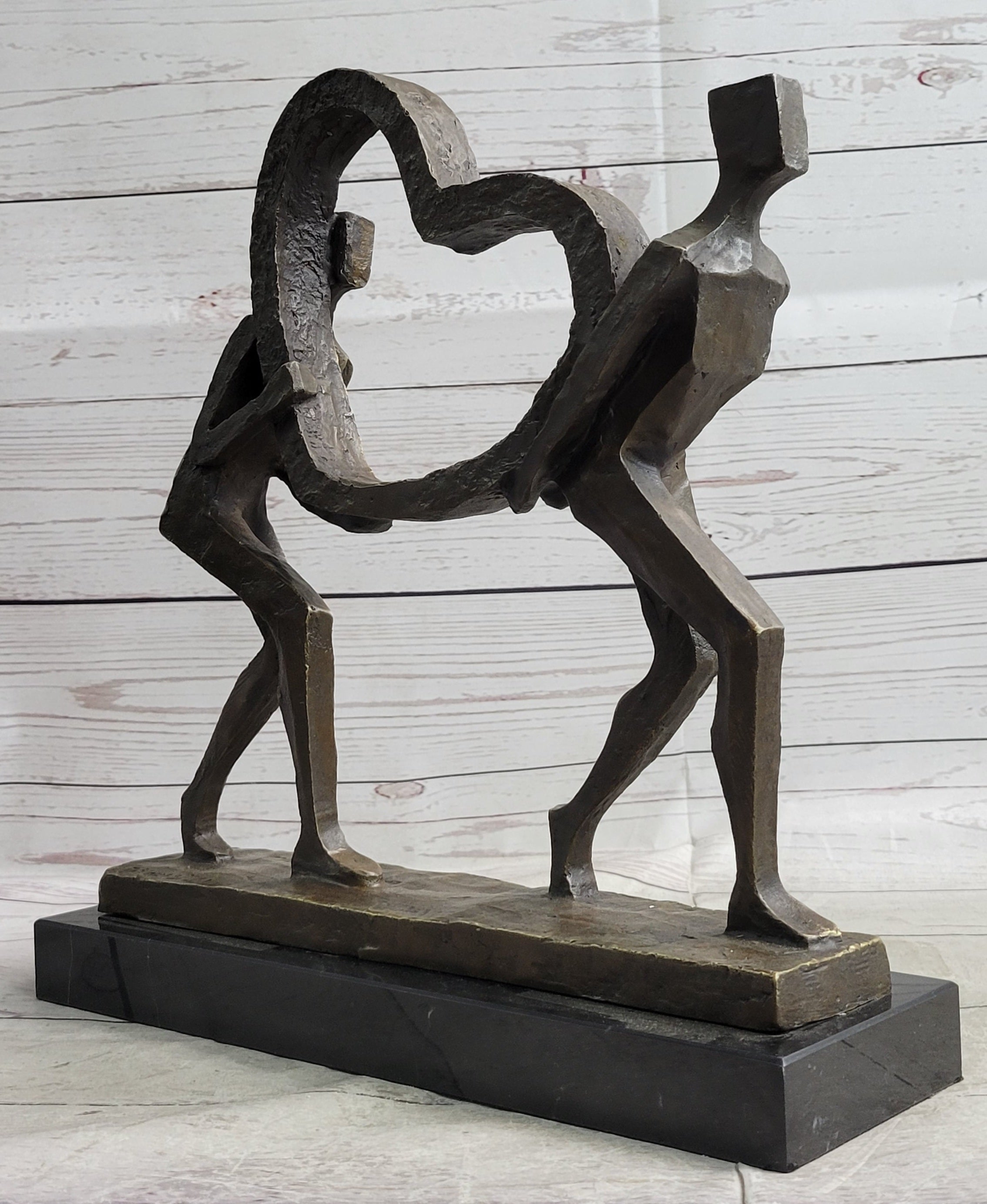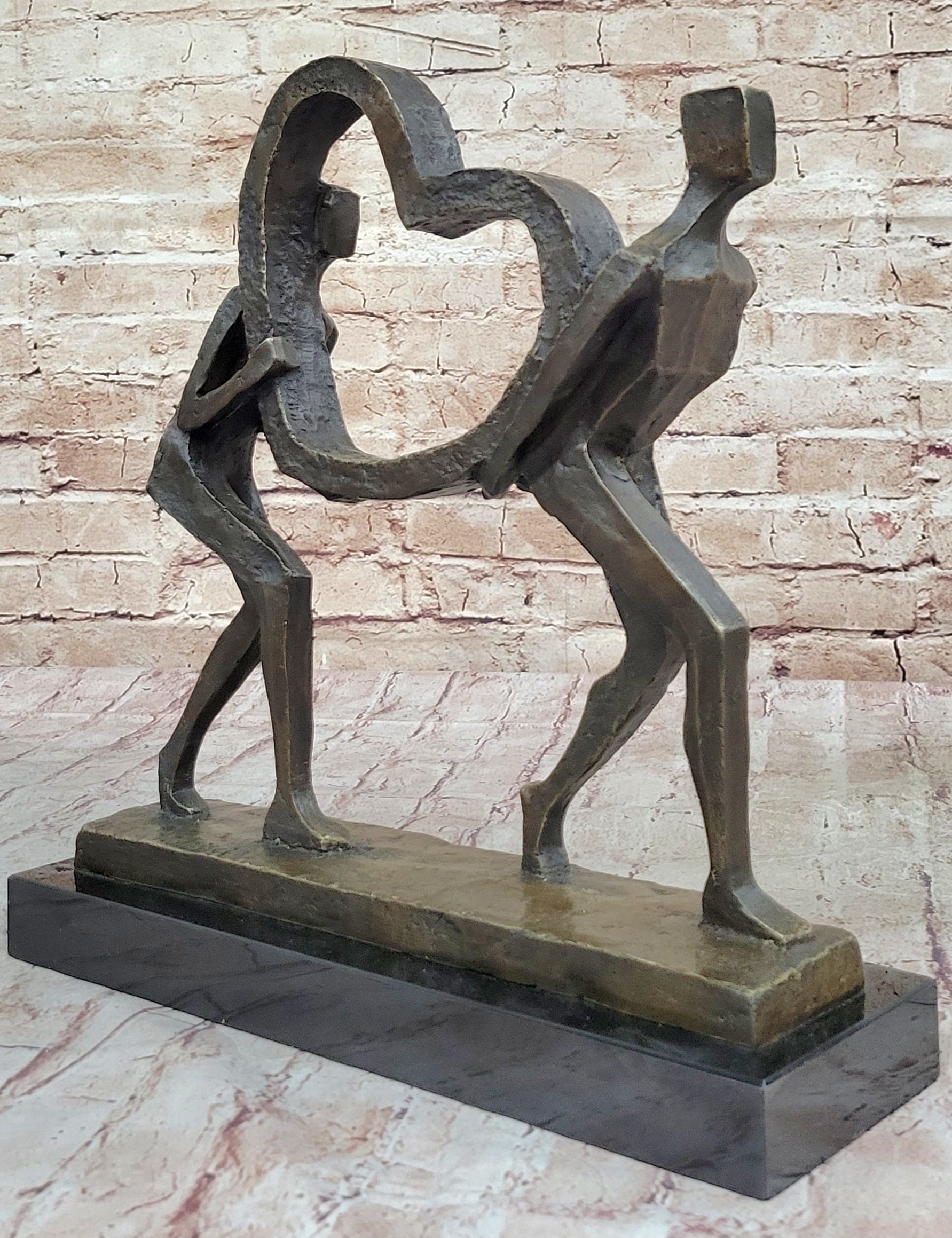 Abstract Modern Art Sculpture of Couple Carrying a Heart - Romantic Bronze Gift