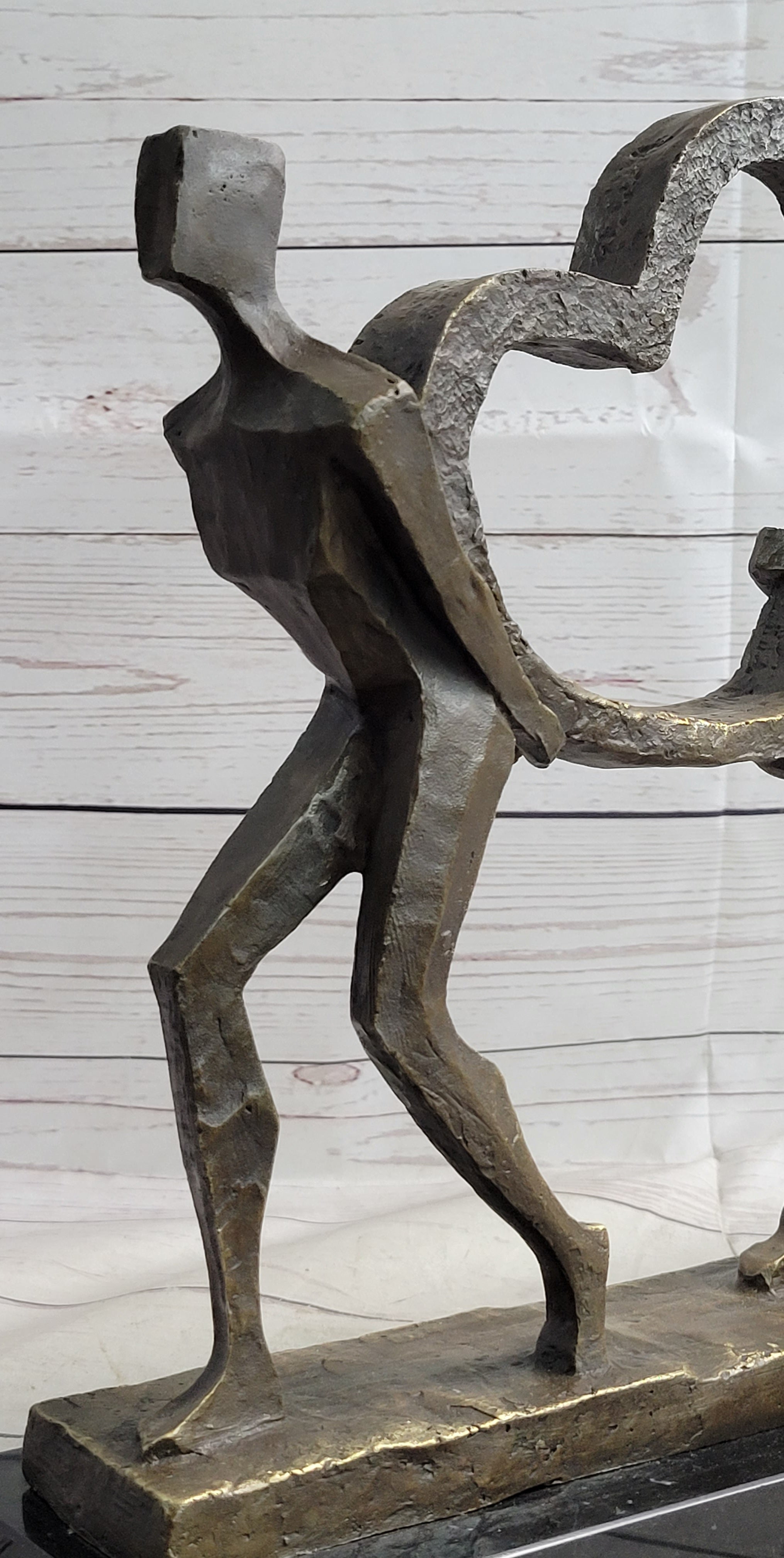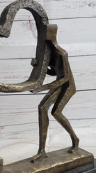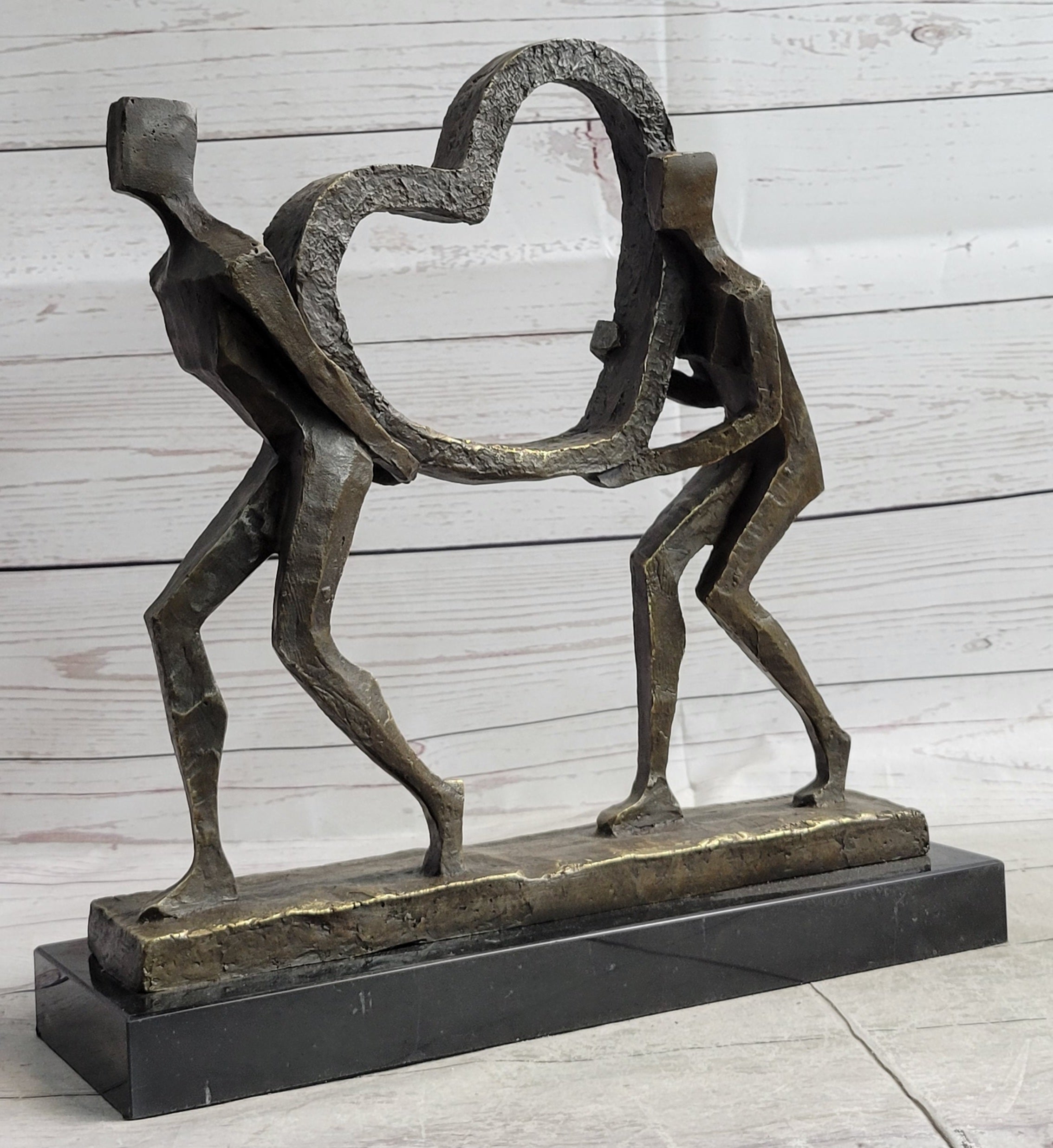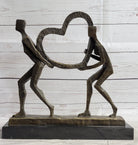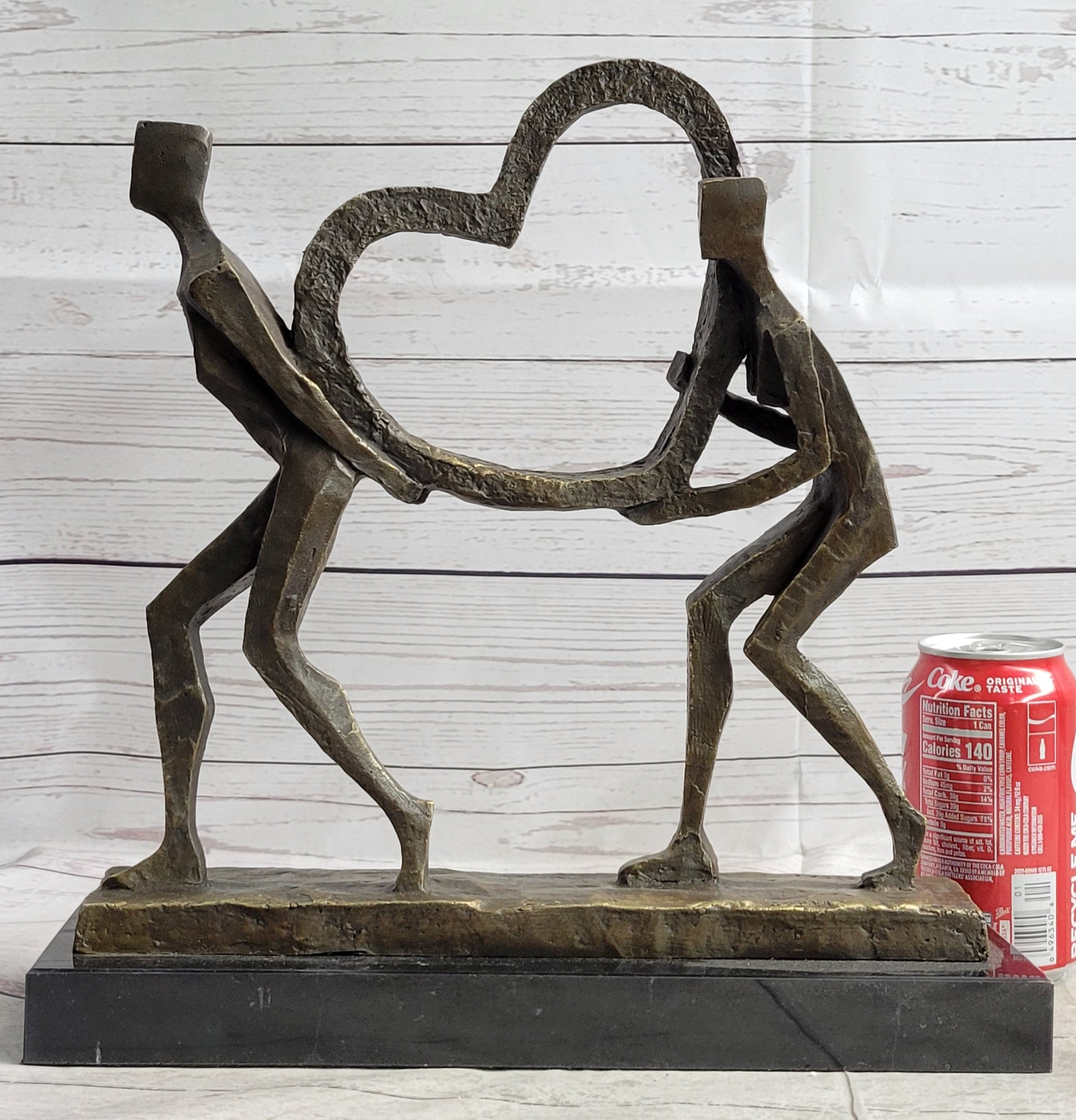 Abstract Modern Art Sculpture of Couple Carrying a Heart - Romantic Bronze Gift