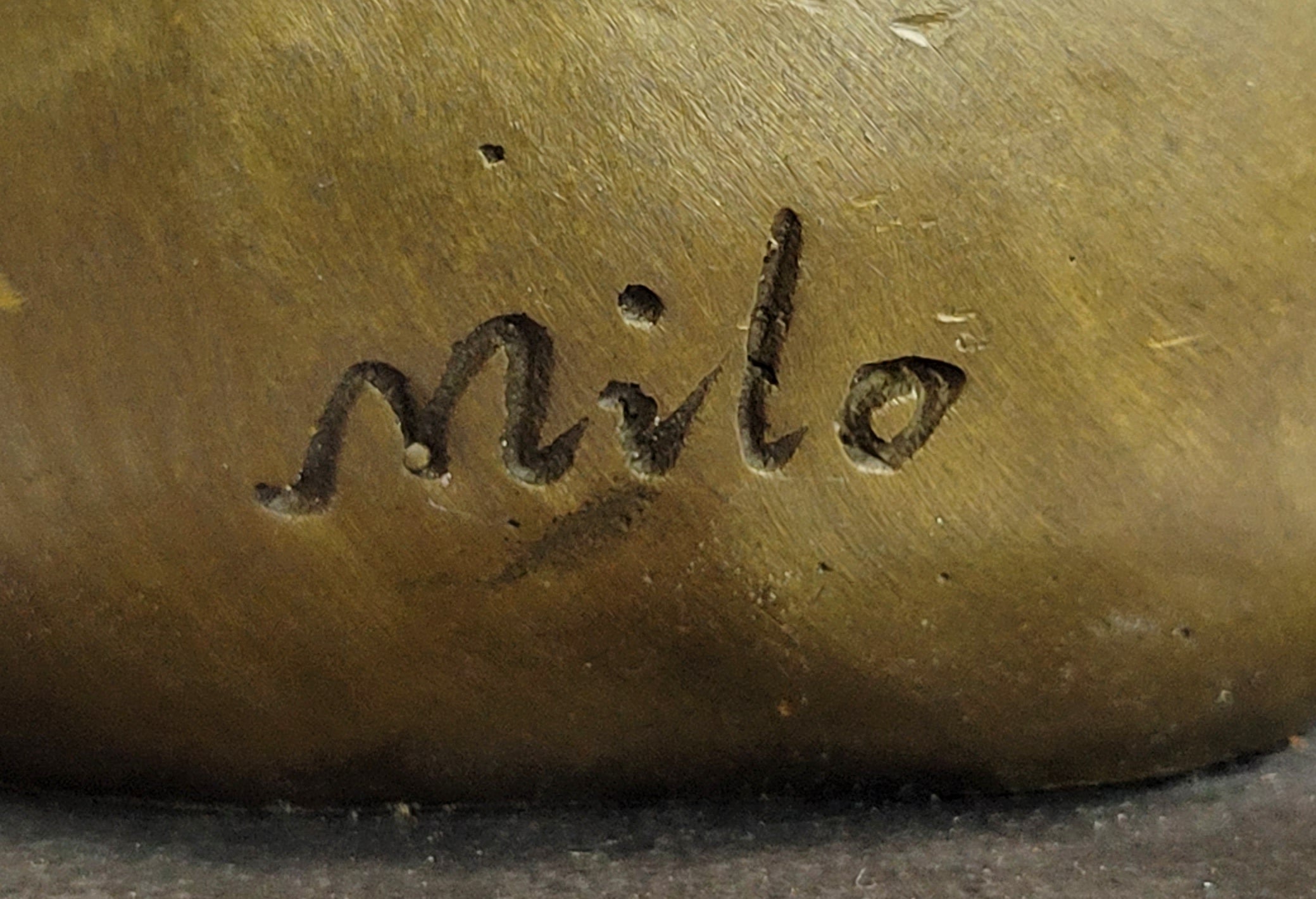 Mounted on a solid marble base, this touching bronze sculpture is an exquisite addition to any home or art collection. The sentimentality and beauty of the piece make it a thoughtful gift for mothers or anyone who cherishes the bond between parent and child. Signed by the renowned artist Milo, this artwork is a timeless tribute to the infinite love of a mother.Bronze Dimensions with Marble Base: Height 11" X Width 6"