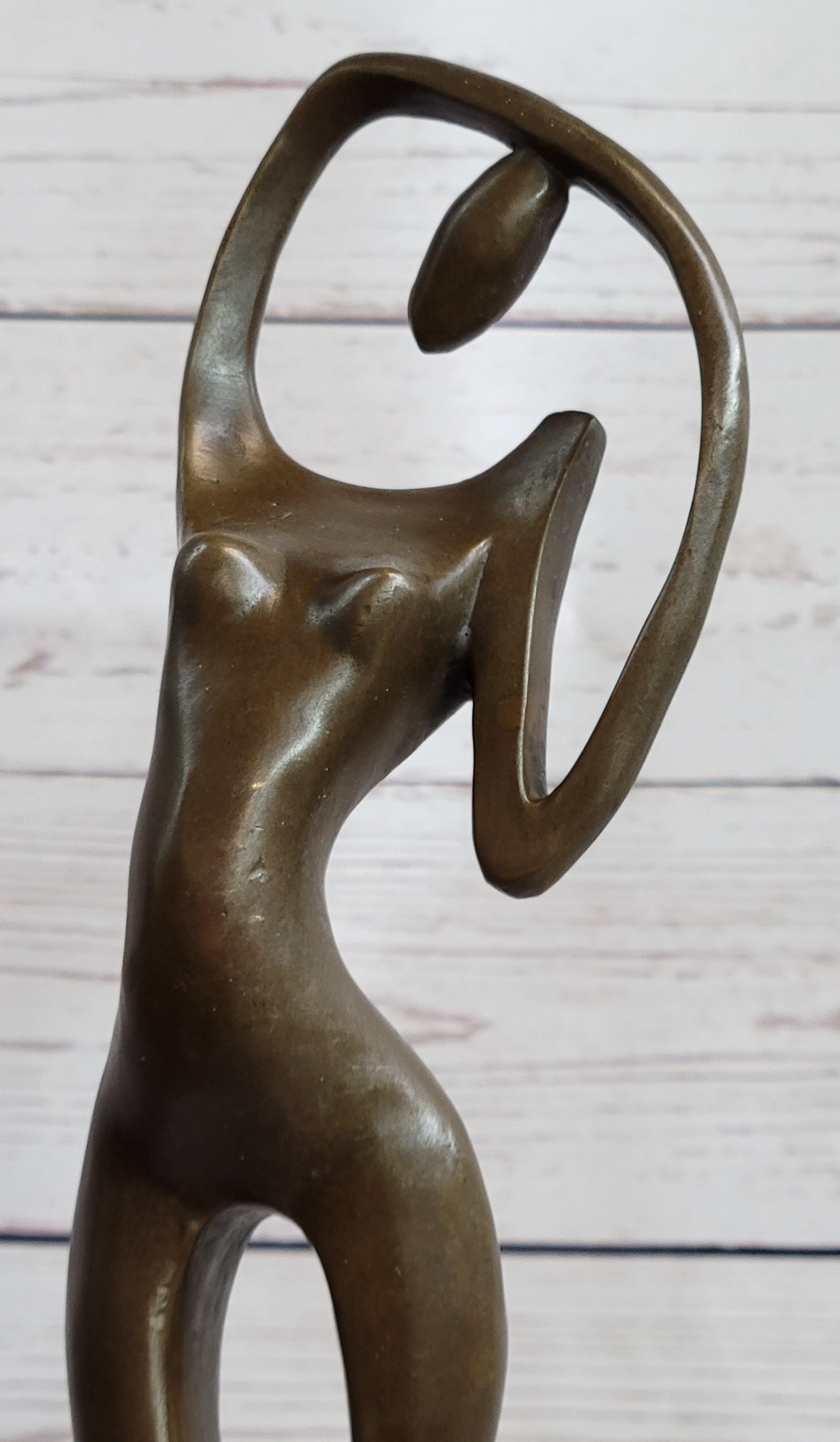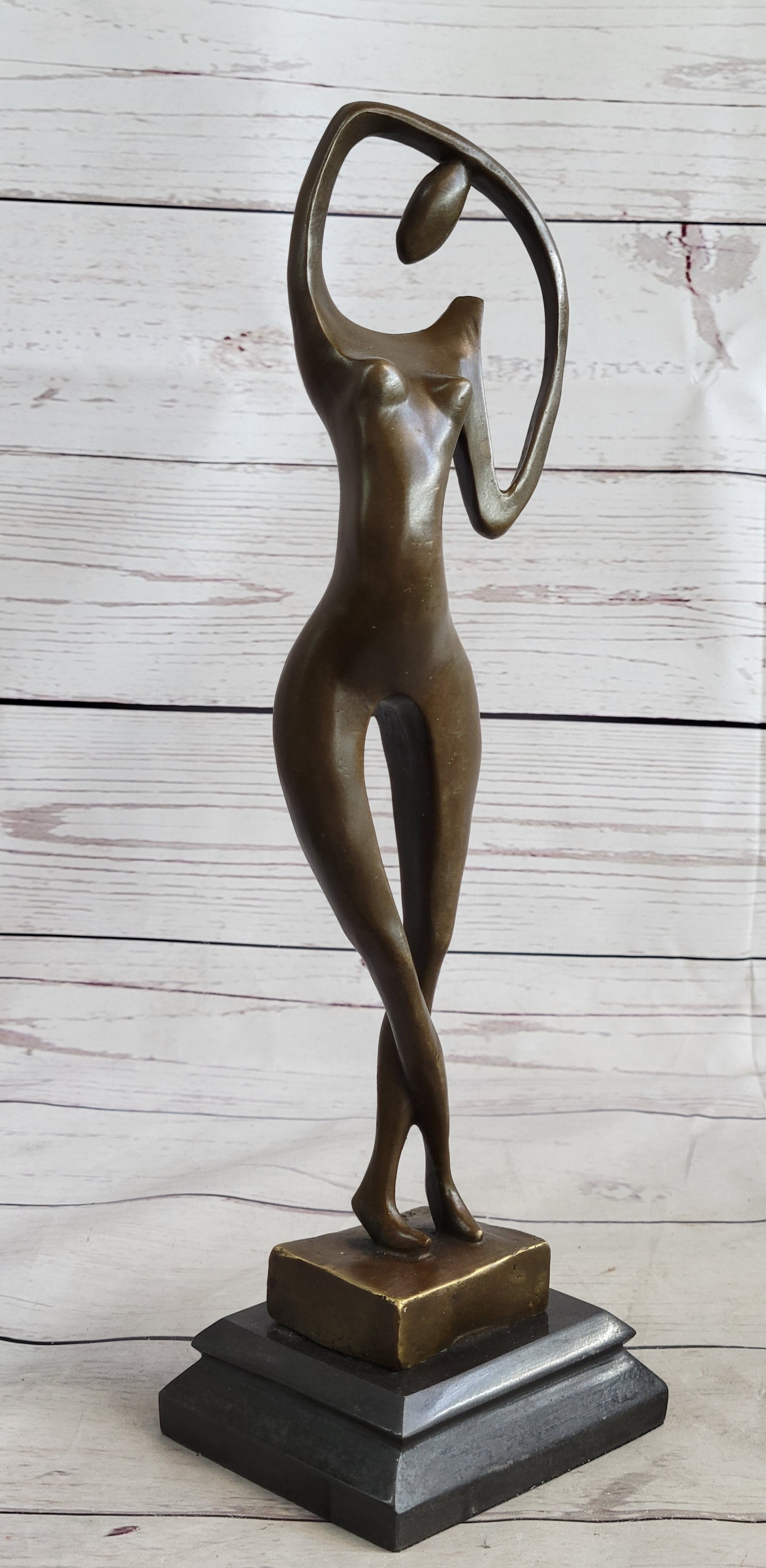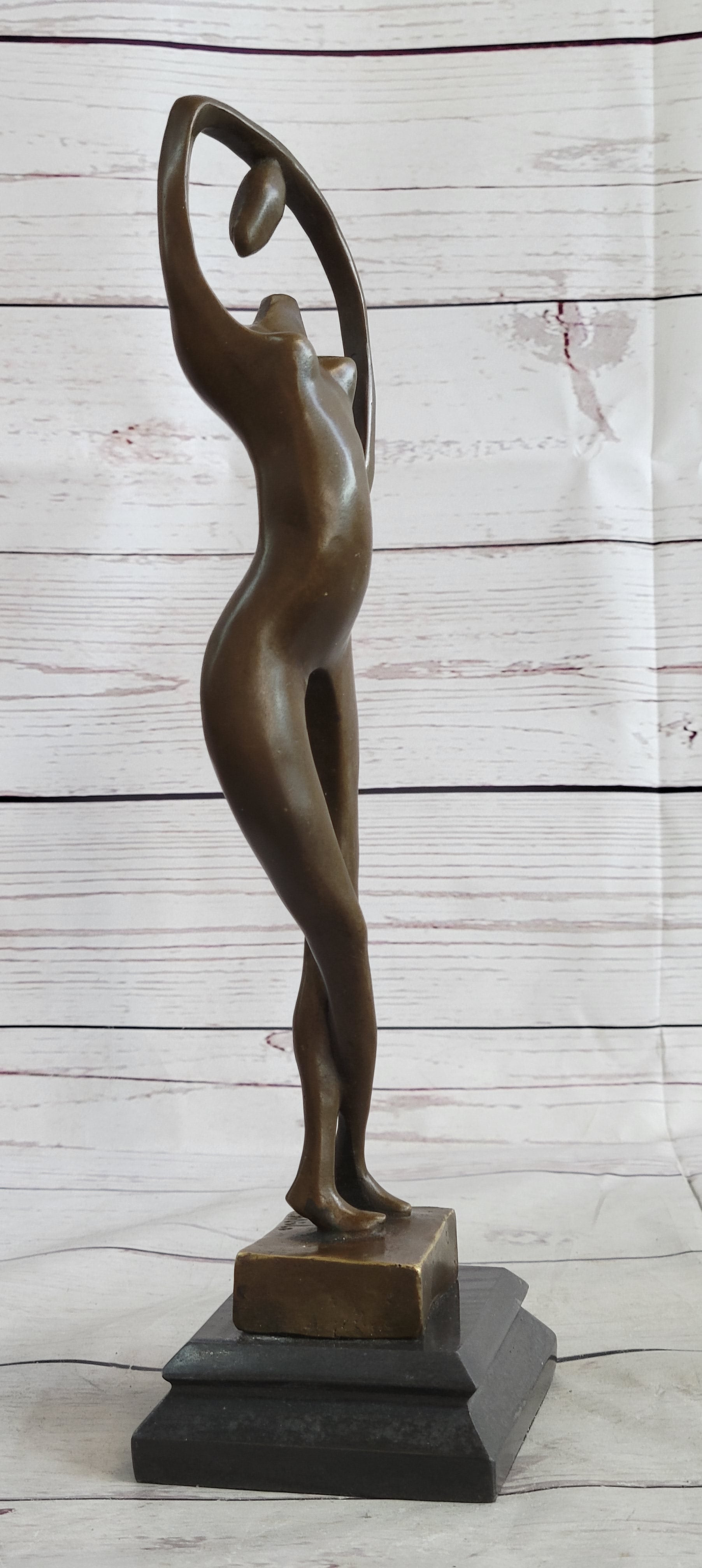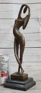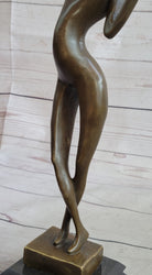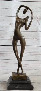 Abstract Nude Female Figure Stretching Modern Art Bronze Sculpture Statue on Marble Base