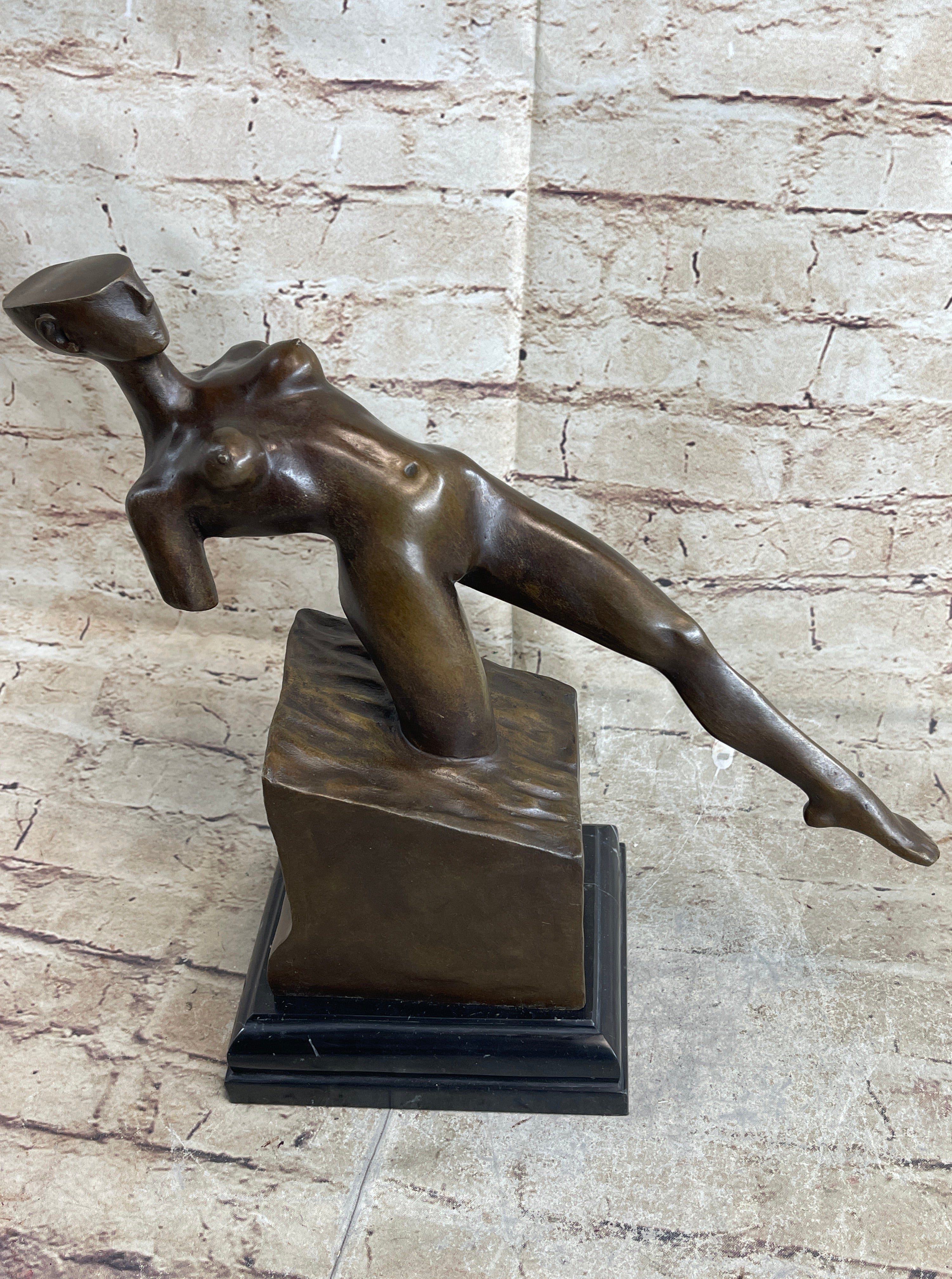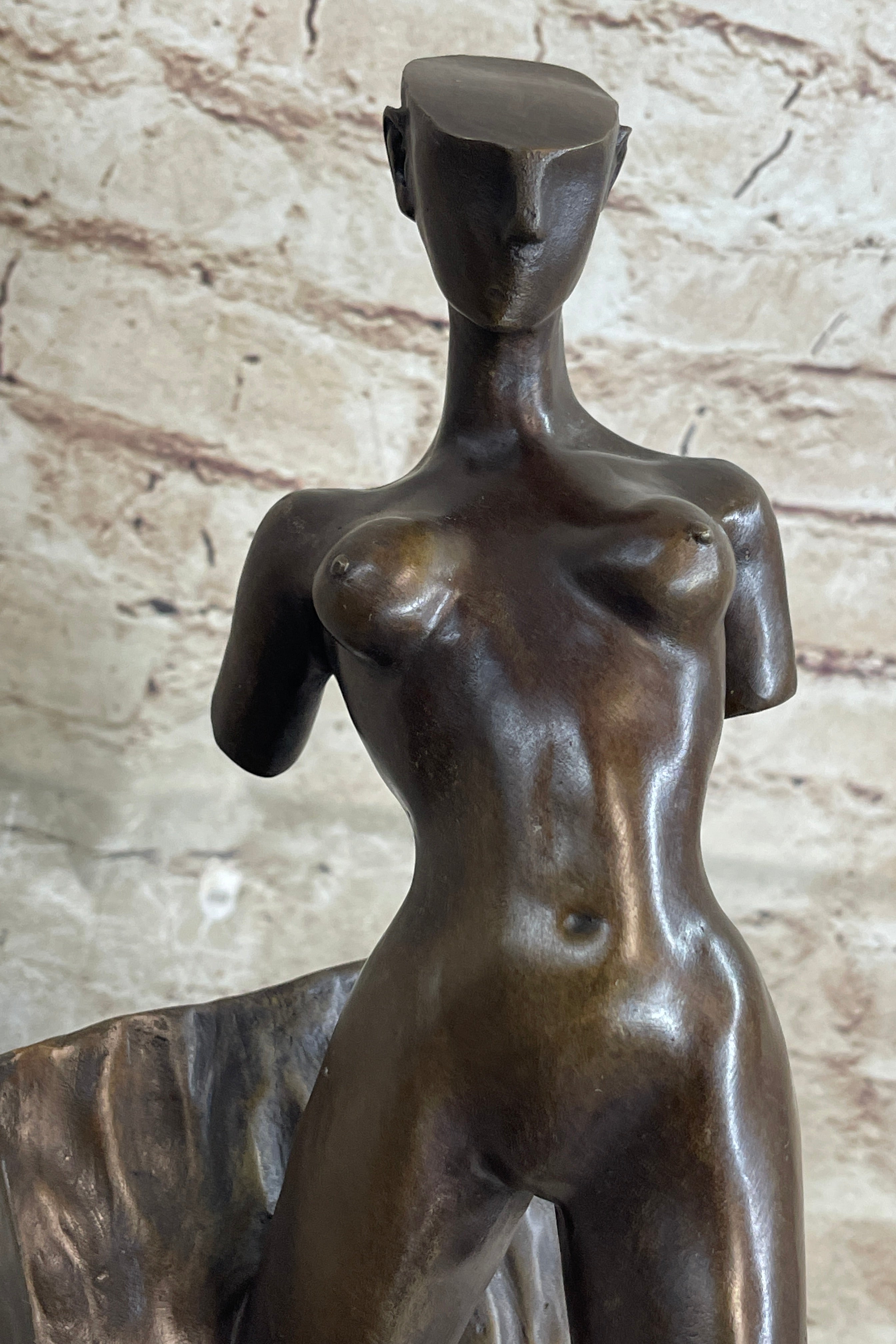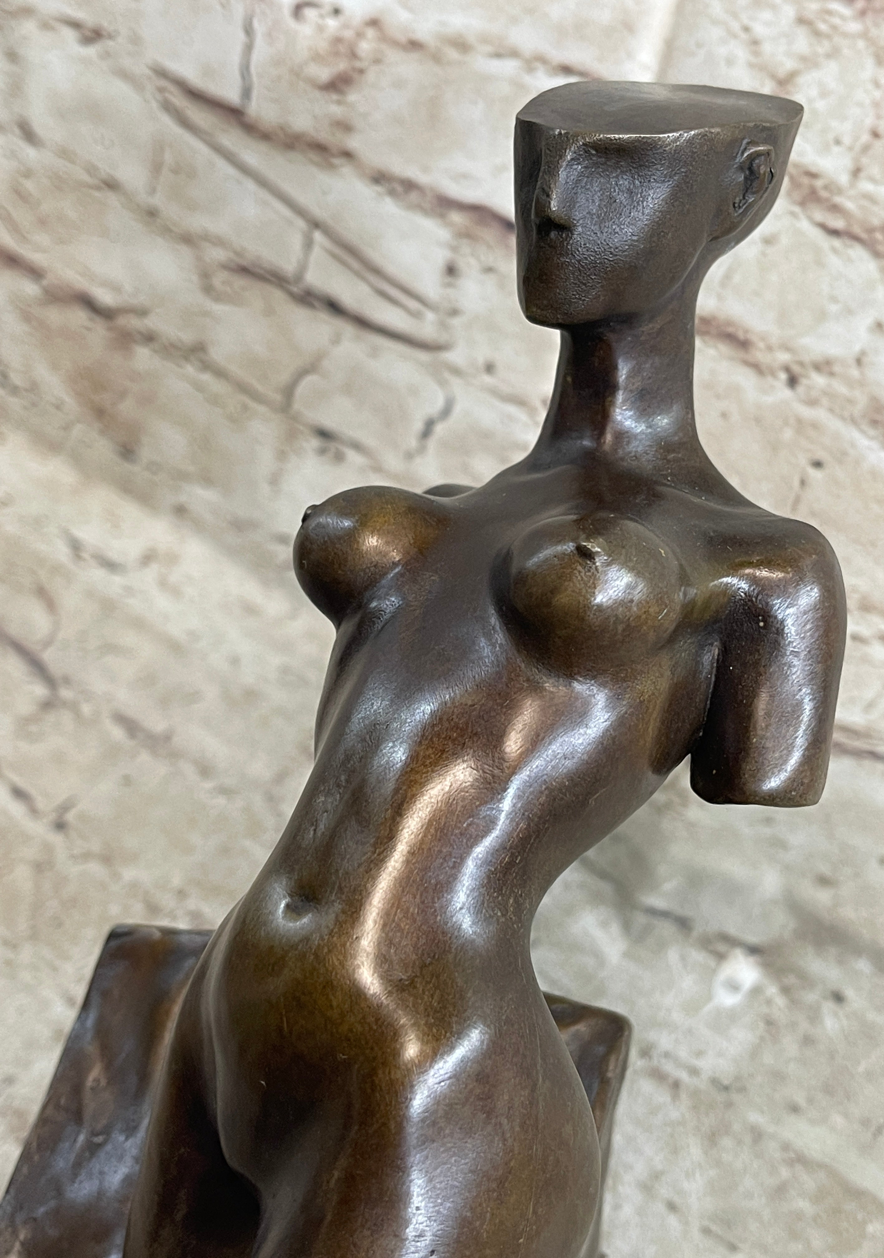 Abstract Surrealism Modern Art Sculpture of Nude Partial Female Figure on Marble Base