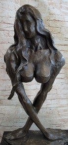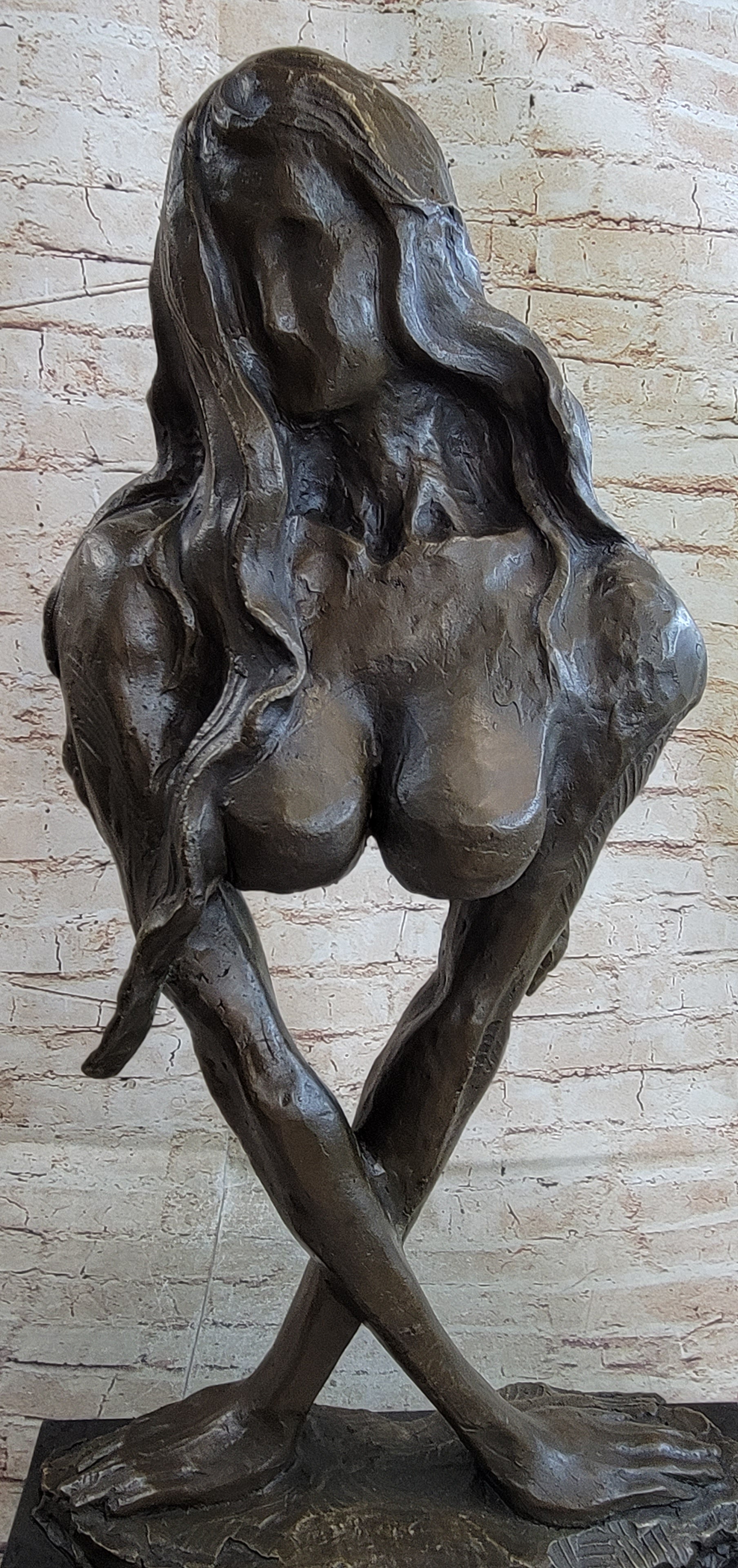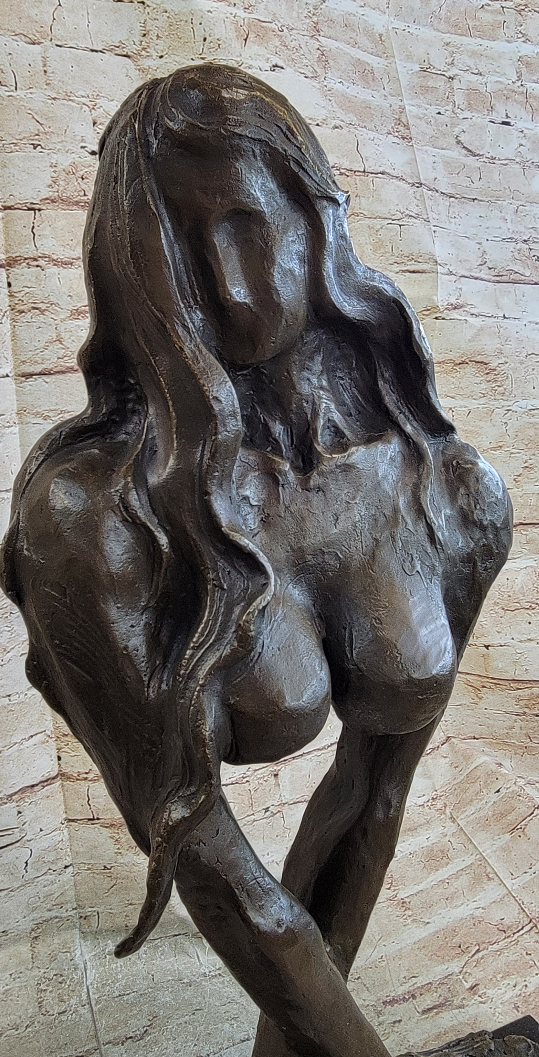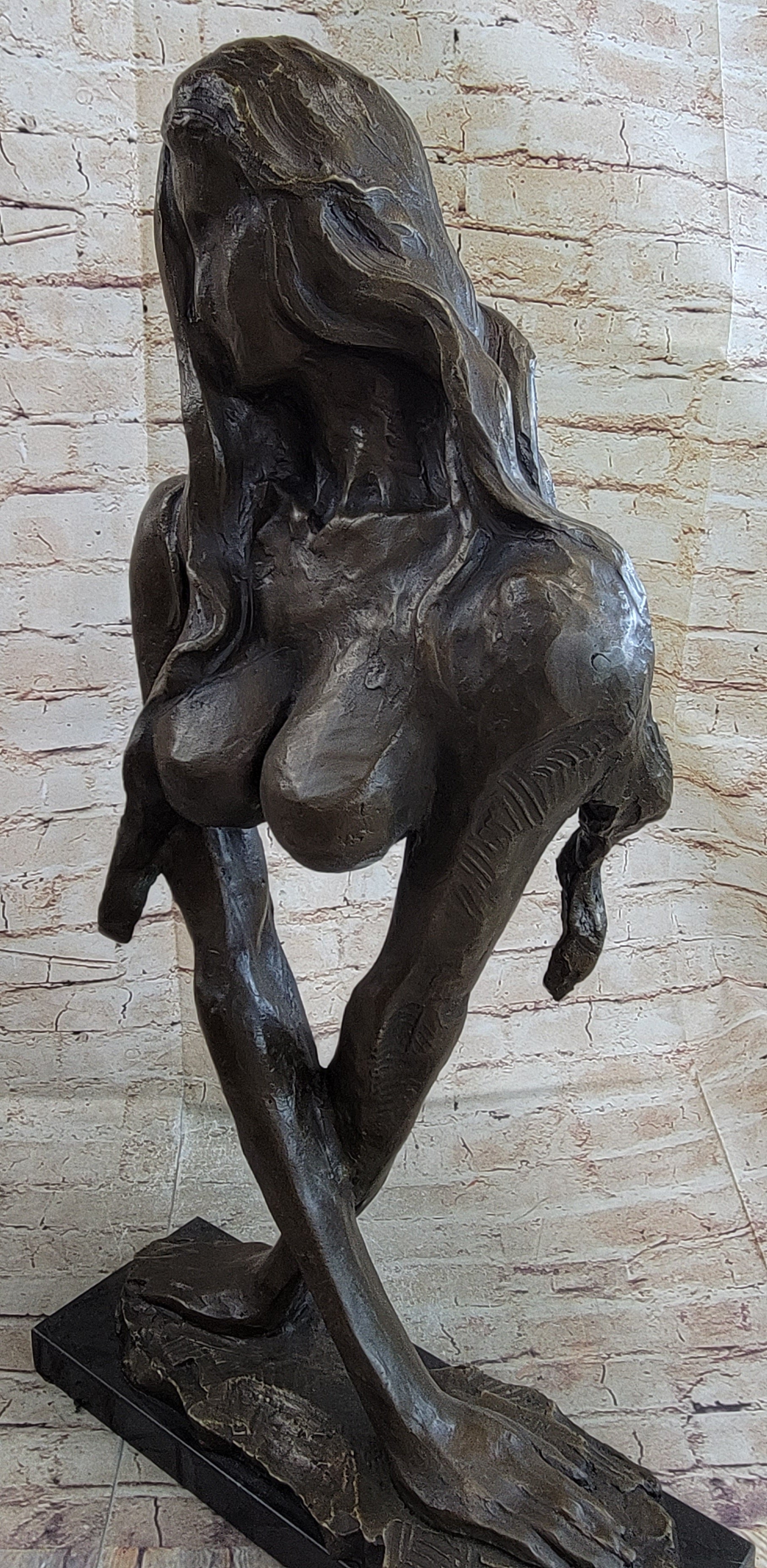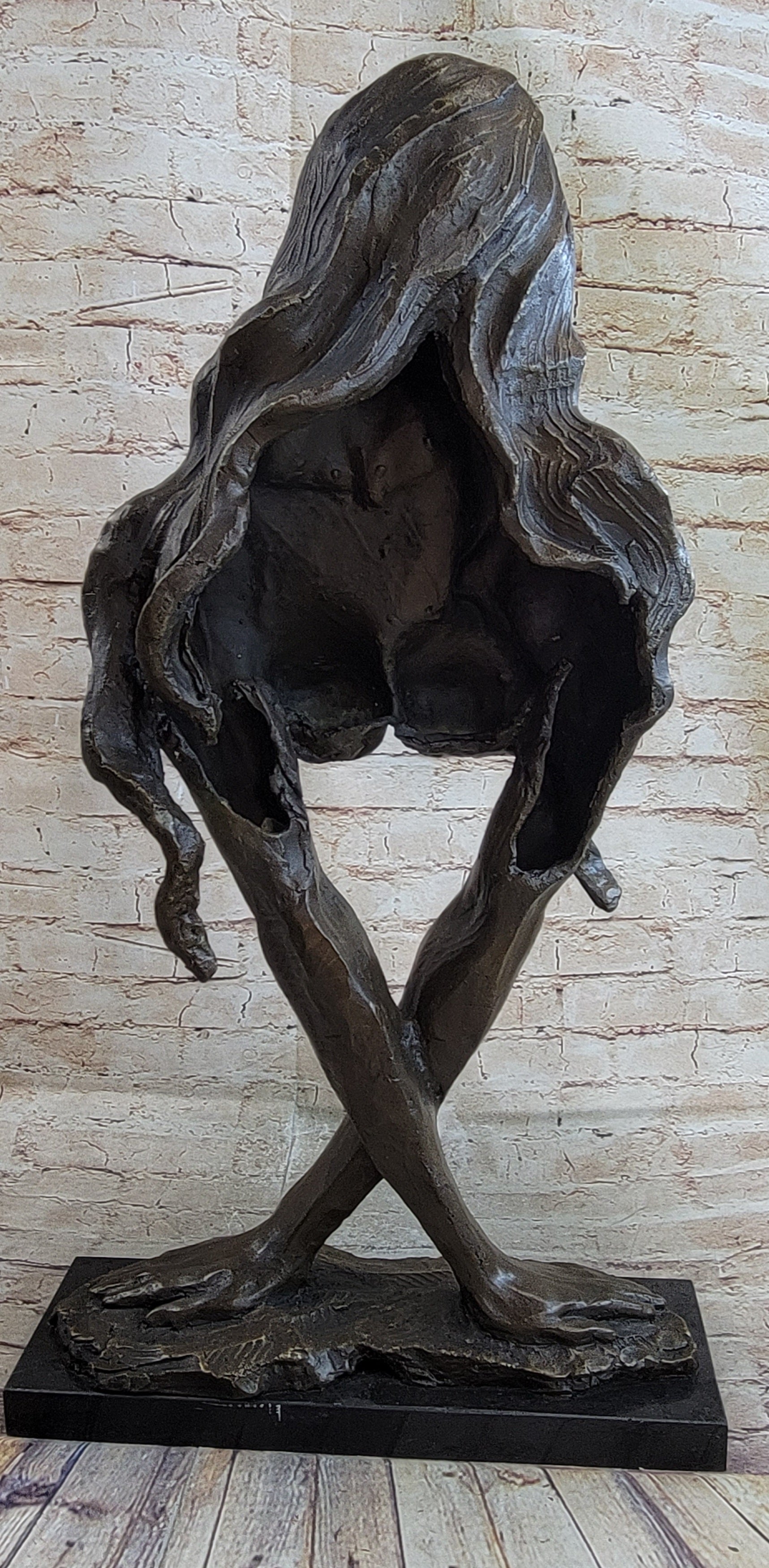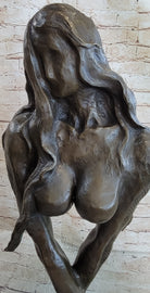 Abstract Surrealist Bronze Metal Bust of Nude Woman on Marble Base Signed Original Mario Nick