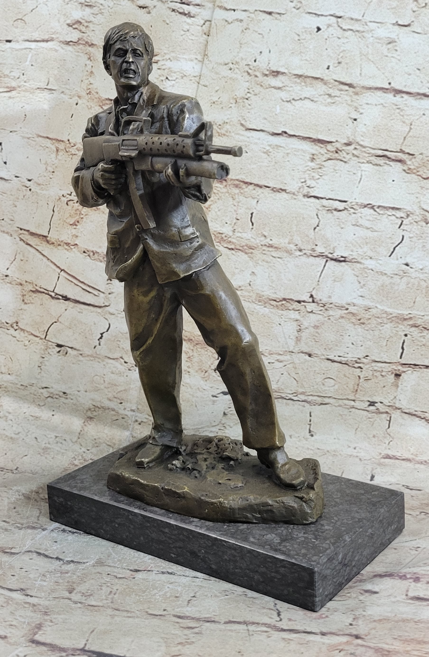 For Scarface aficionados, this bronze sculpture stands as a powerful conversation piece, inviting dialogue and admiration for its ability to capture the essence of a legendary movie moment. Whether displayed in a home, office, or private collection, this exquisite work of art promises to be a compelling and enduring homage to the enduring legacy of Tony "Scarface" Montana.Bronze Dimensions with Marble Base: Height 14" X Width 8"