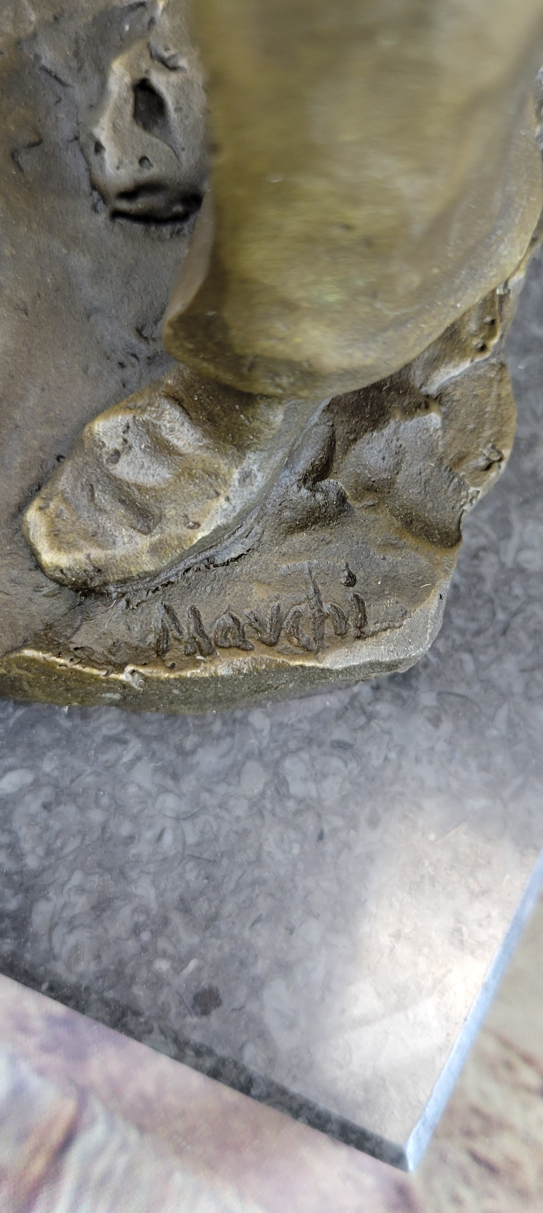 This original sculpture is a testament to the artistry of the creator, offering Scarface enthusiasts a unique and compelling piece that immortalizes one of cinema's most iconic characters. The limited edition status of these hand-crafted art pieces adds to their exclusivity, making them a rare find for collectors and fans alike. Mounted on a sleek black marble base and adorned with a brown patina tarnish, the sculpture radiates sophistication and cinematic allure. The artist Mavchi's signature is a mark of authenticity, solidifying this sculpture as a must-have for those who appreciate the fusion of film and art.