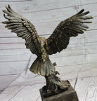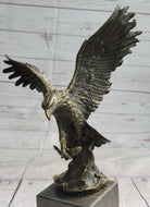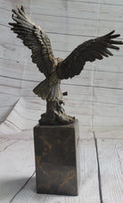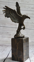 American Bald Eagle Holding Fish Bronze Sculpture Statue on Marble Base Signed Original 14" x 8"