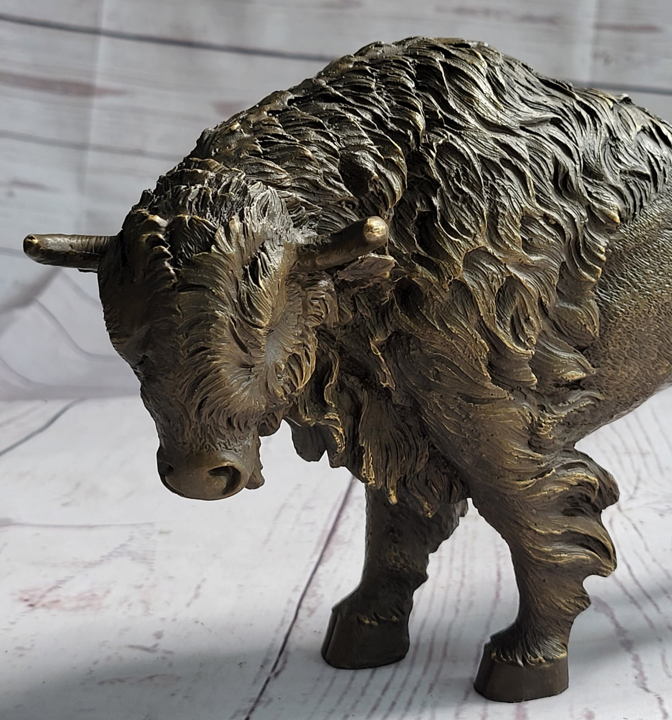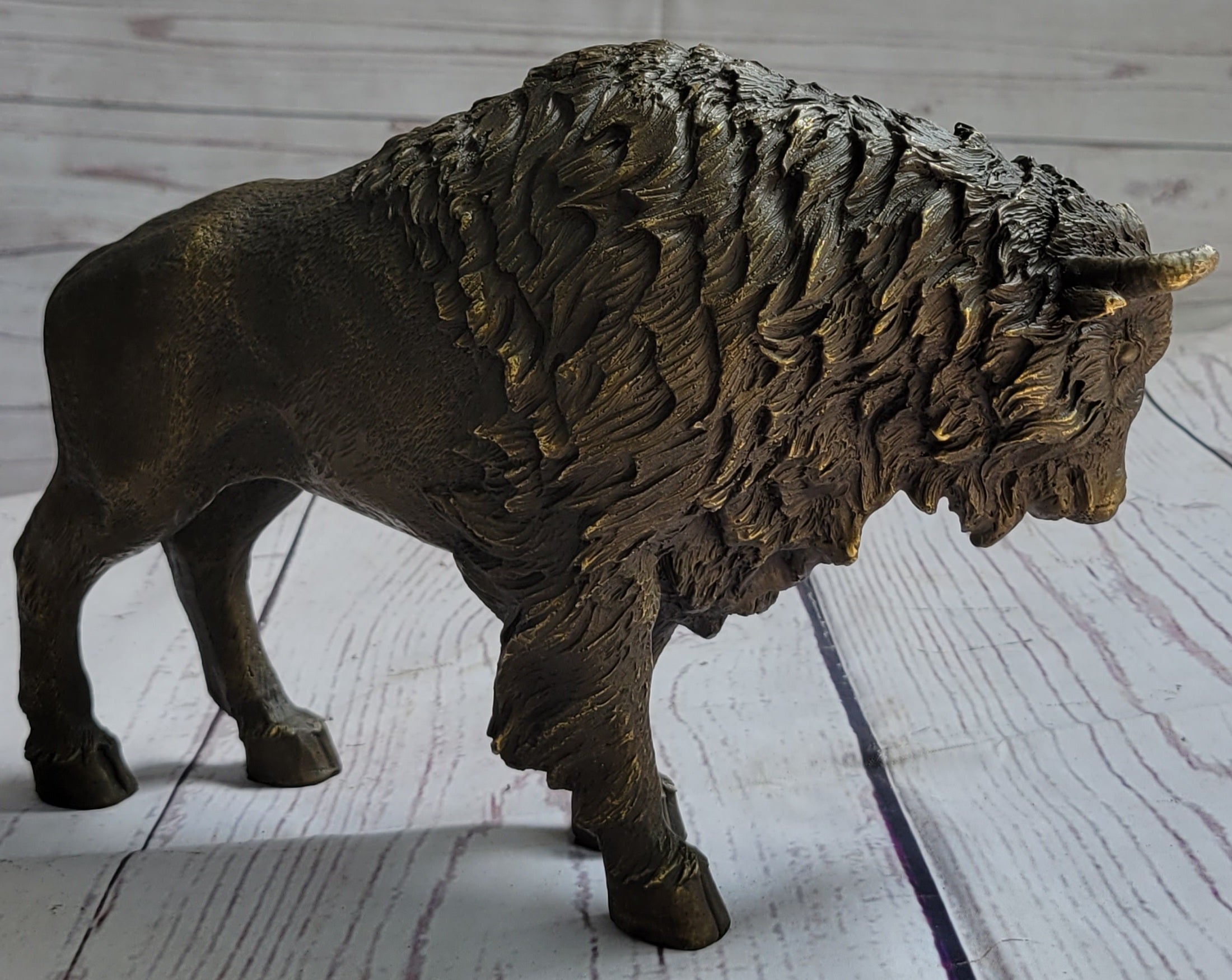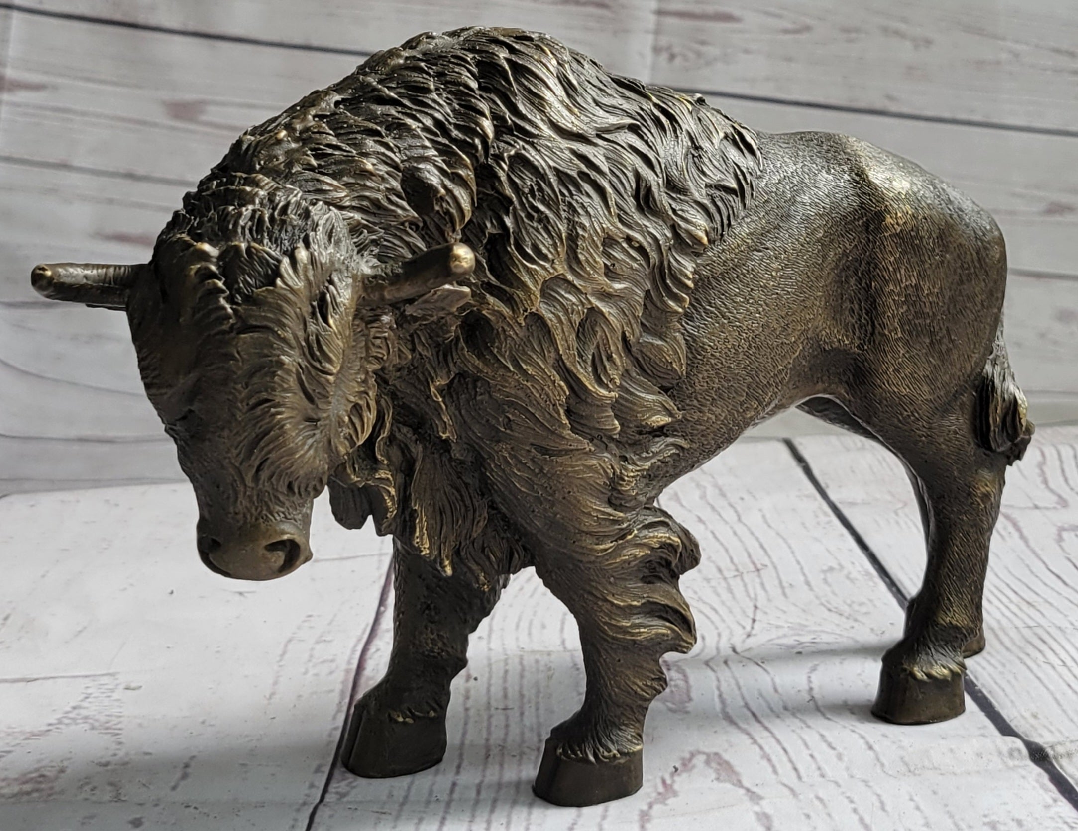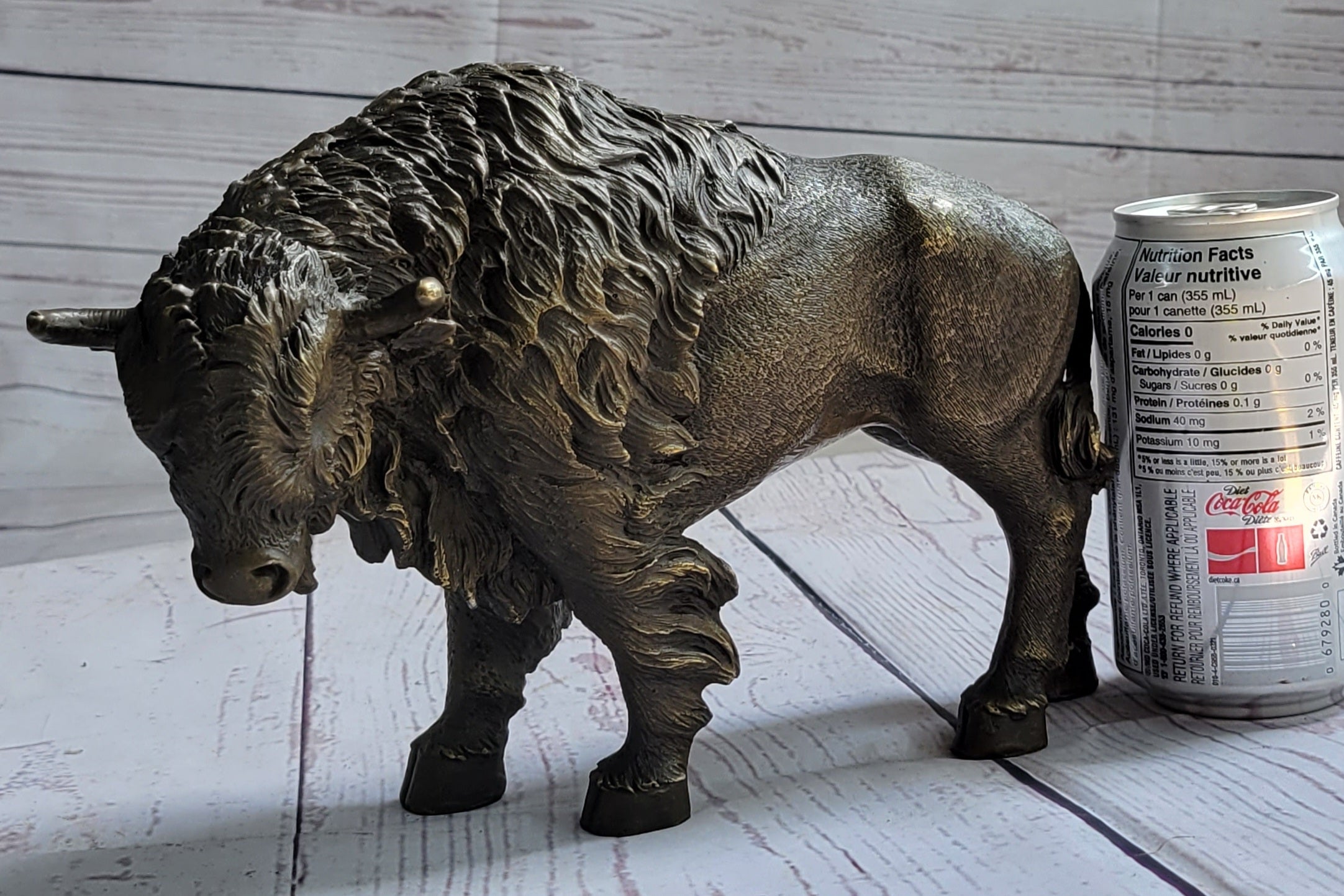 American Buffalo Bull Bison Bronze Metal Figure Figurine Sculpture Statue Western Decor 8" x 11"