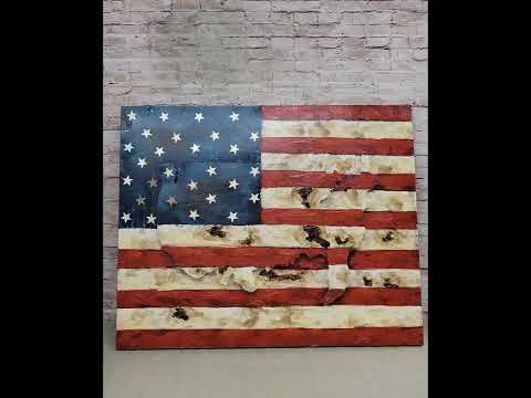 American Flag & Map 3D Wall Art Sculpture Metal Cutout Painting on Wood Canvas