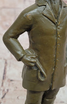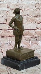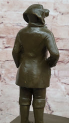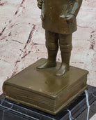 Handmade using the traditional lost wax method, the sculpture features a rich brown patina and is securely mounted on a polished black marble base, adding a touch of elegance to its whimsical, philosophical tone. Signed by the artist M. Lopez (Milo), this piece exemplifies the power of bronze art to communicate complex themes through imaginative form.Bronze Dimensions with Marble Base: Height 9" X Width 4.5"