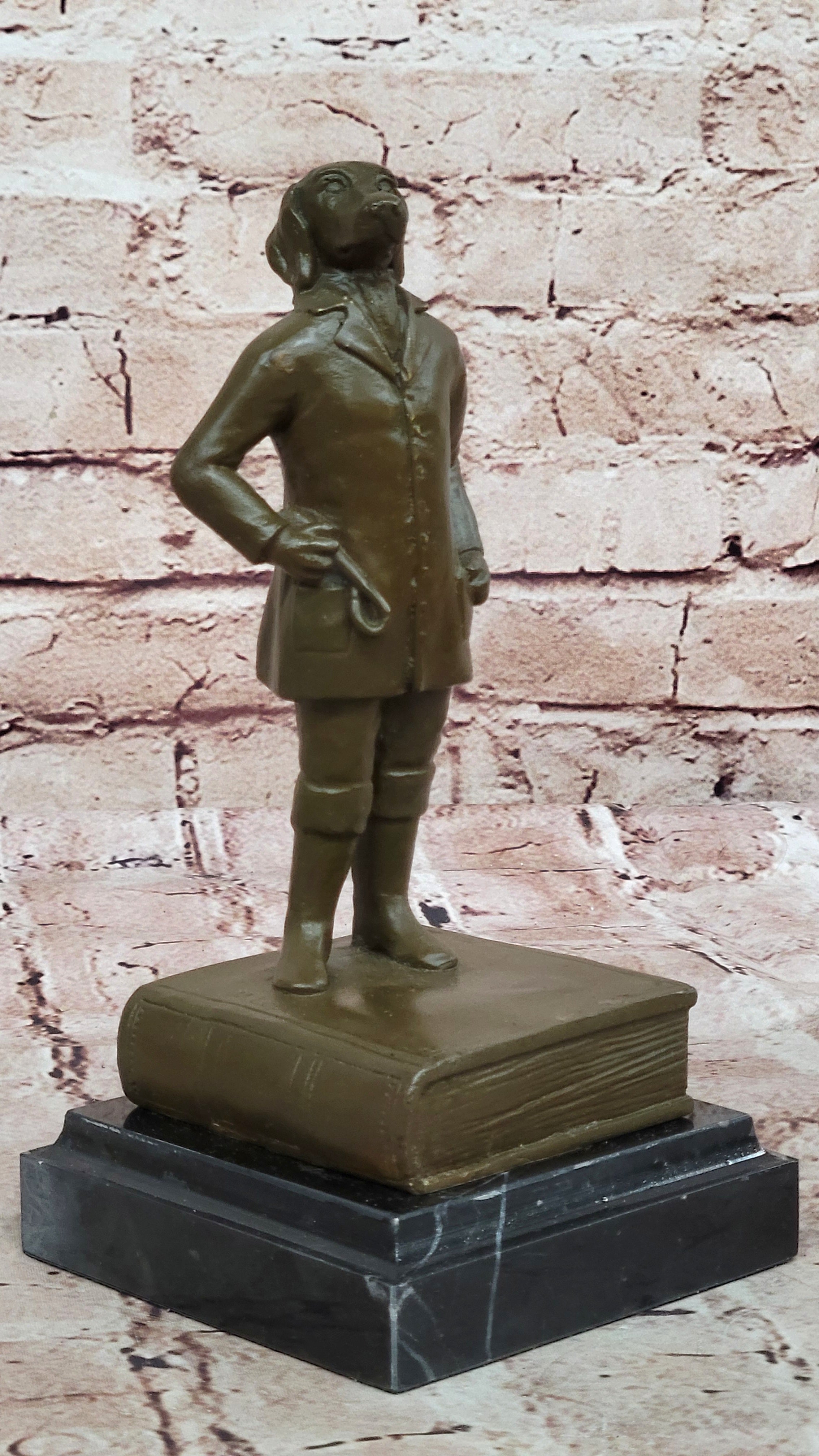 Anthropomorphic Dog Bronze Sculpture on Book - Whimsical Scholarly Animal Art