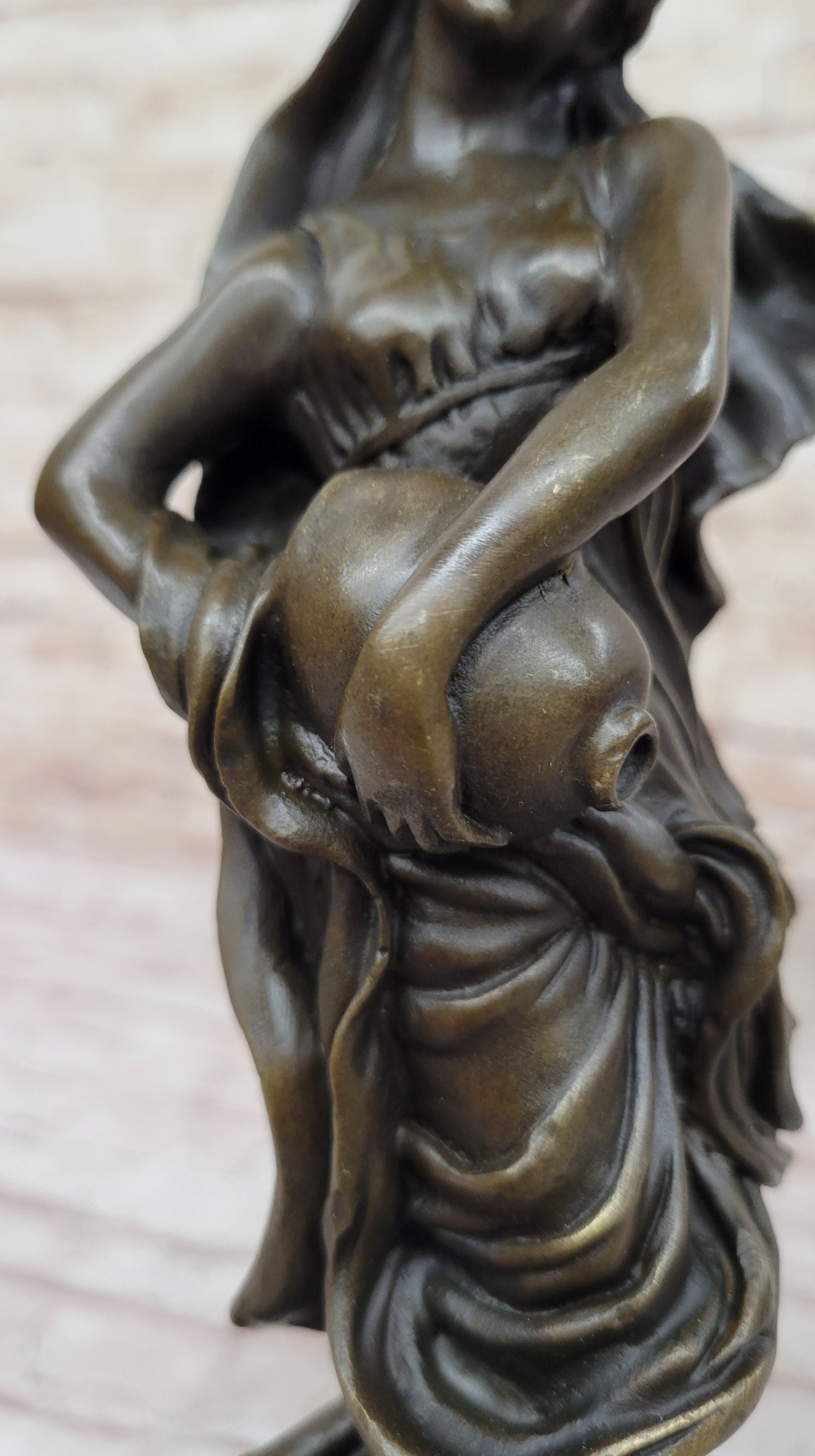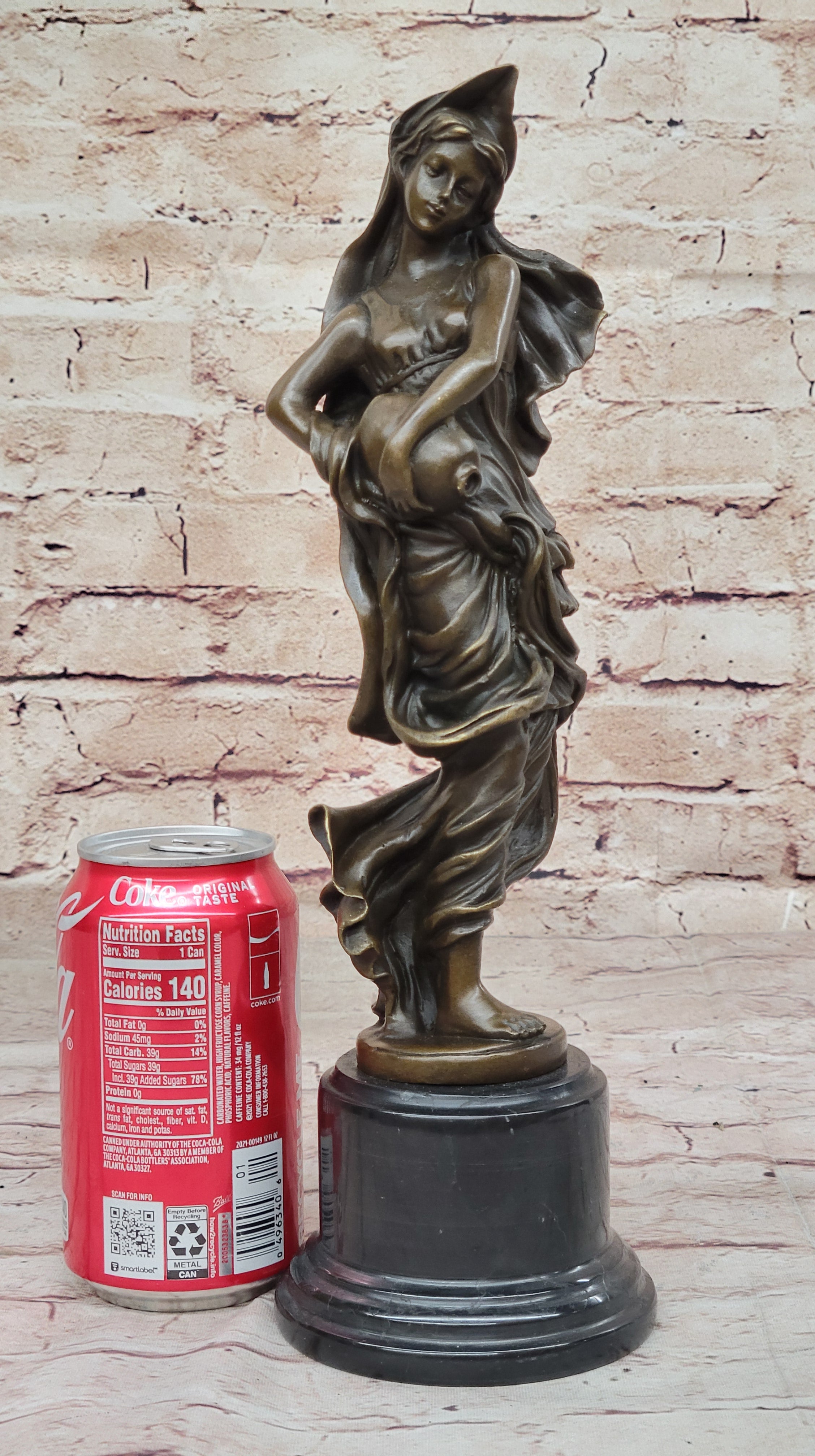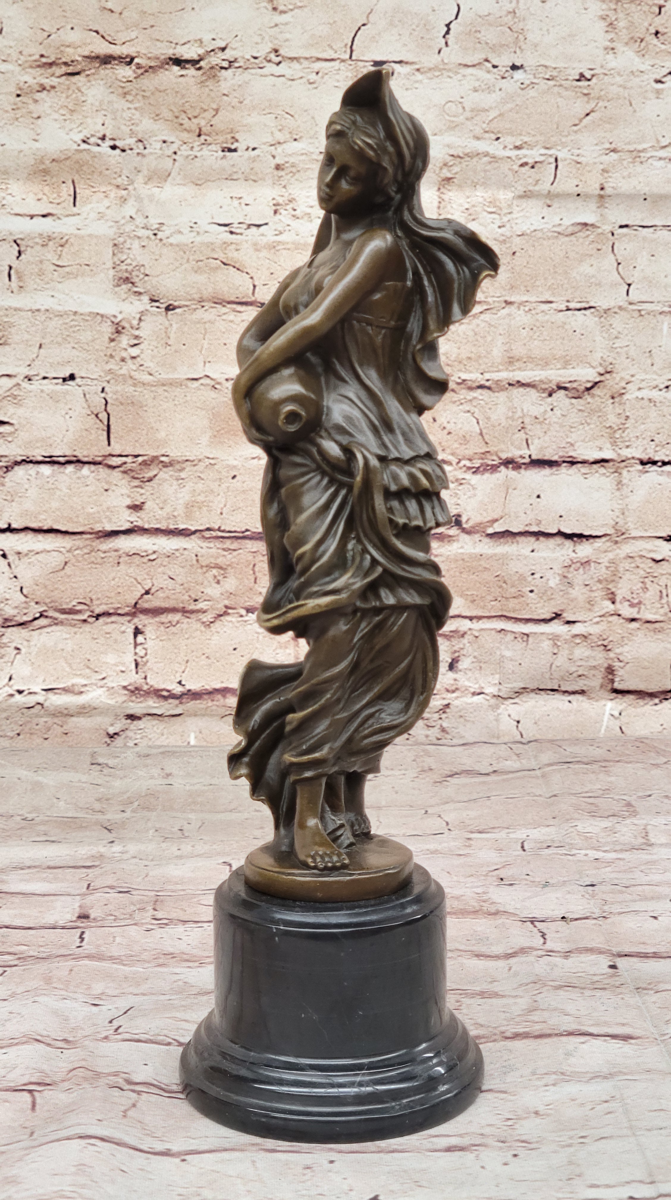 The lost wax method, an ancient casting technique, adds a layer of authenticity to this bronze sculpture. The intricate process ensures that each detail of the maiden's form and the water jug is faithfully reproduced, preserving the artist's original vision. The brown patina finish enhances the sculpture's warmth, adding depth to the overall composition and emphasizing Milo's commitment to quality craftsmanship.