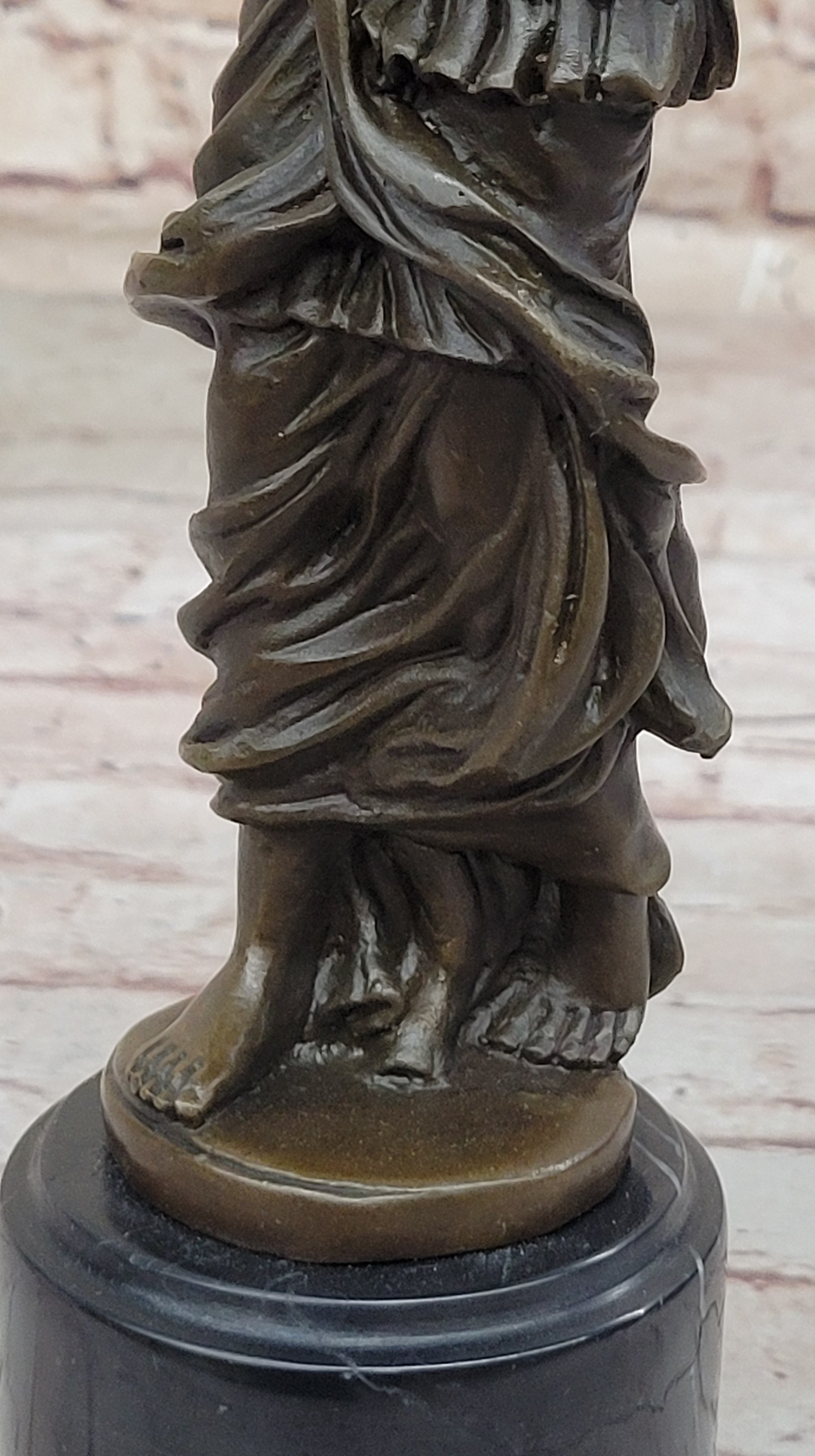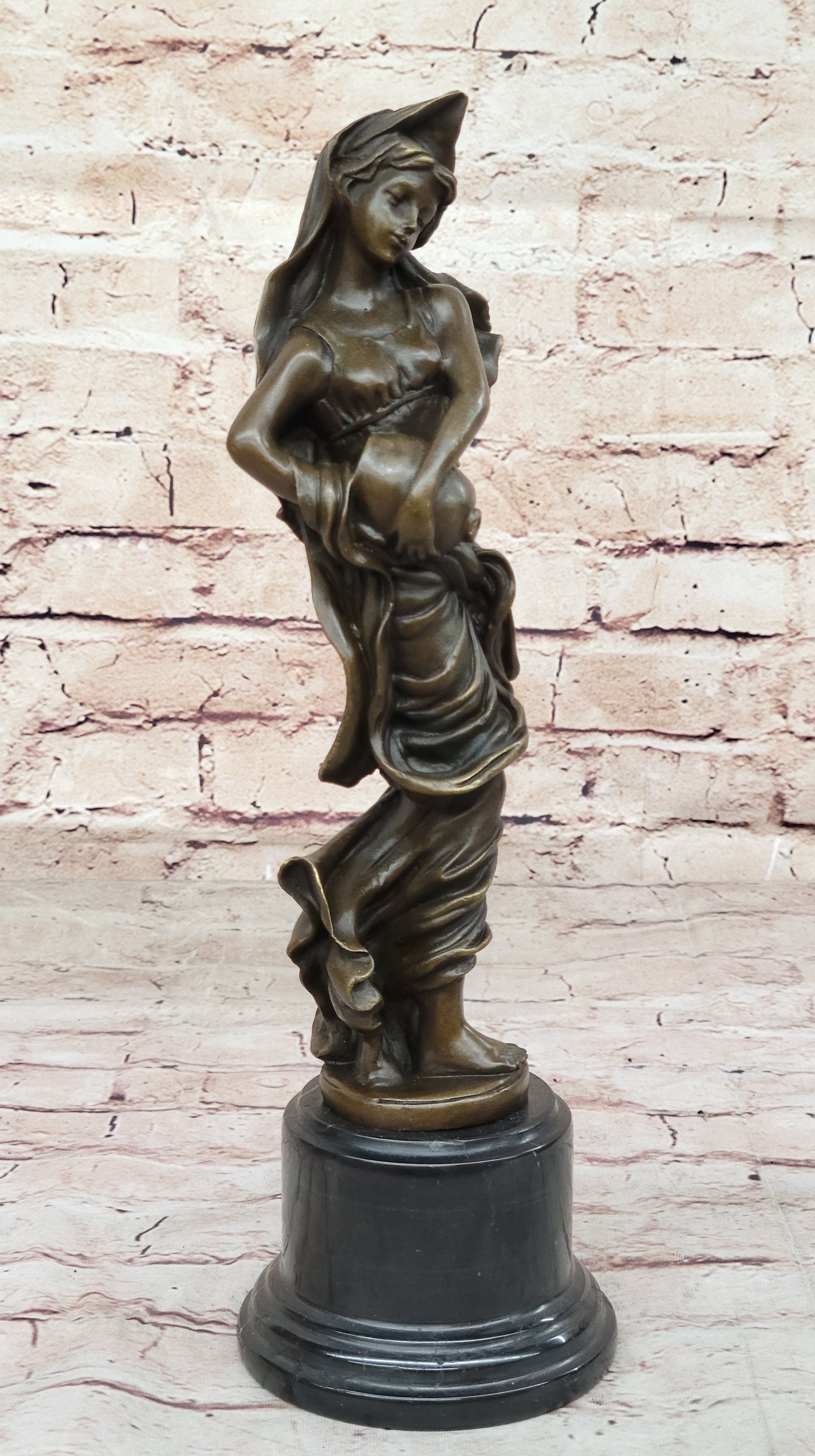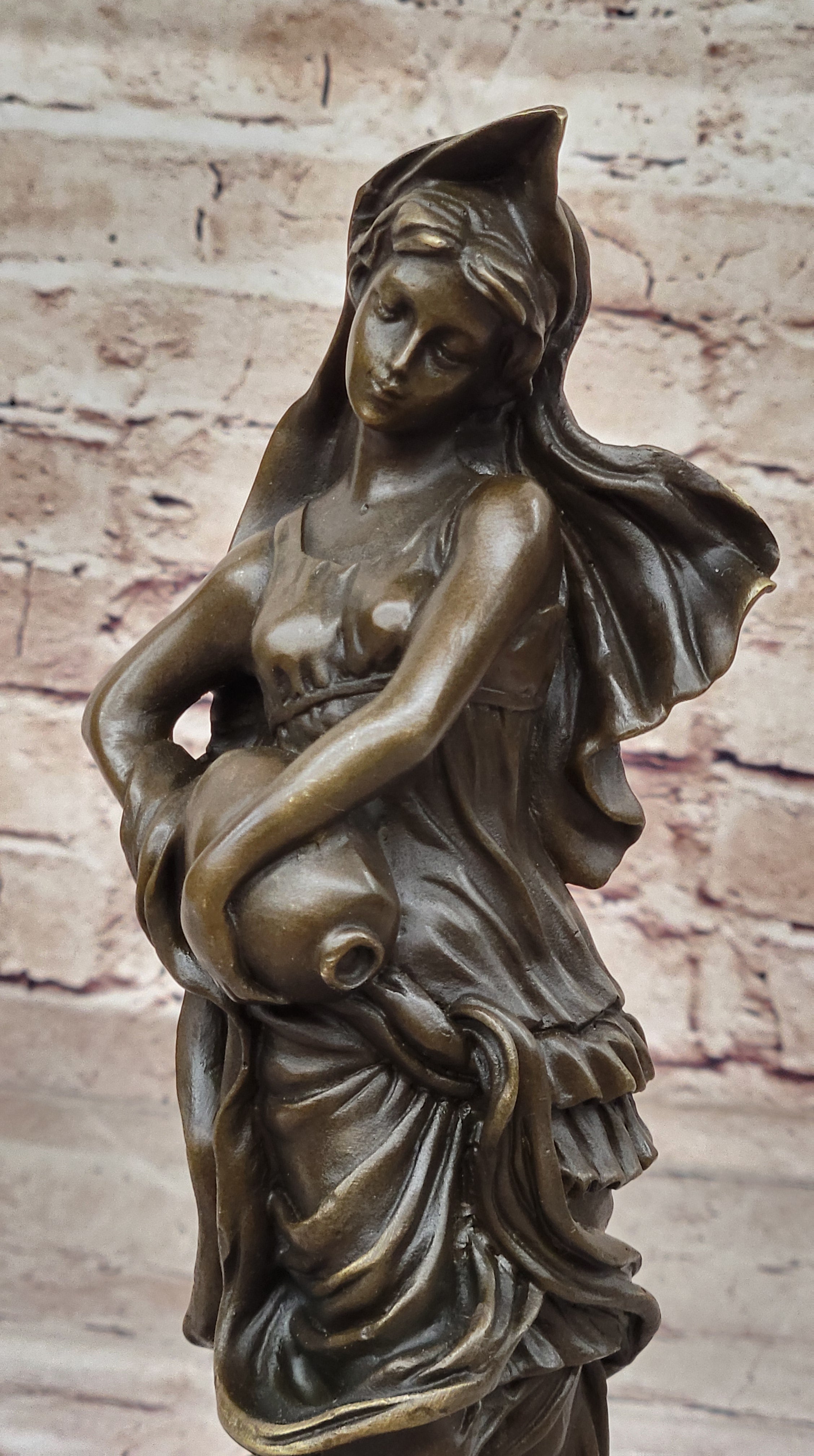 The lost wax method, an ancient casting technique, adds a layer of authenticity to this bronze sculpture. The intricate process ensures that each detail of the maiden's form and the water jug is faithfully reproduced, preserving the artist's original vision. The brown patina finish enhances the sculpture's warmth, adding depth to the overall composition and emphasizing Milo's commitment to quality craftsmanship.