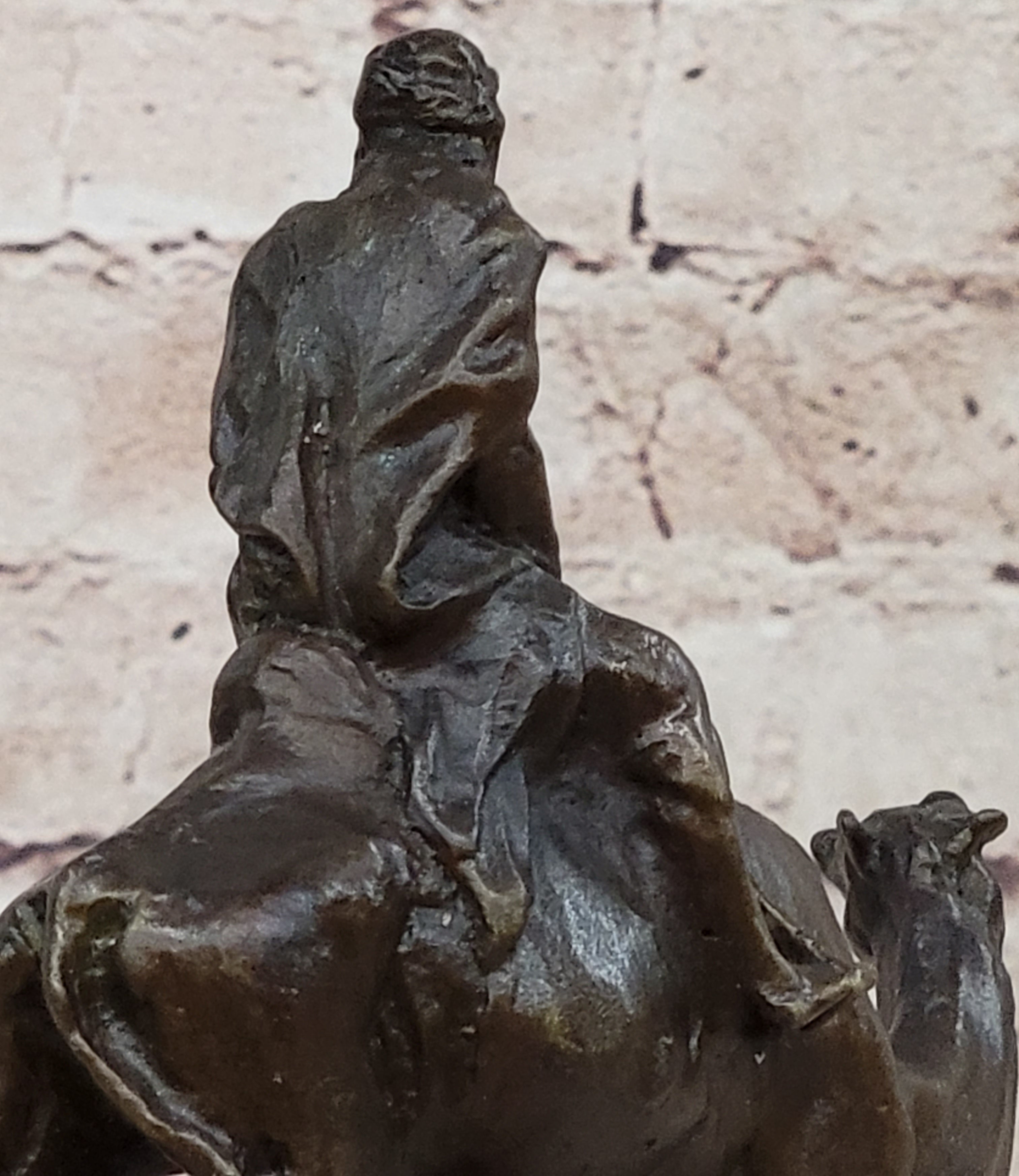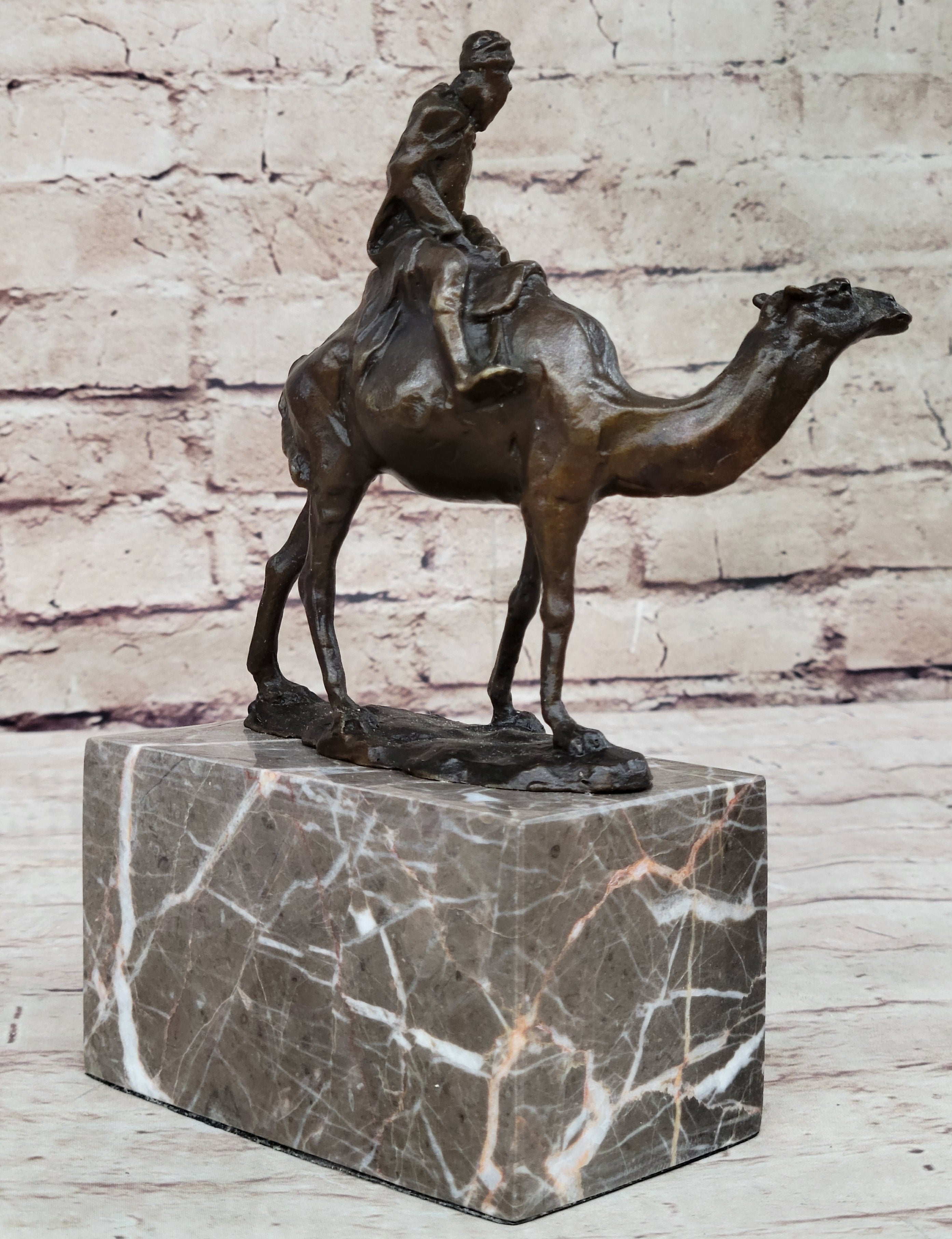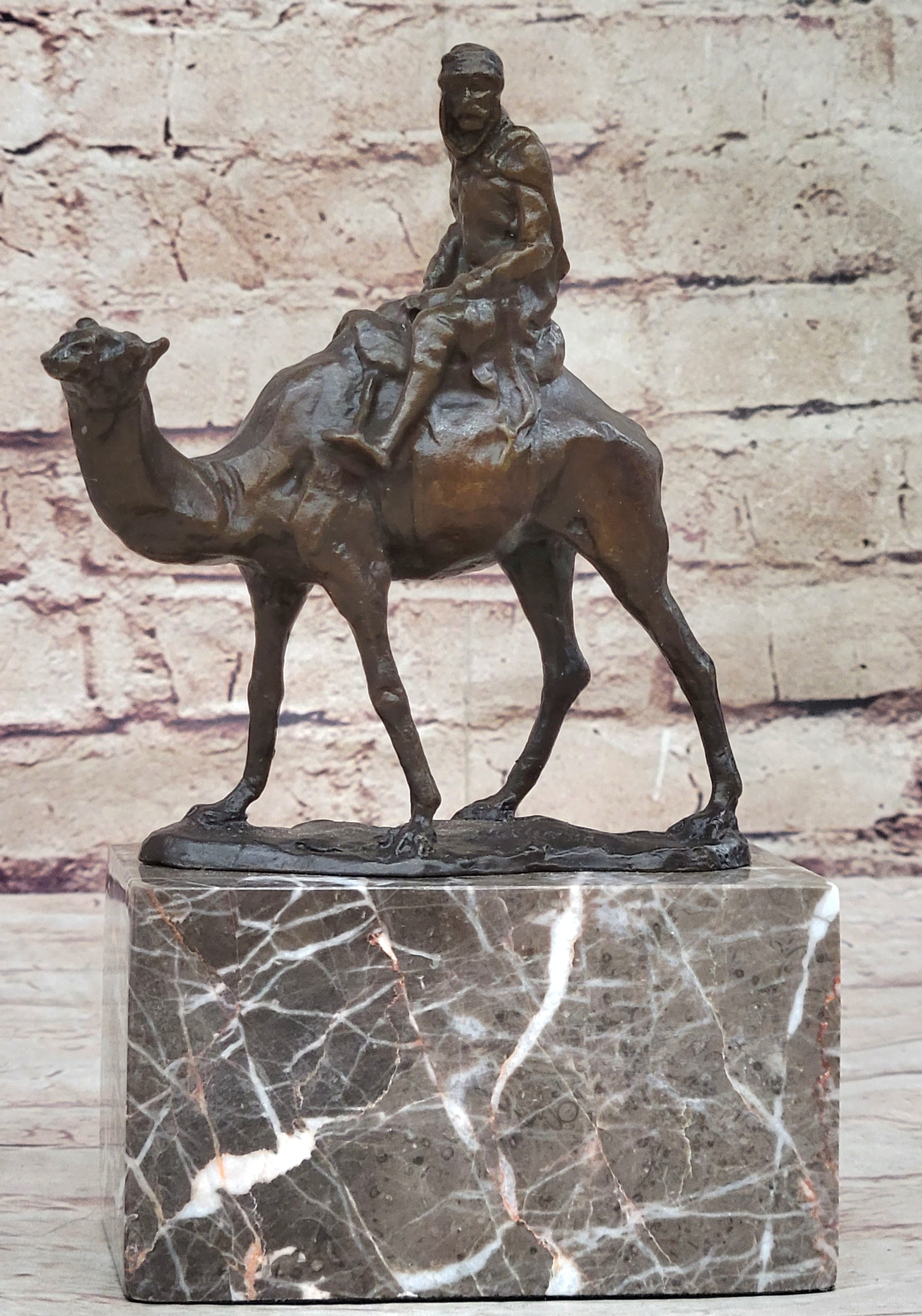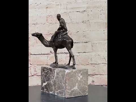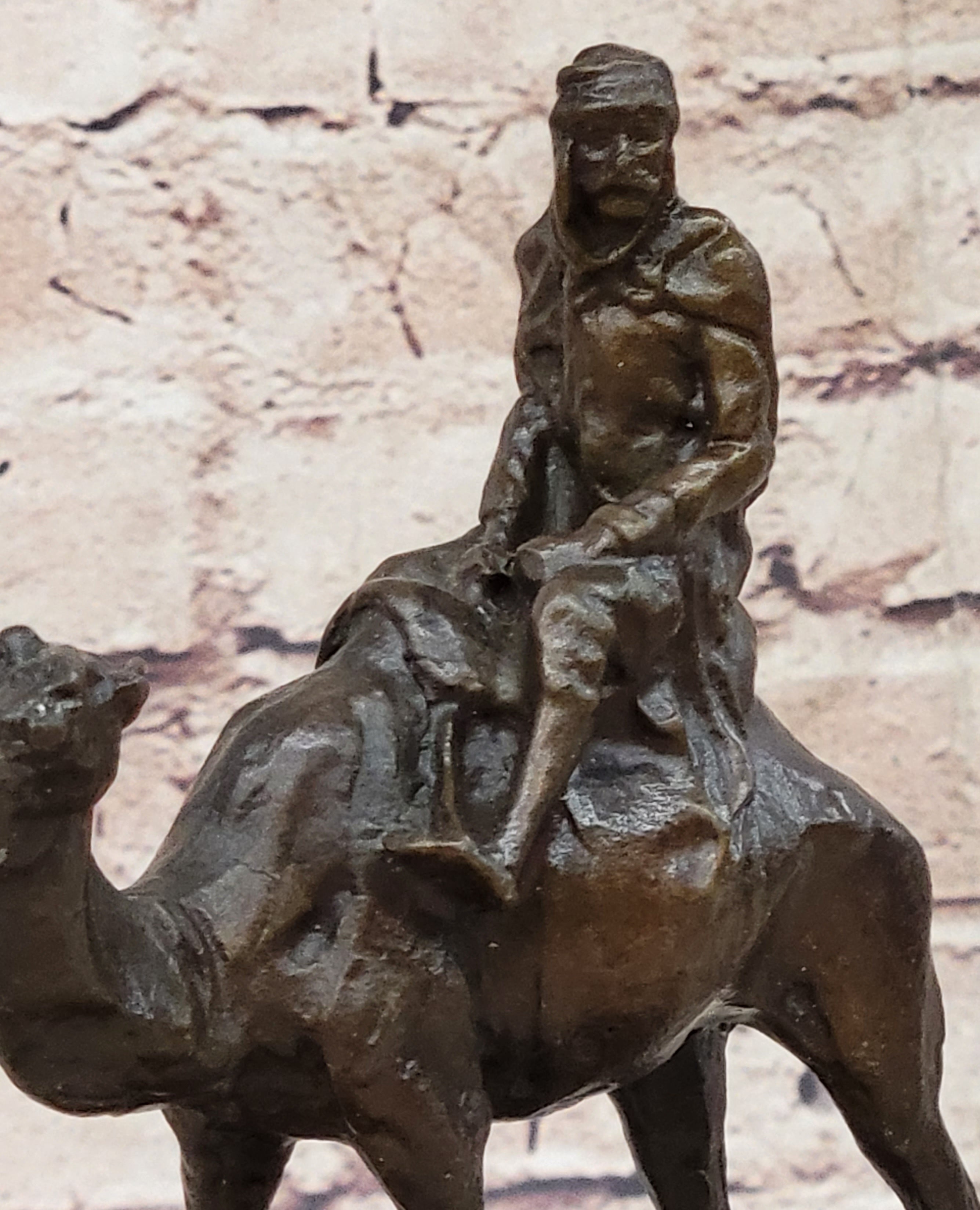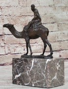 Arabian Man Riding Camel Desert Scene Decor Bronze Statue Sculpture Figure on Marble Base