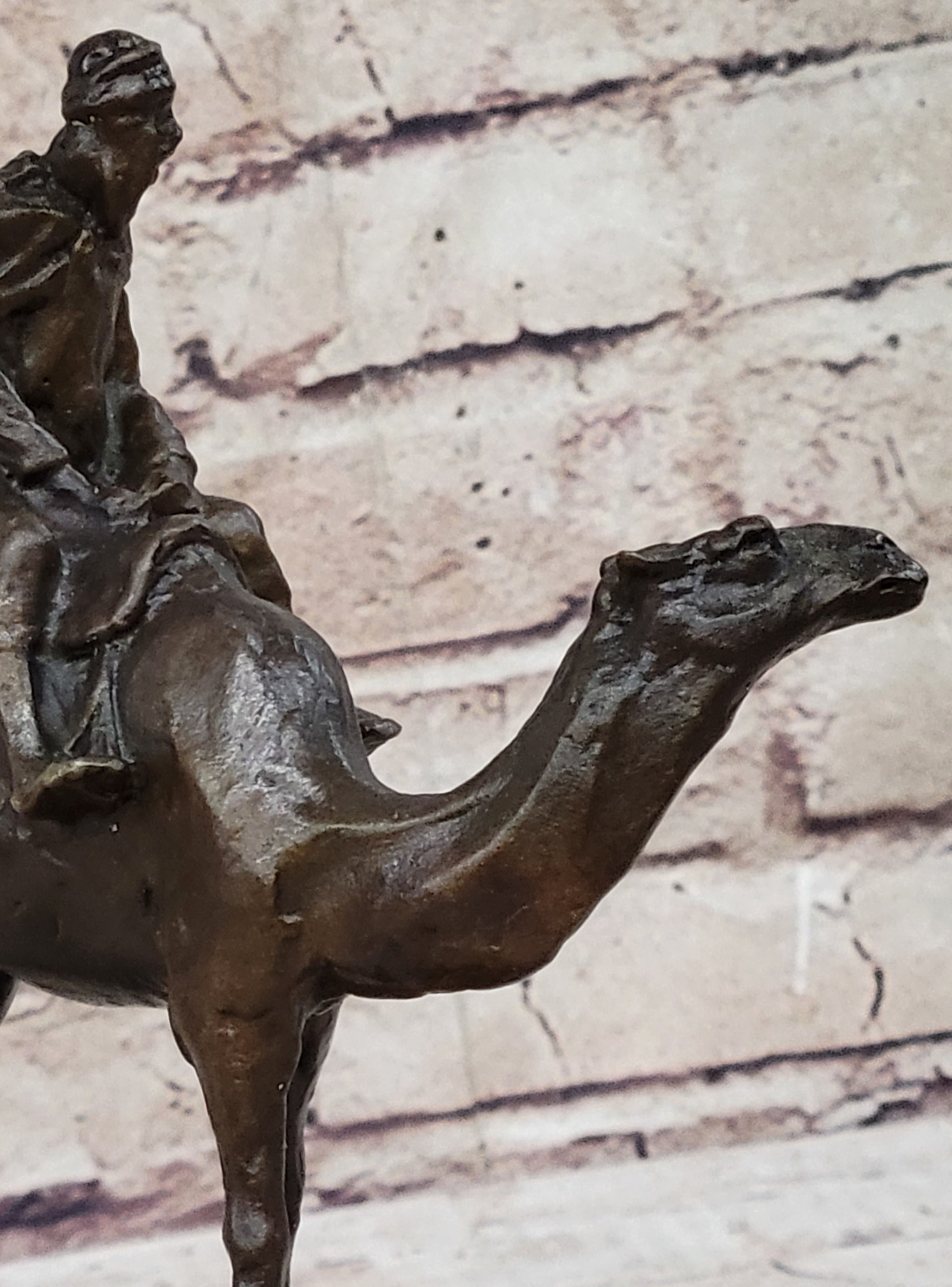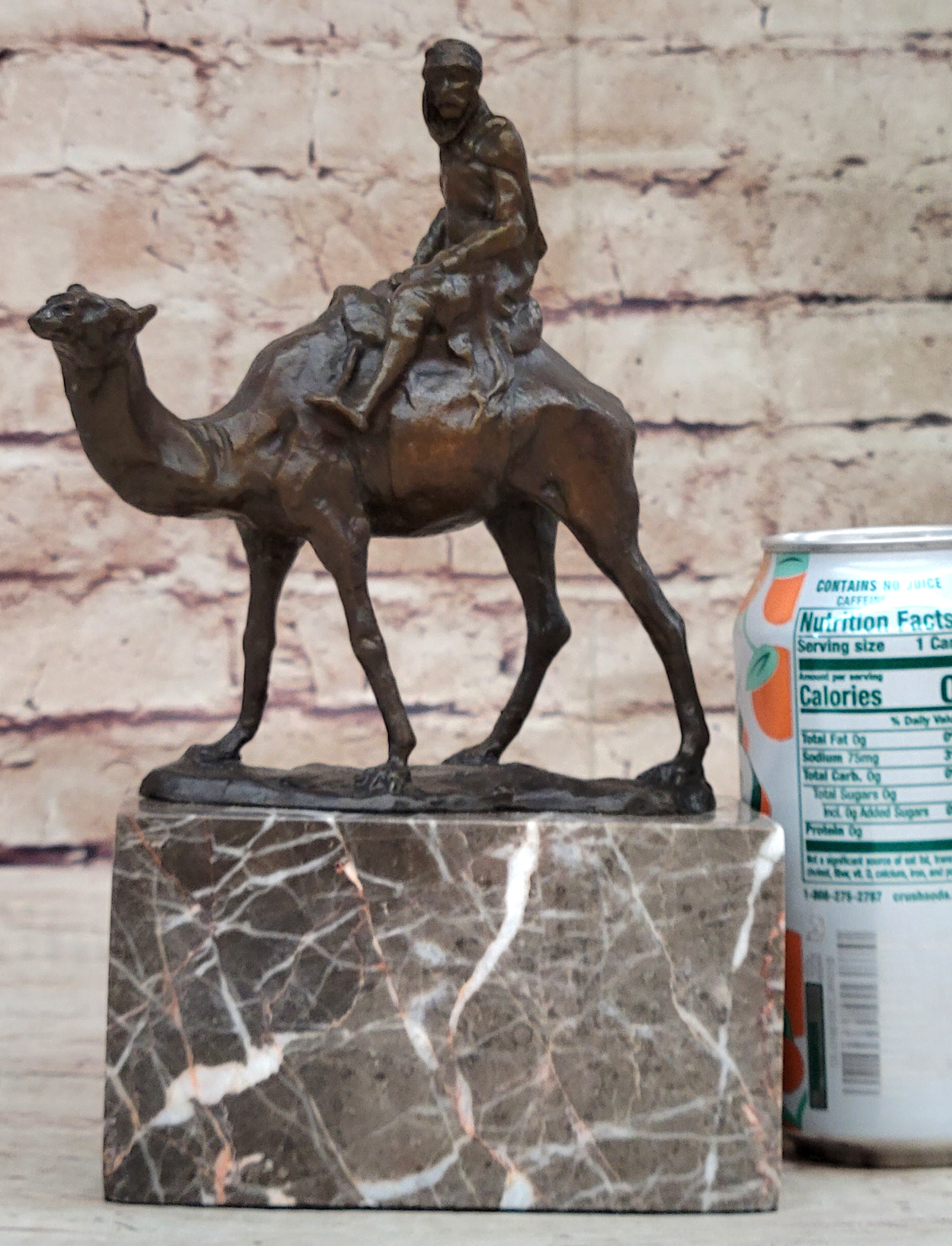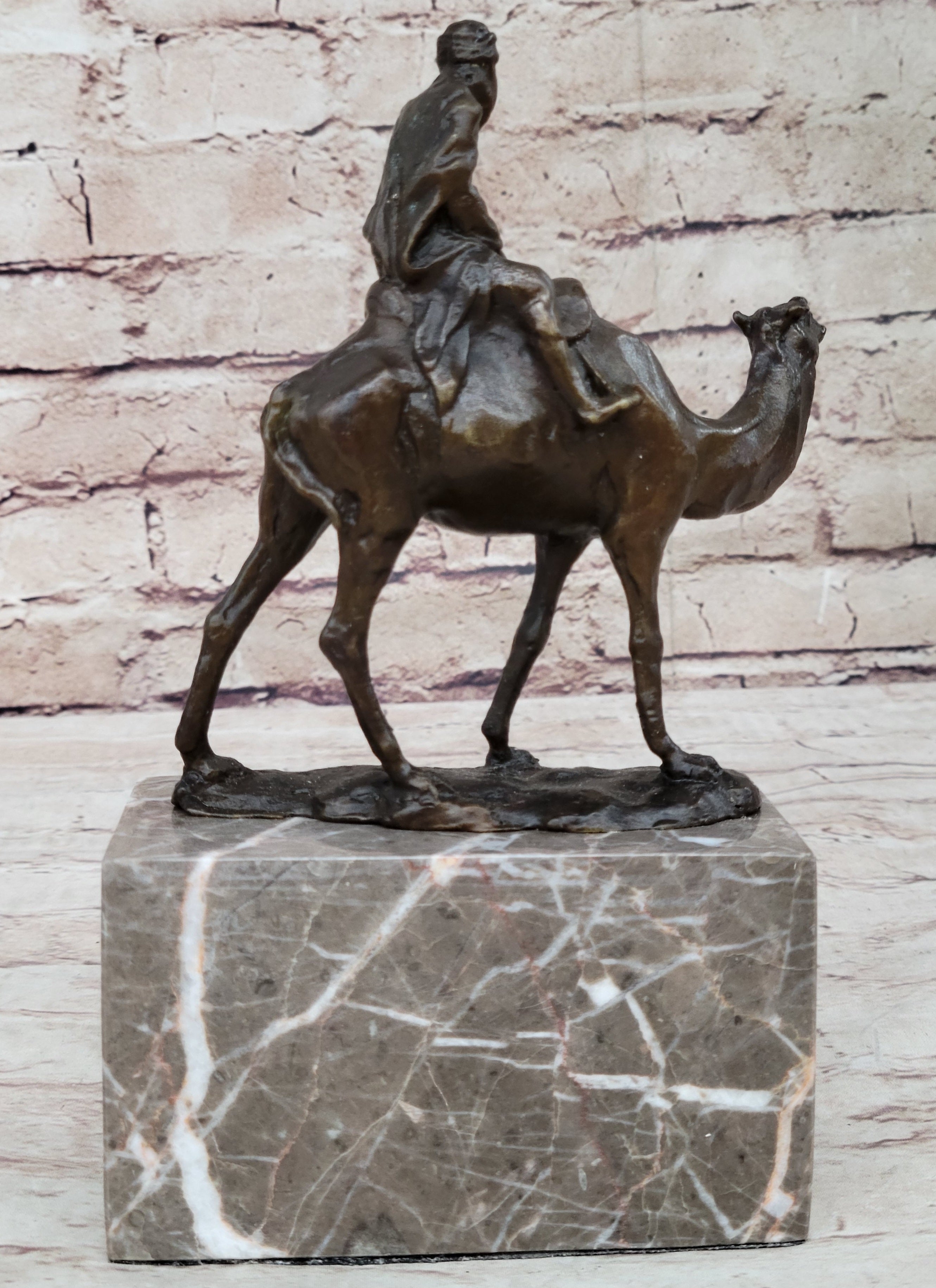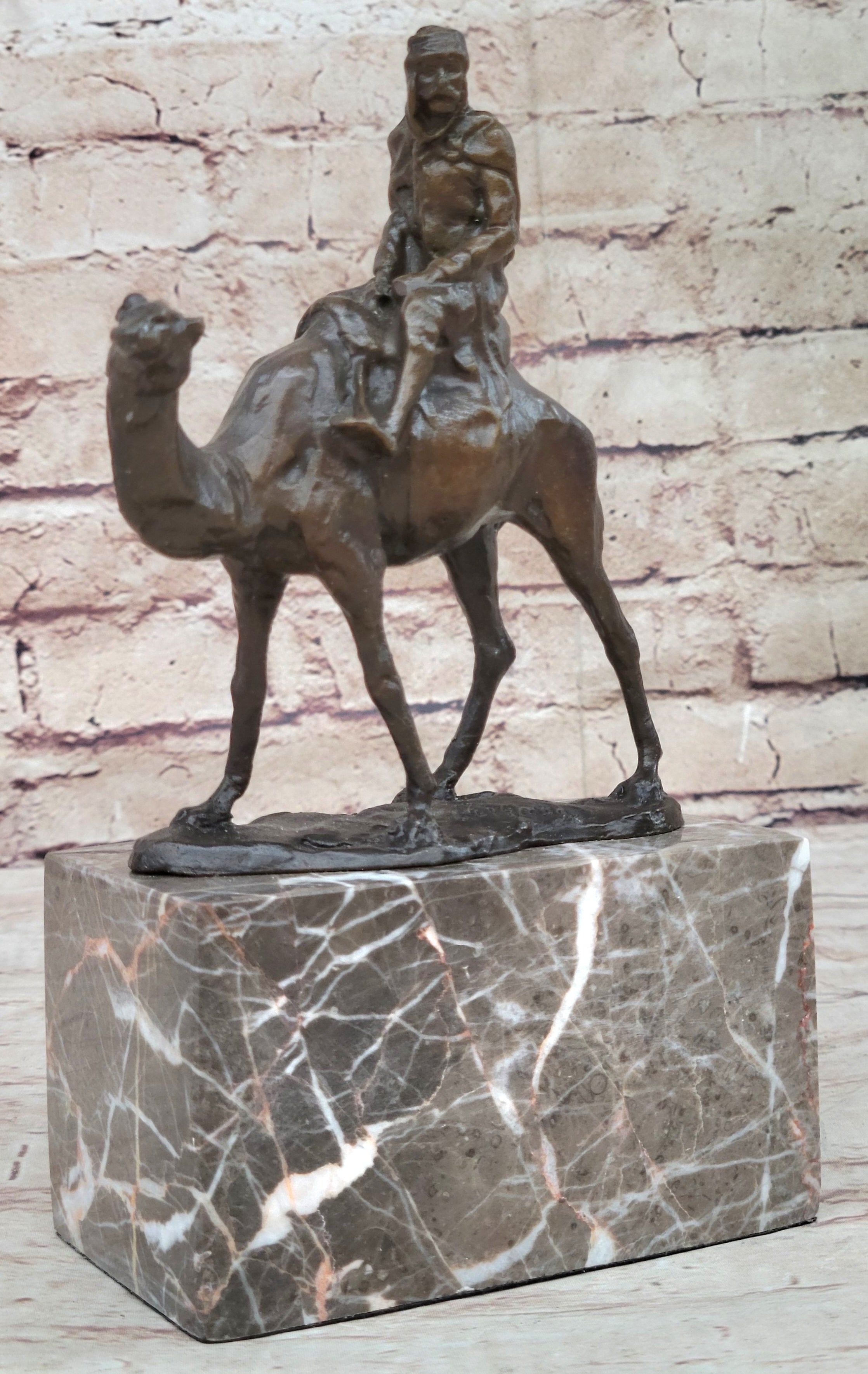 Arabian Man Riding Camel Desert Scene Decor Bronze Statue Sculpture Figure on Marble Base
