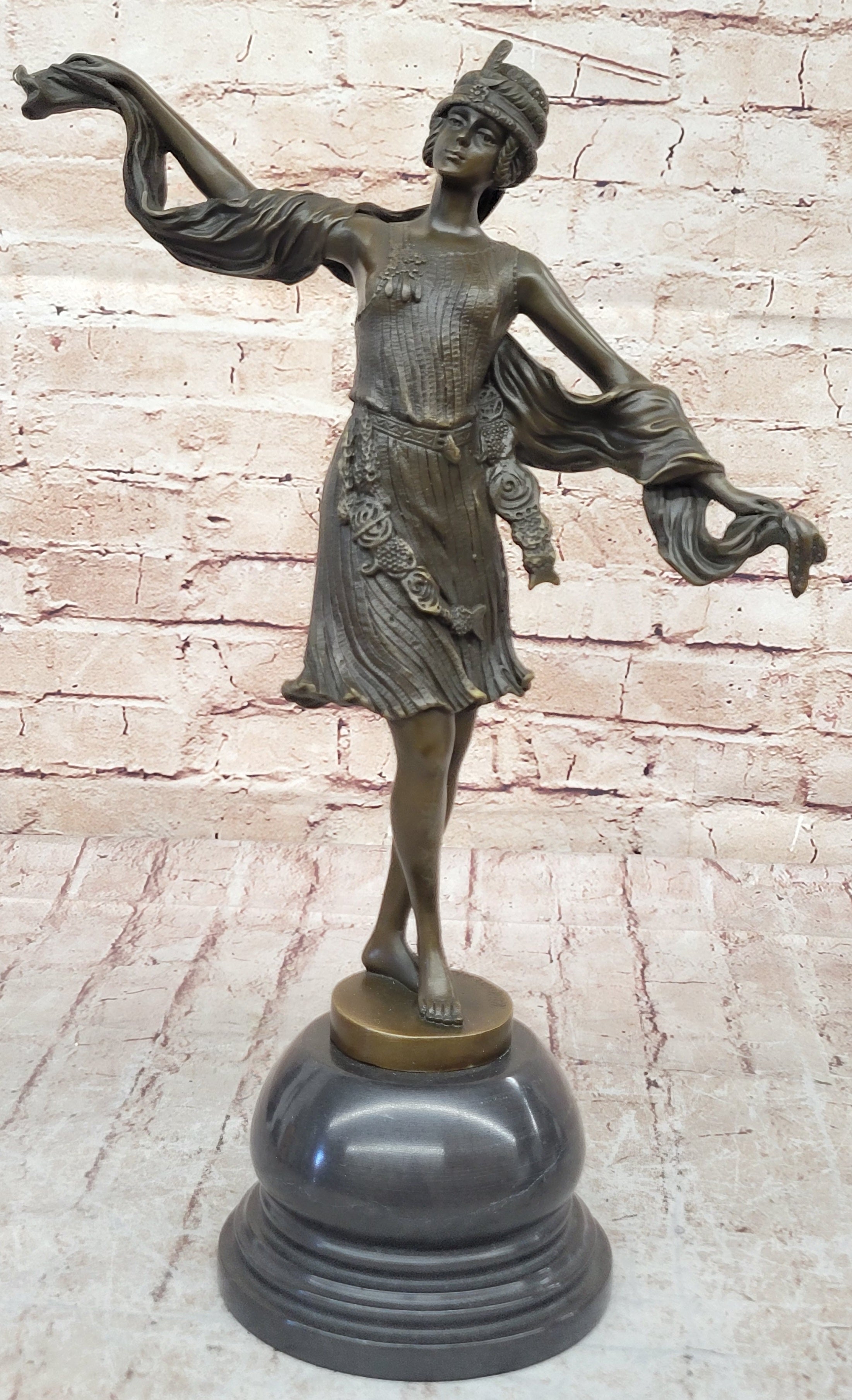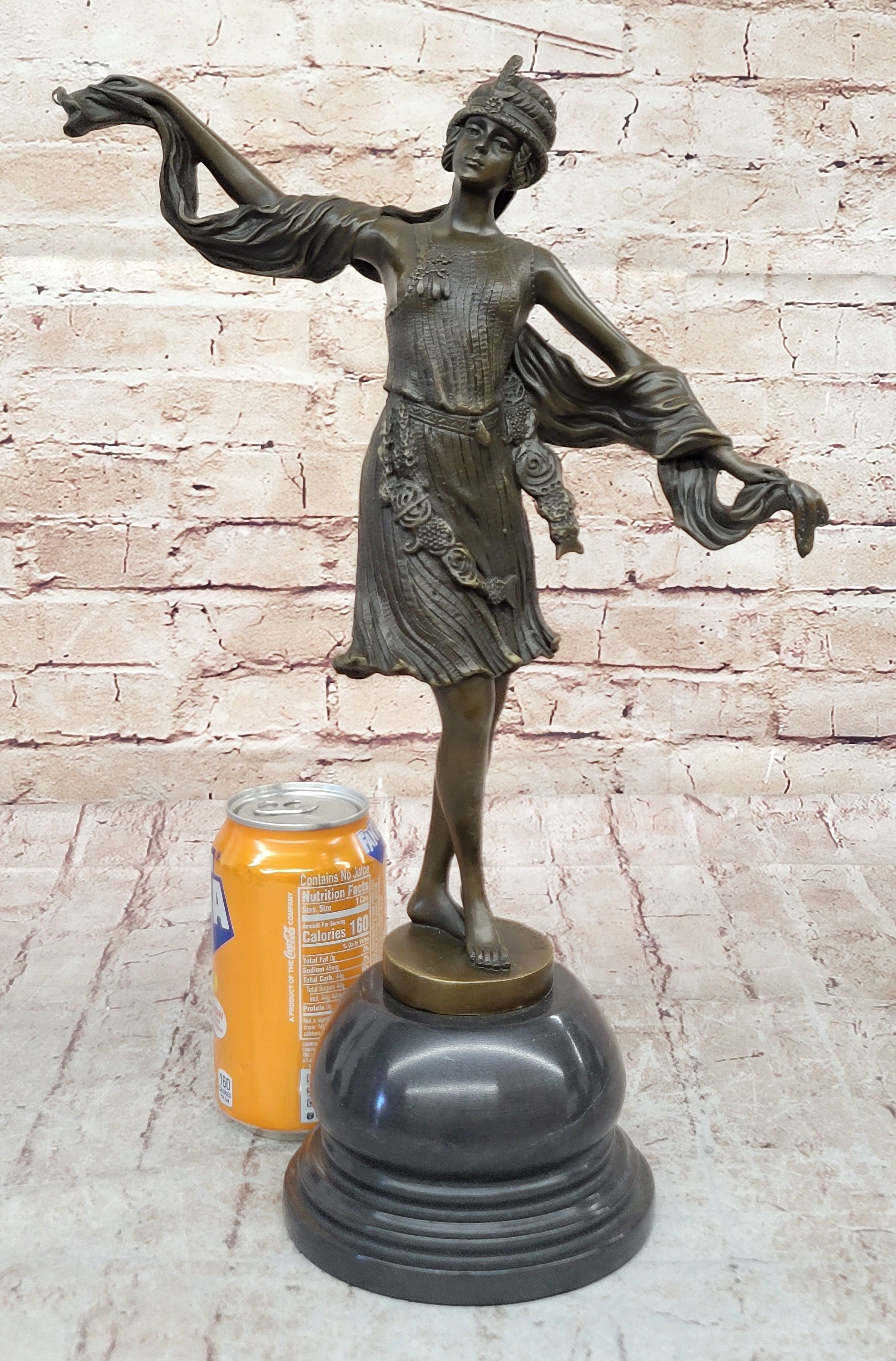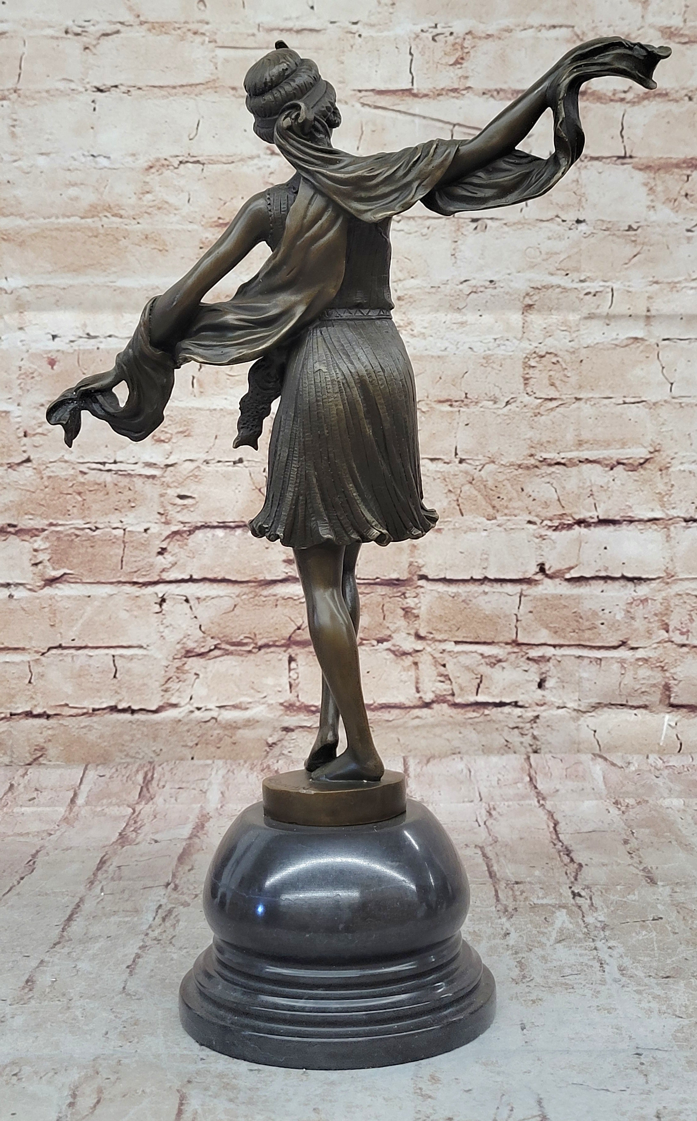 Art Deco Bronze Sculpture of a Dancing Woman in Flowing Attire by Kernalan