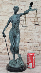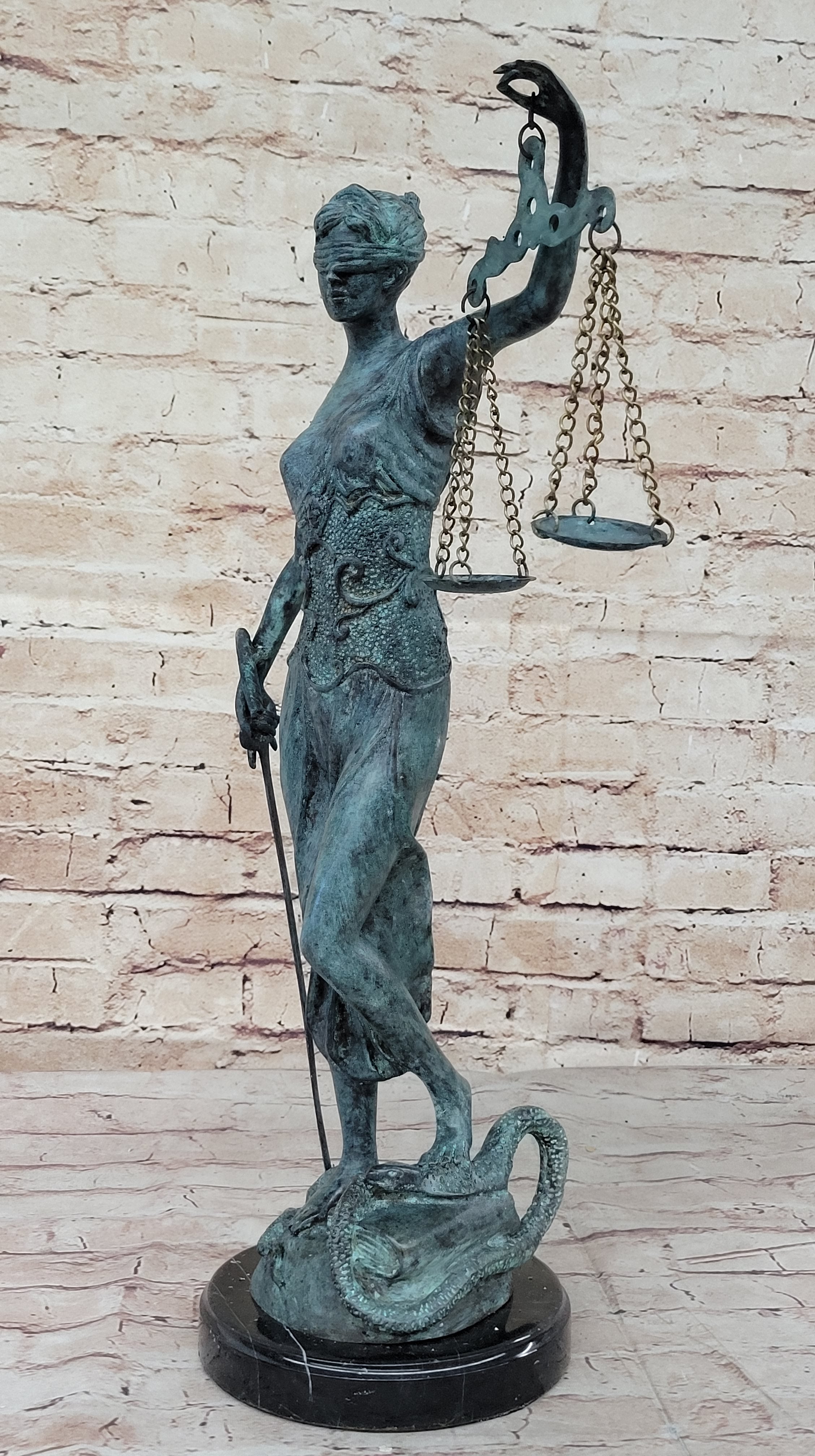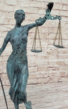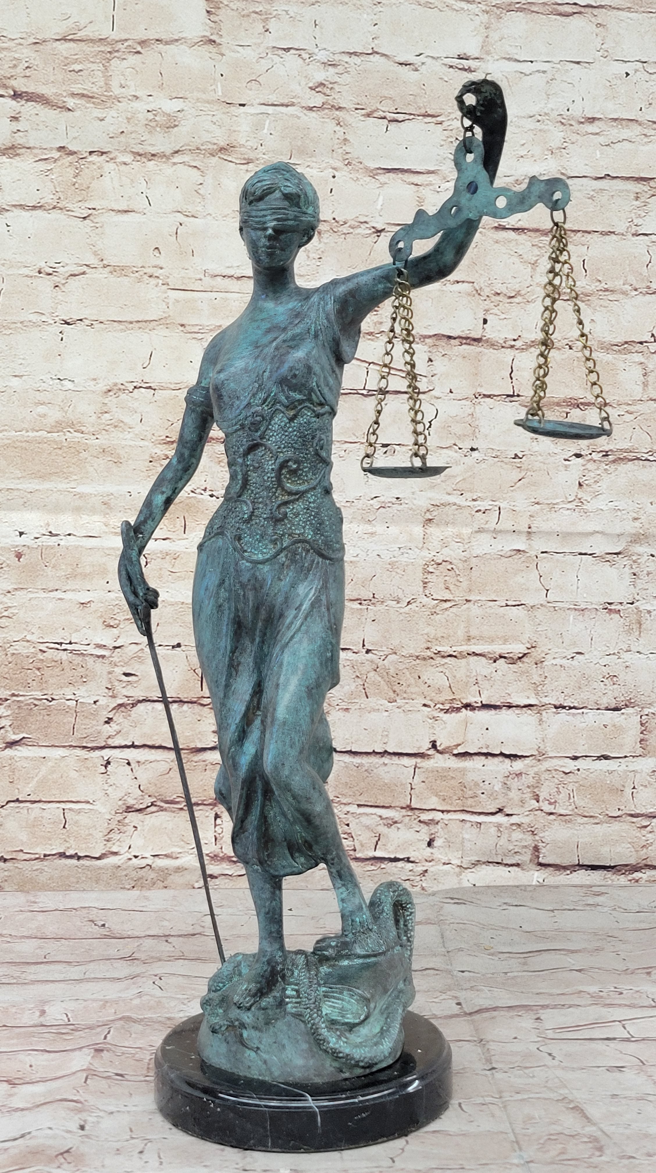 Blind Lady Justice Bronze Statue Sculpture Green Patina Oxidized Aged 19" x 12"