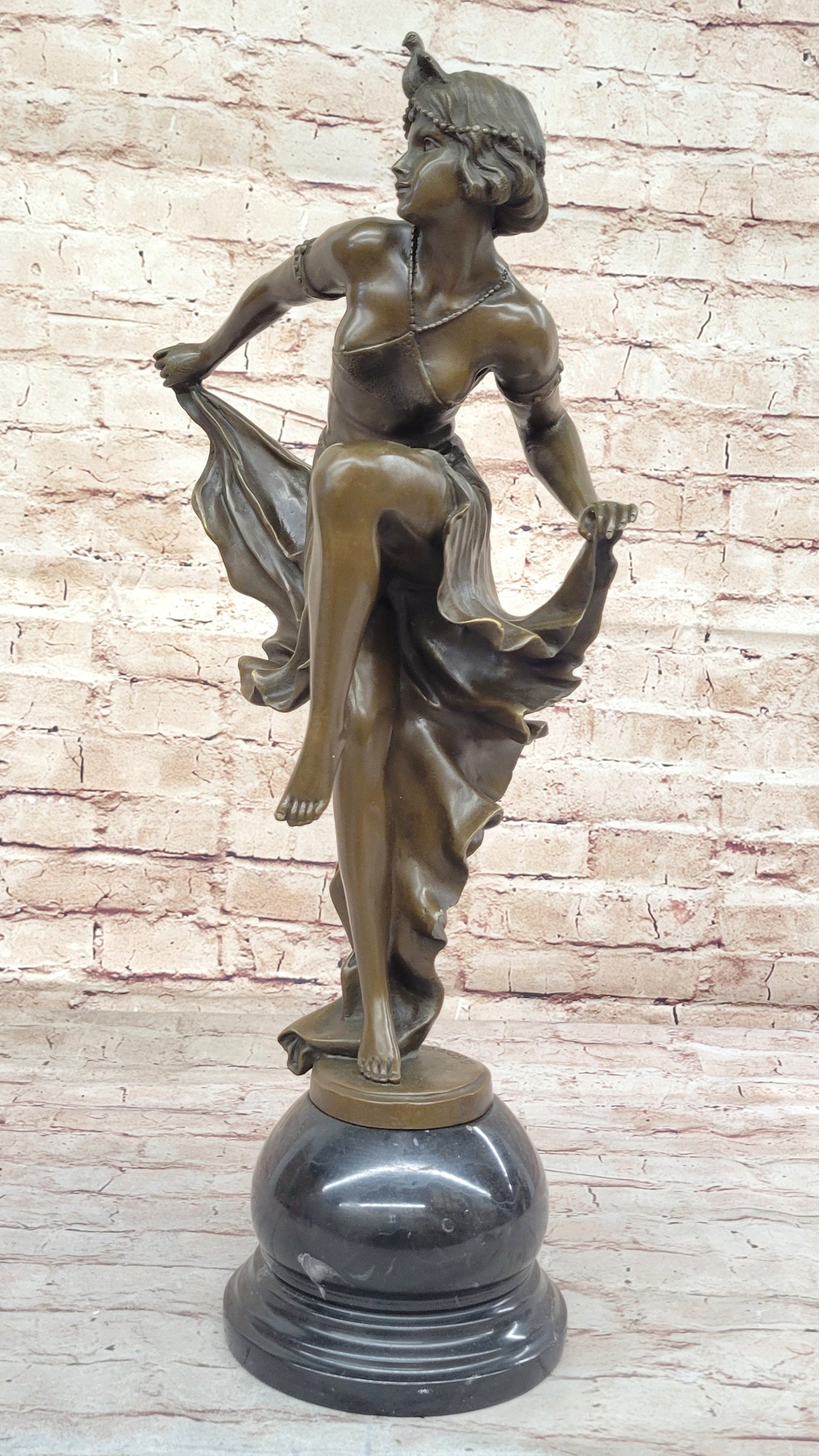 Art Deco Flapper Dancer Girl Hot Cast Bronze Sculpture Statue on Marble Base by A. Gory