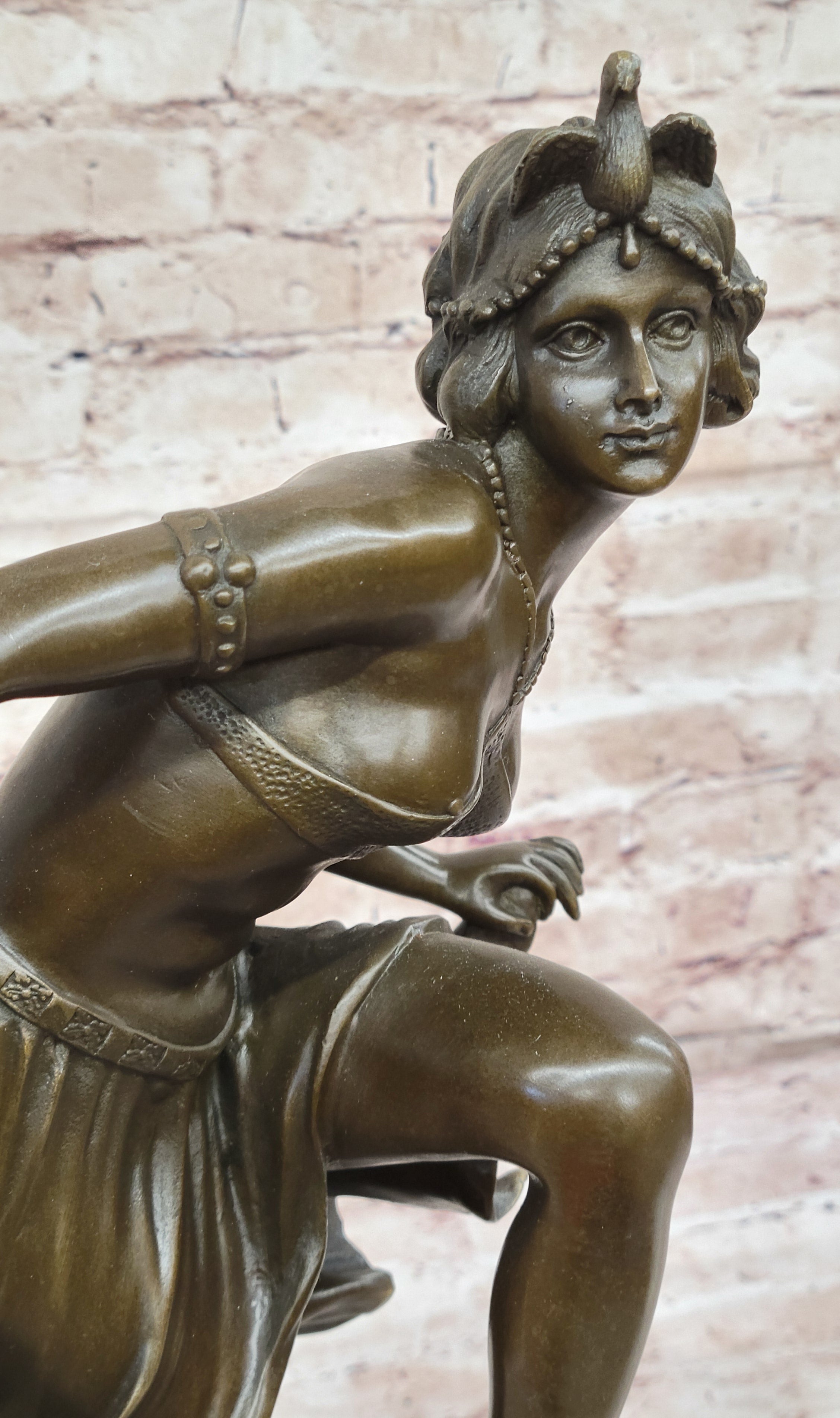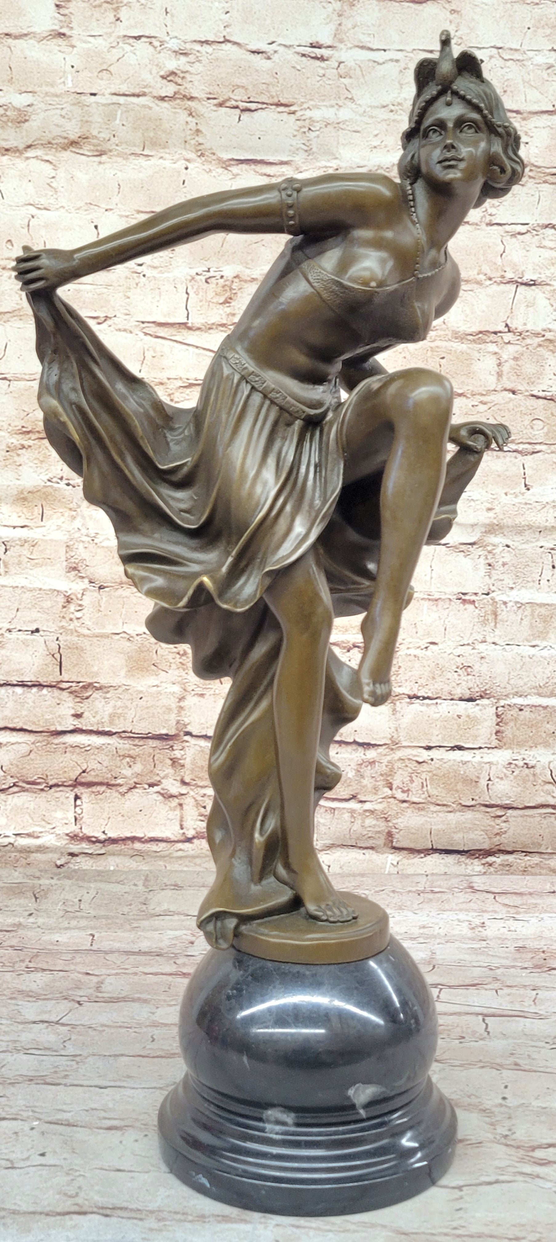The statue is based on the original work of French sculptor Gory, and is a true testament to the beauty and elegance of his designs. The Gypsy girl is shown in a dynamic pose, with her flowing dress and long hair creating a sense of movement and vitality. The bronze figure is mounted on a sturdy base, ensuring that it will remain stable and secure for years to come.