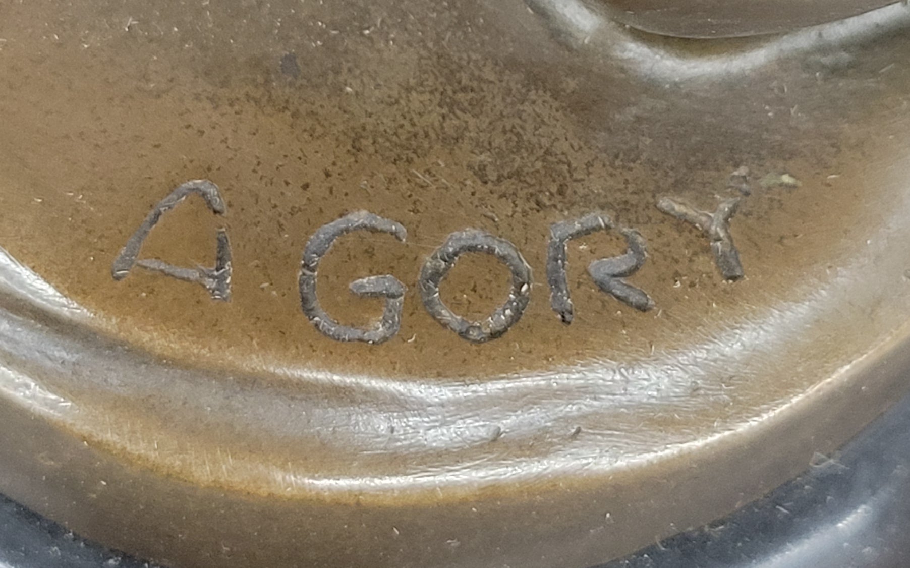 This remarkable bronze statue would make a striking addition to any collection, and is sure to impress with its exceptional quality and attention to detail. It is a must-have for lovers of Art Nouveau and fans of Gory's work alike.Bronze Dimensions with Marble Base: Height 20.5" x Width 9.5"
