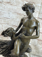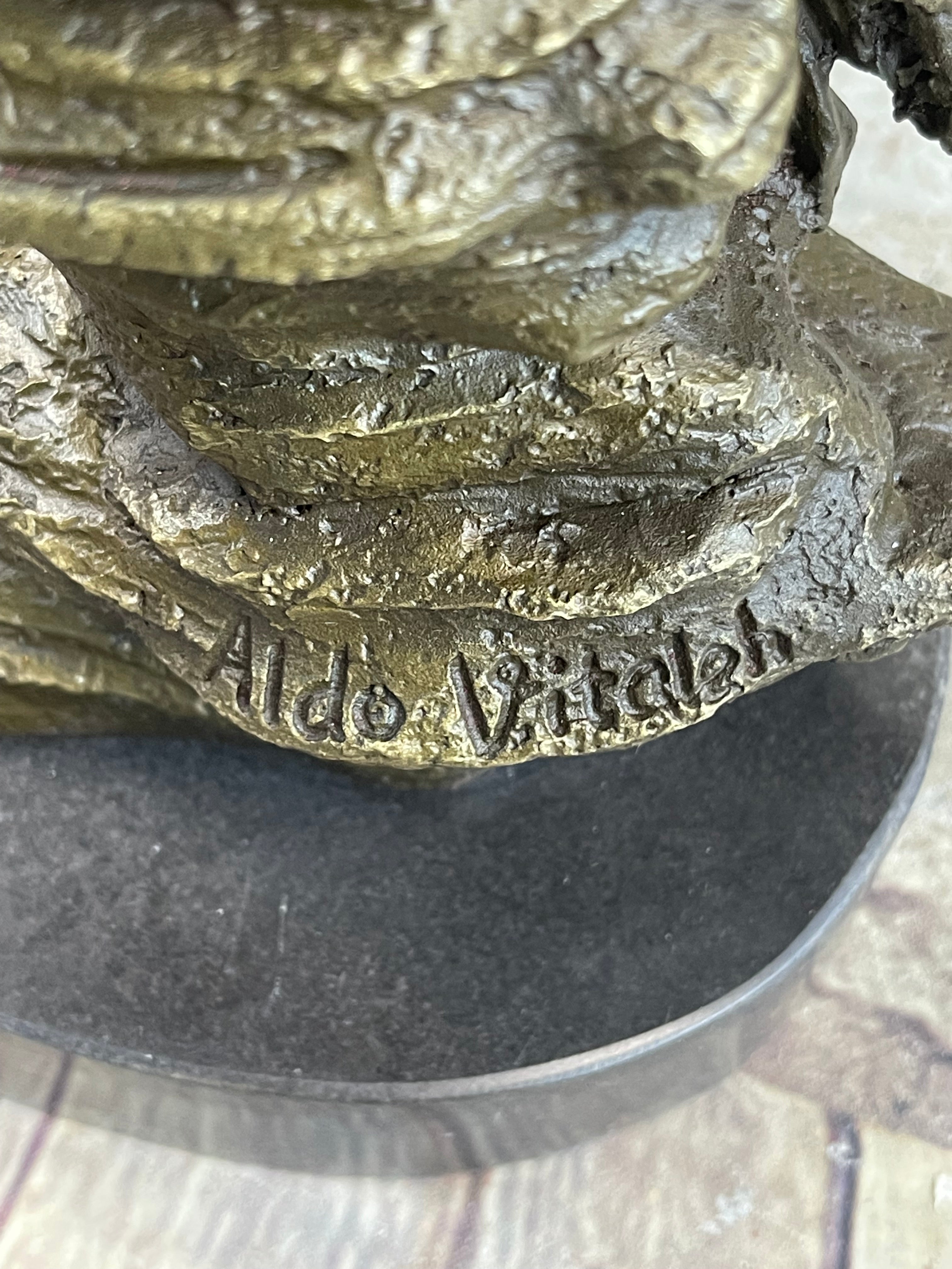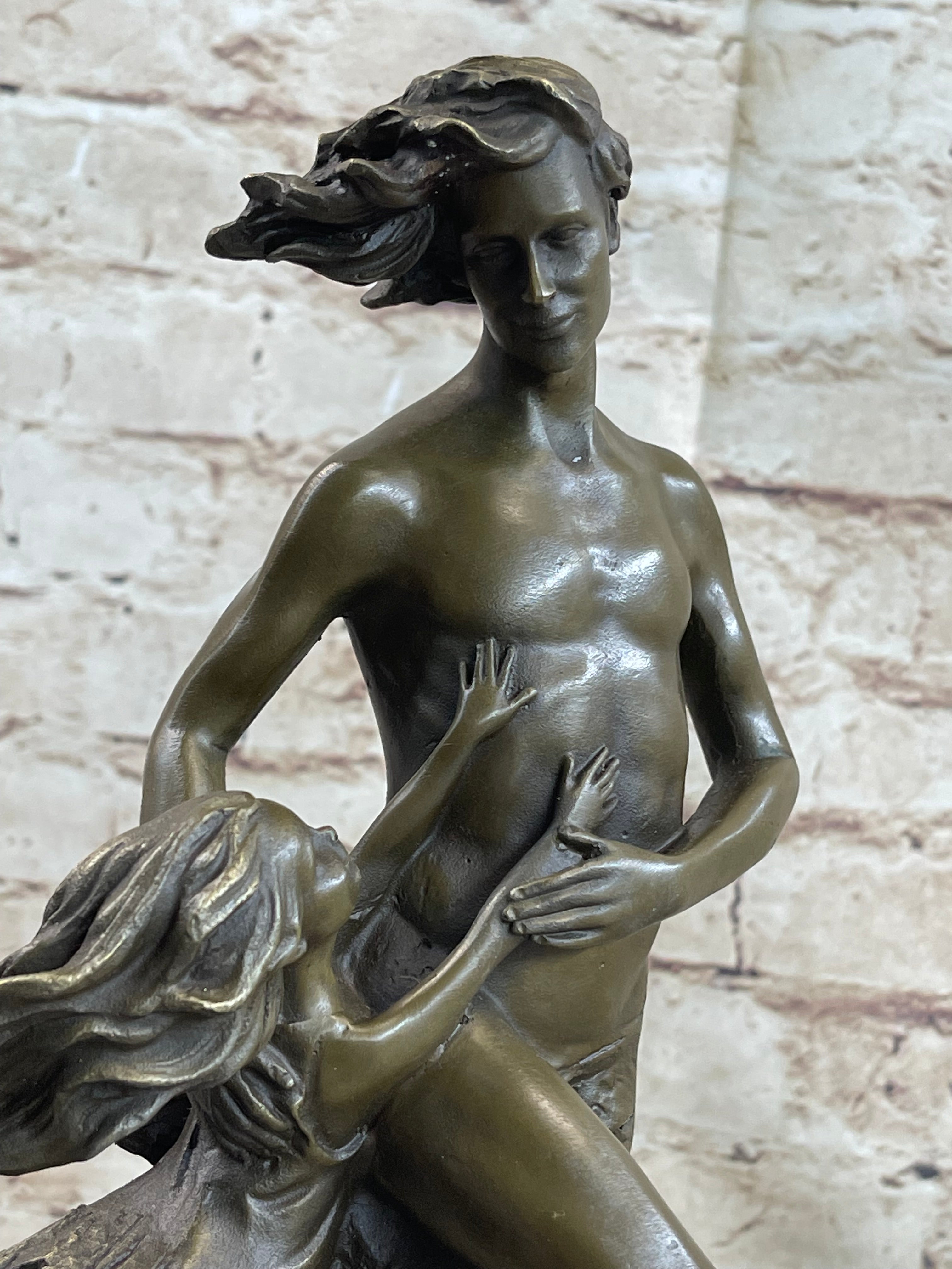 Art Deco Floating Man W/ Baby Girl by Italian Artist Aldo Vitaleh Bronze Figure