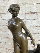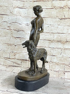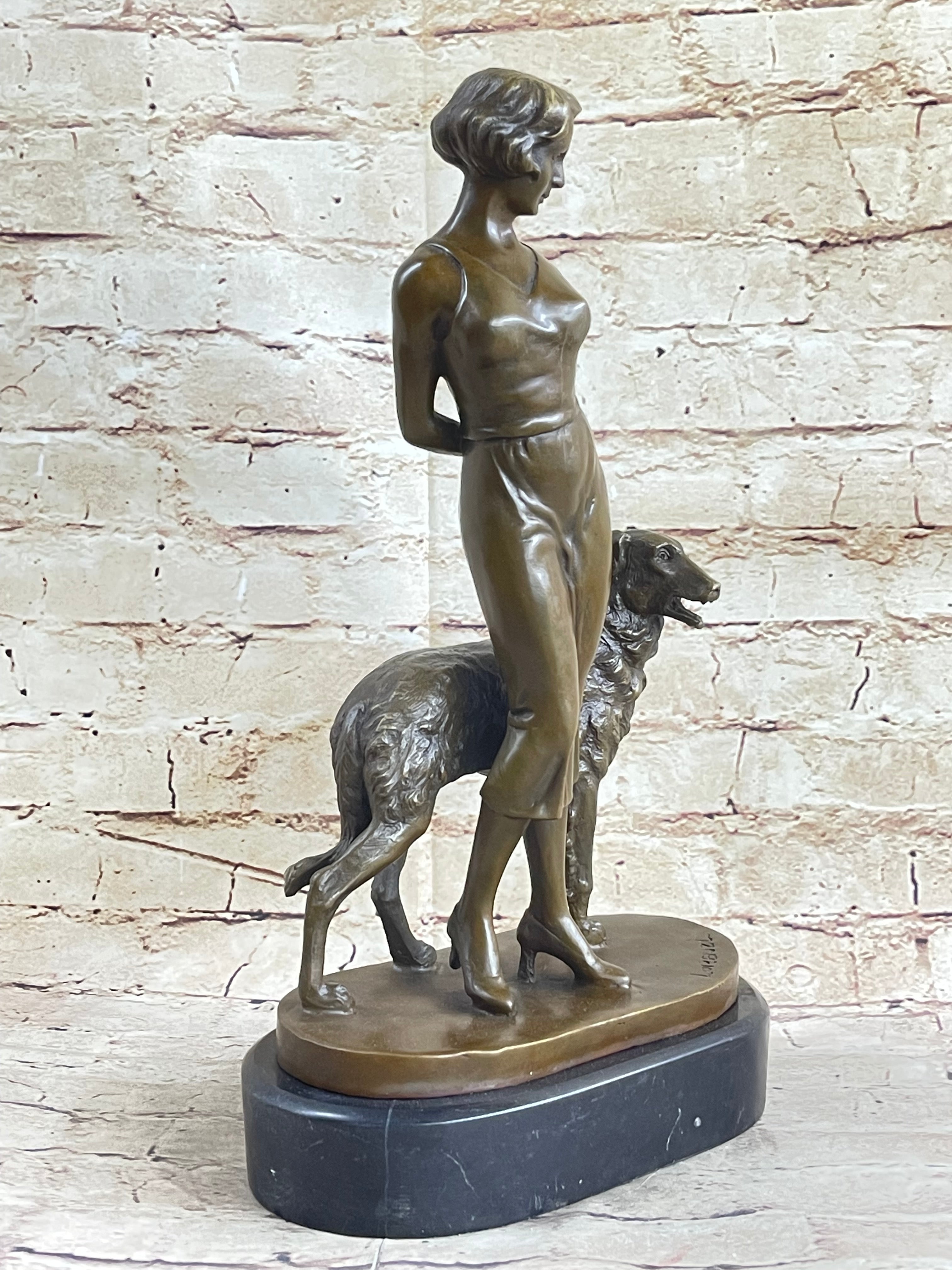 Art Deco Girl with Dog Bronze Statue Sculpture Figure Lorenzl 14" x 8"