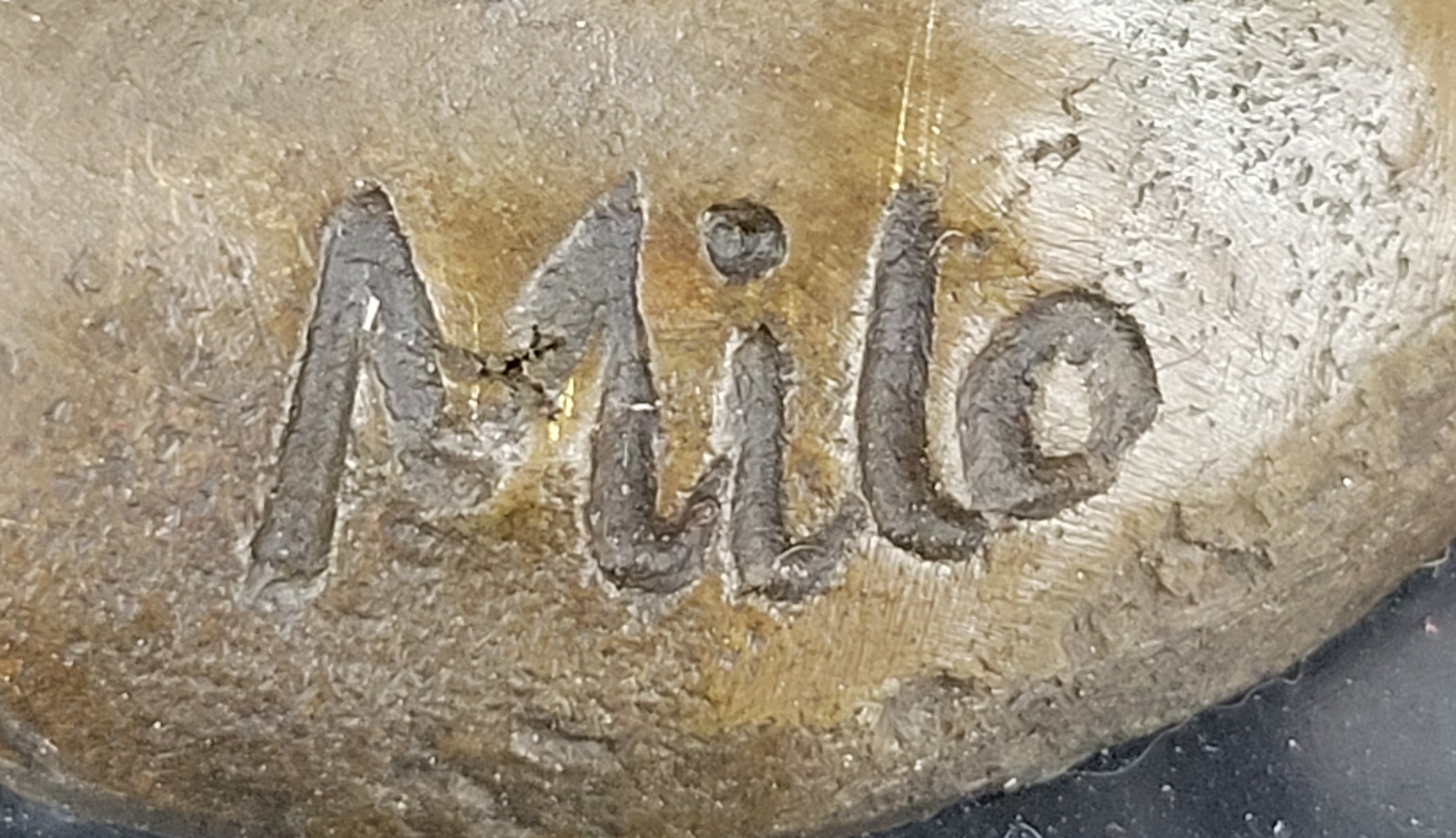 This sculpture is an exquisite work of art, signed by the renowned artist Milo. Its timeless beauty and enduring craftsmanship make it a remarkable addition to any art collection or space. With its expressive depiction of a ballerina's artistry and precision, this bronze sculpture invites you to marvel at the beauty and dedication of the performing arts.Bronze Dimensions with Marble Base: Height 11" X Width 4.5"