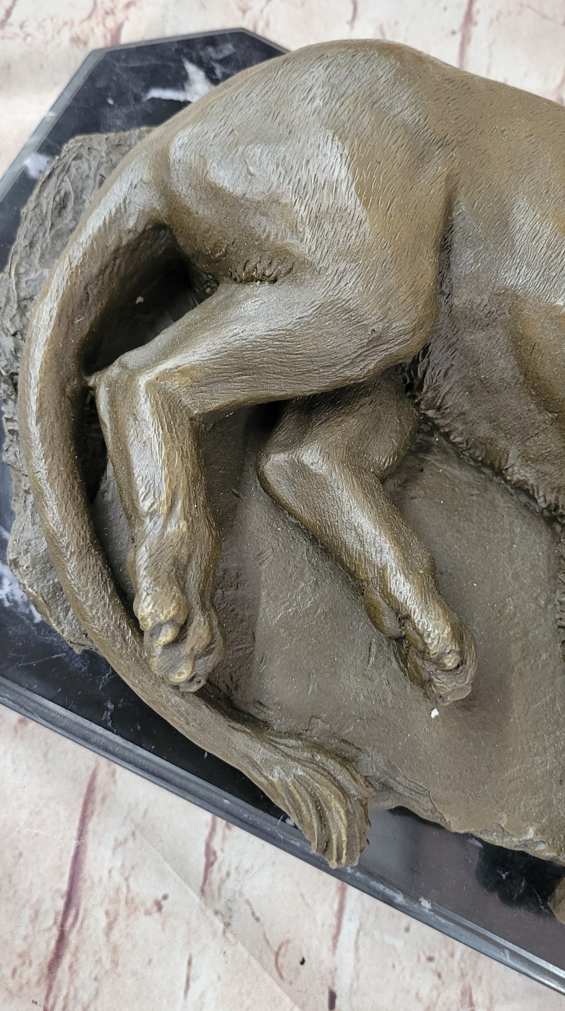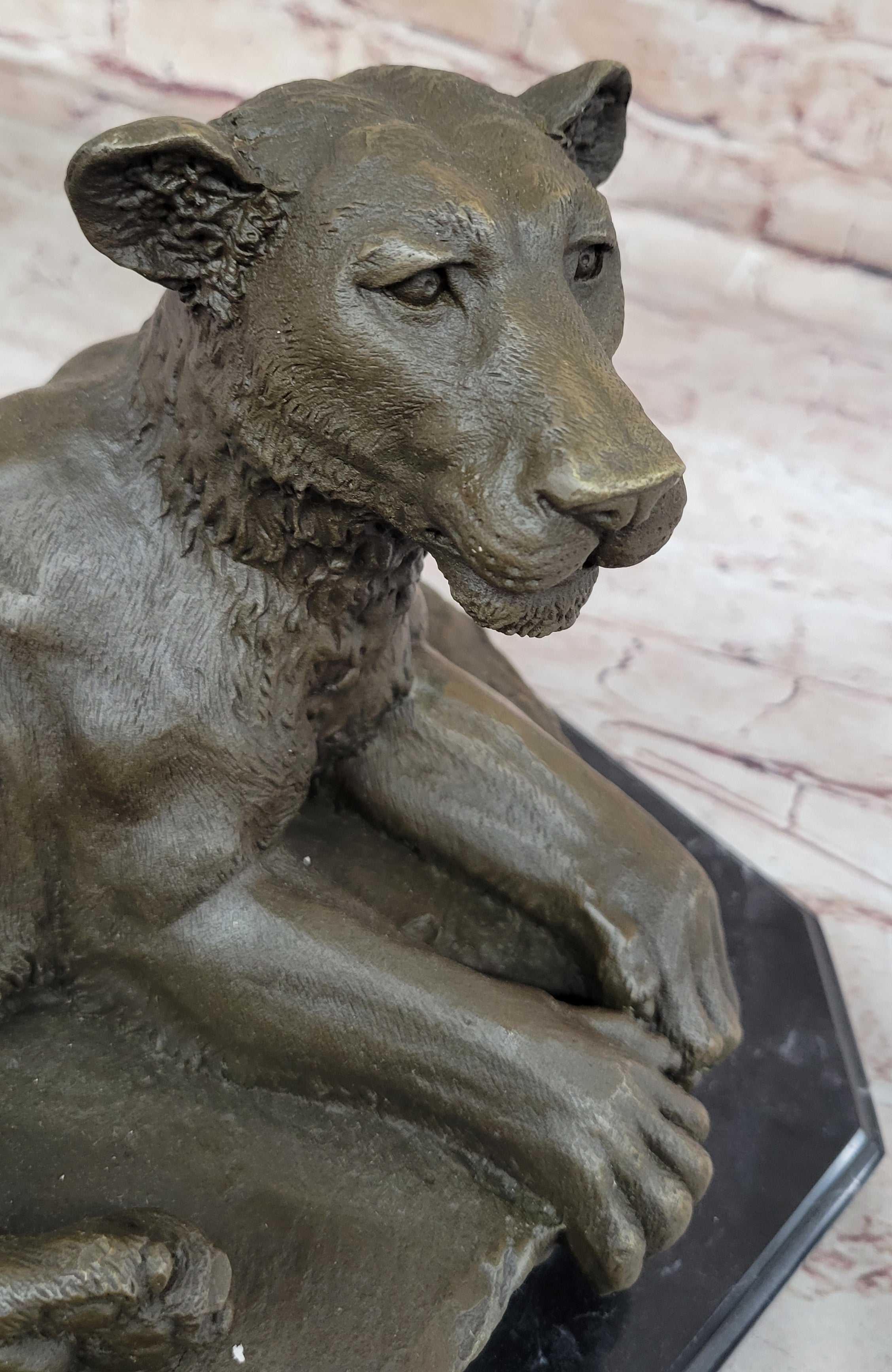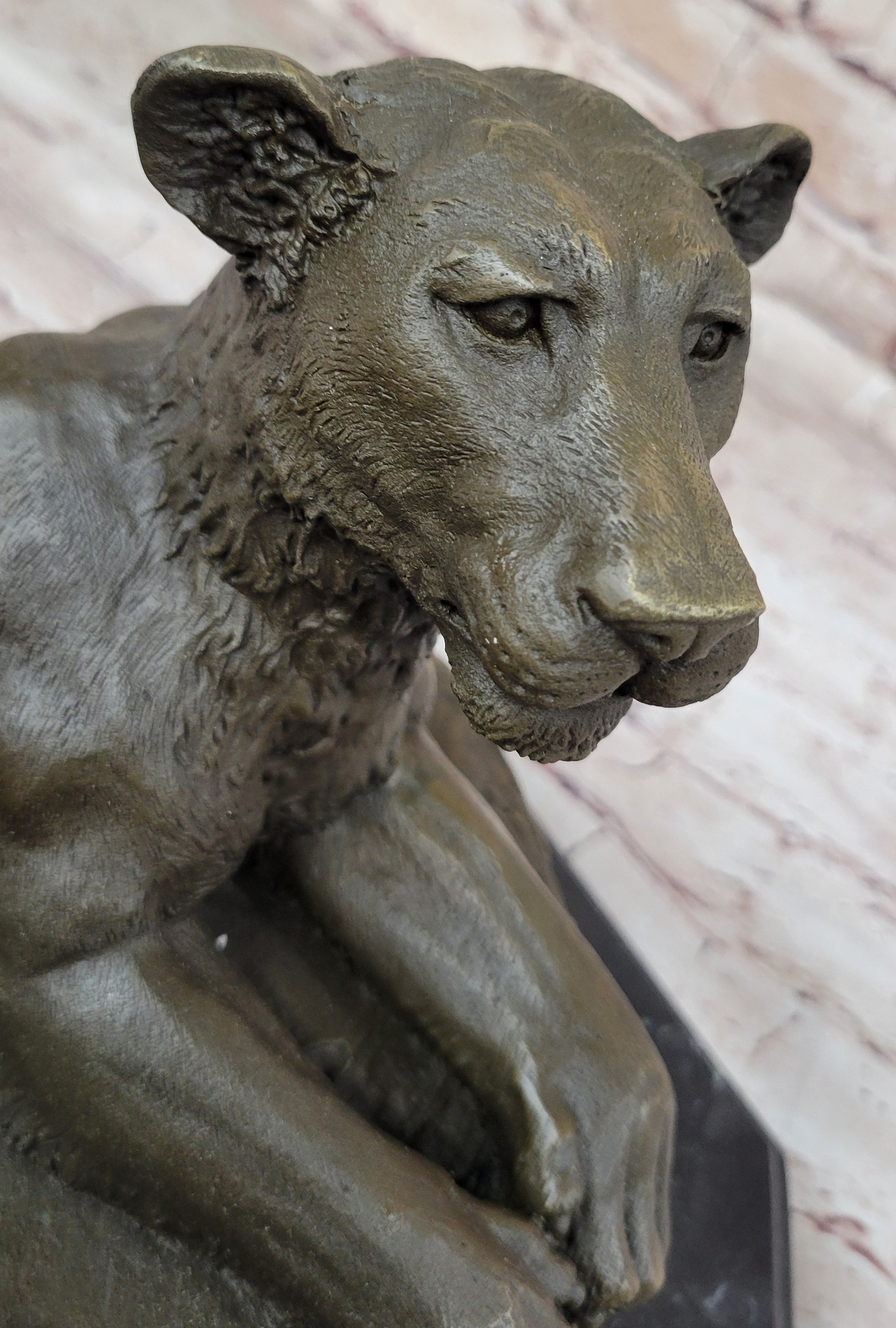 Art Deco Large Female African Wildlife Lion Bronze Sculpture Marble Statue Decor