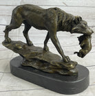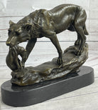 Wolf Carrying Cub Bronze Metal Statue Sculpture Marble Base 9" x 11"