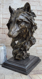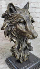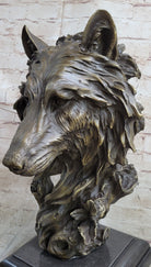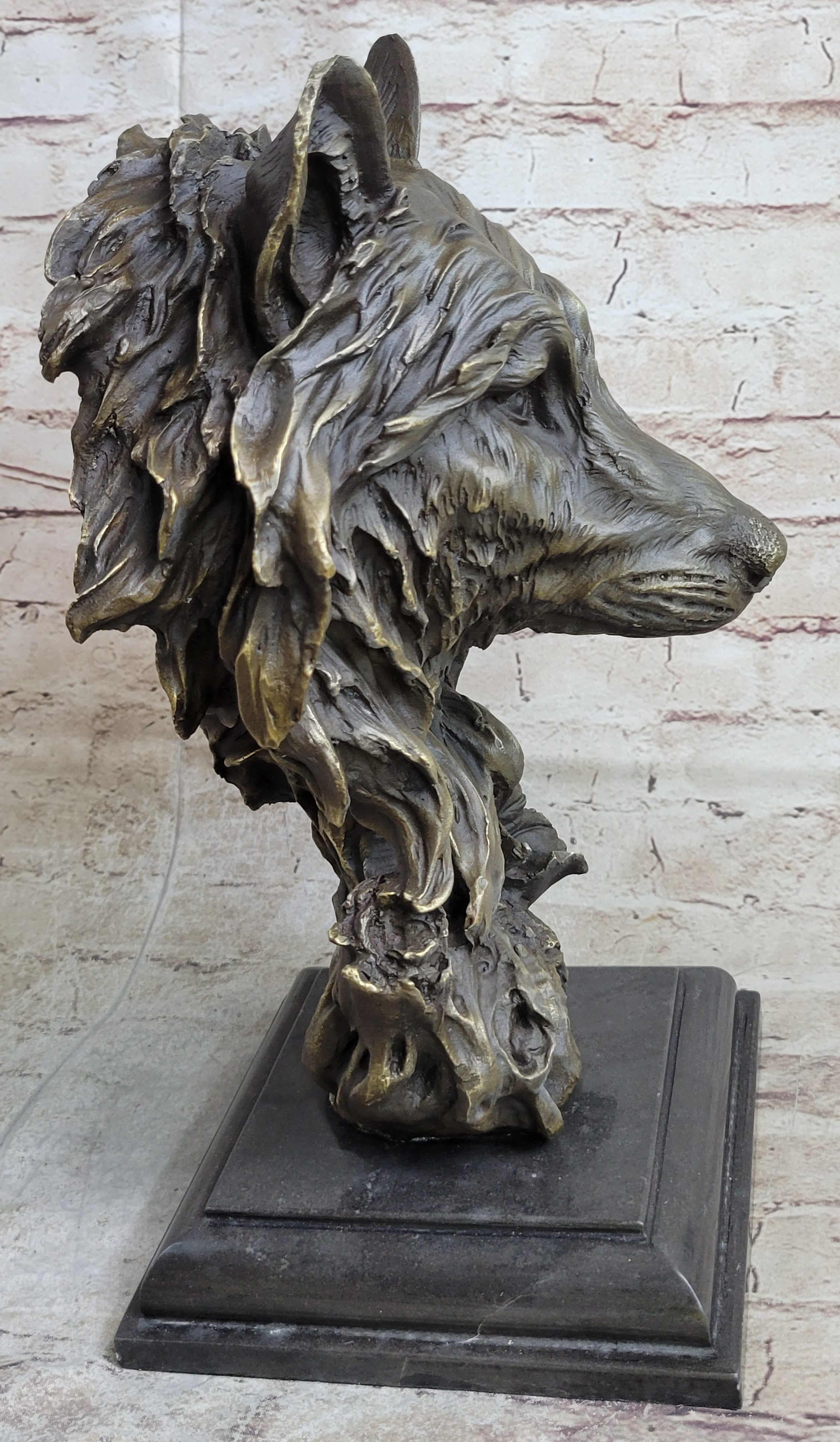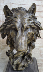 Art Deco Marble Bronze Sculpture Statue Wolf Head Bust Wild Life Garden Figurine