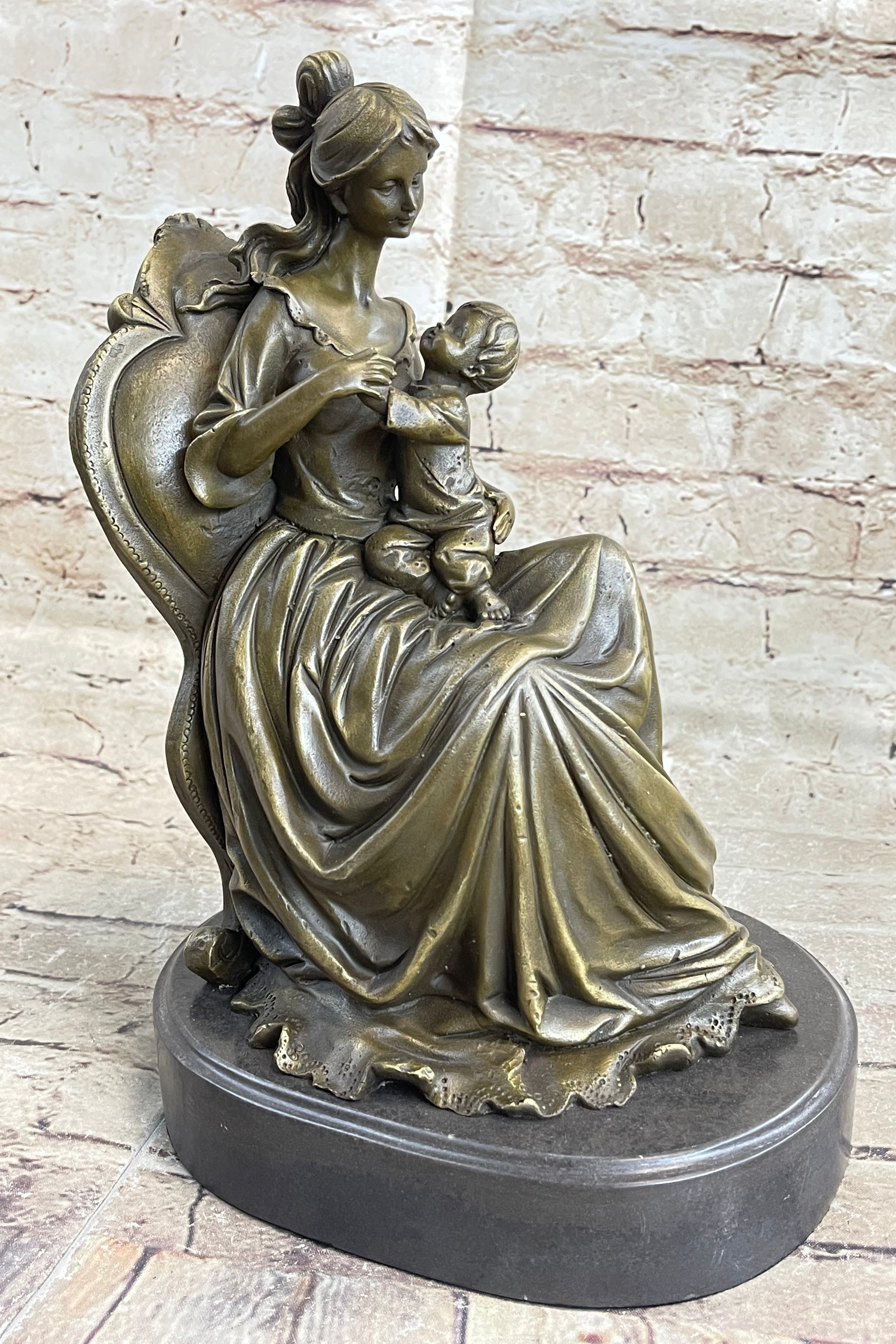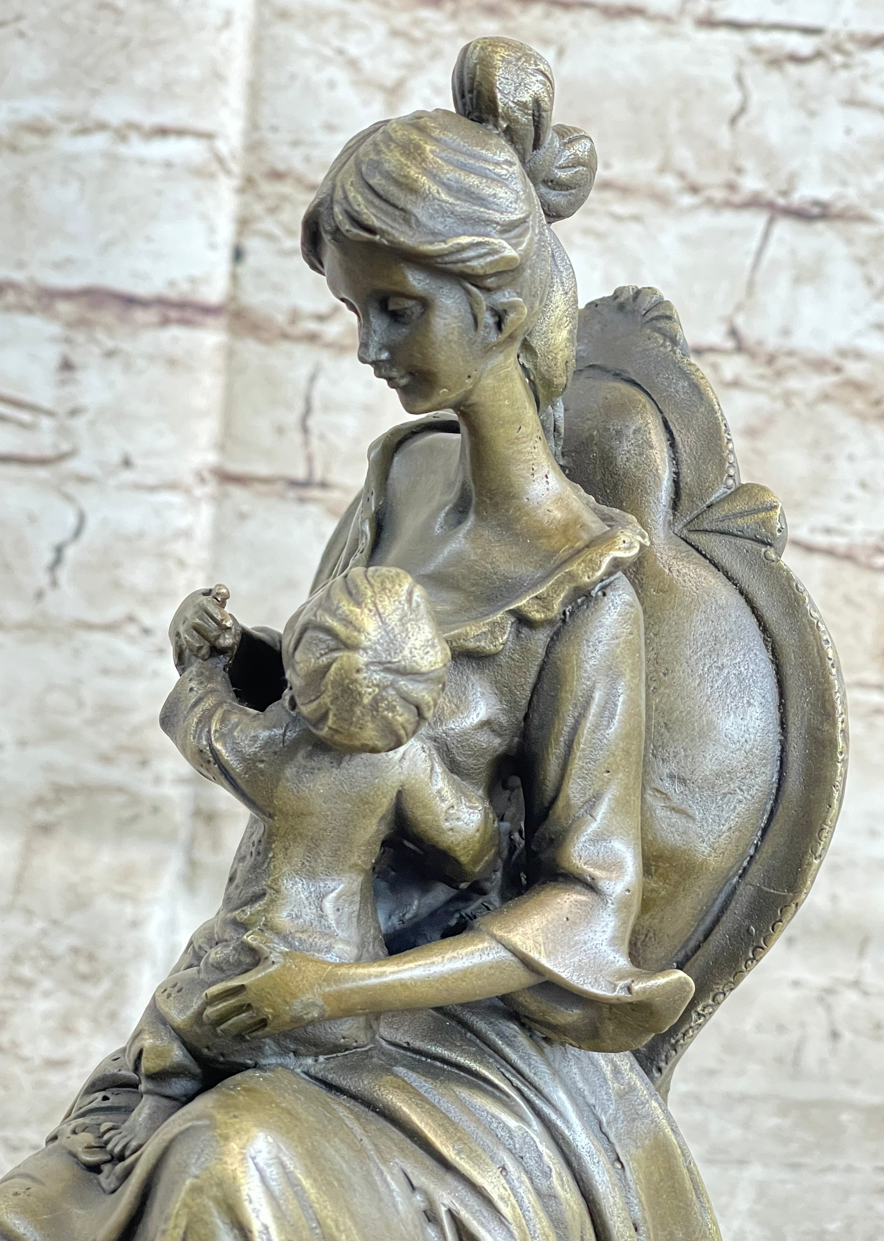 Art Deco Nouveau Mother and Baby Classic Original Bronze Artwork by Jean Patoue