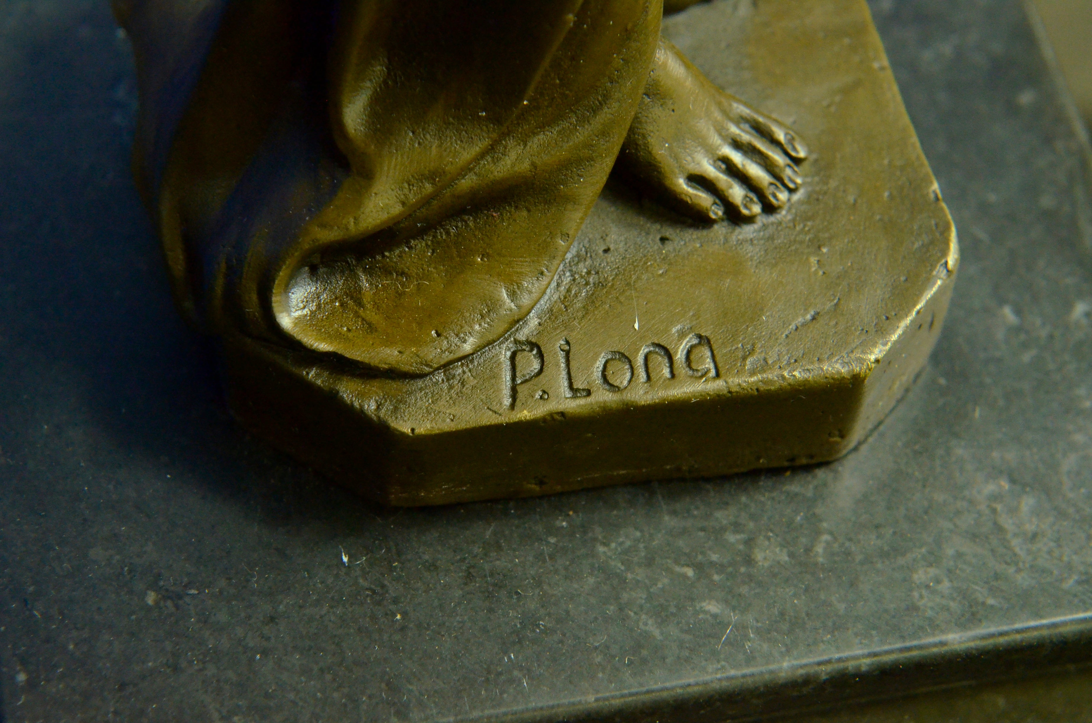 The signature of the artist, P. Long, graces this sculpture, attesting to its quality and craftsmanship. This sculpture invites admiration for the human form and the boldness to embrace one's own body. Perfect for those who appreciate the celebration of beauty and self-assurance, this artwork is a statement of empowerment and aesthetic appreciation.Bronze Dimensions with Marble Base: Height 14.5" X Width 5"