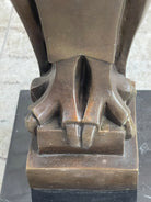Handcrafted with precision and care, this sculpture is made using the revered "Lost Wax Method." The use of 100% bronze ensures its durability and timeless beauty. The two-toned brown patina adds depth and character to the piece, while the solid black marble base provides a stable and elegant foundation.
