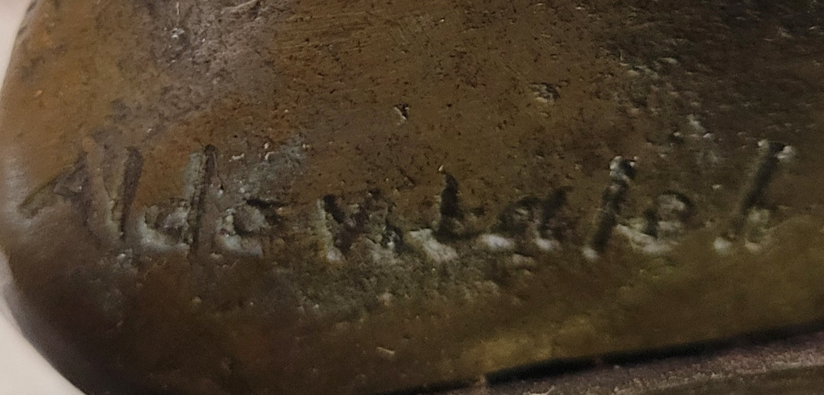 Finished with a rich brown patina that enhances its depth and character, the Gemini Twins sculpture is not only a beautiful work of art but also a meaningful representation of the zodiac's dual sign. Mounted on a solid black marble base, the piece is both stable and elegant, making it a striking addition to any collection. The artist Aldo Vitaleh's signature further authenticates the sculpture, marking it as a unique and valuable work of art. This sculpture is a perfect representation of the dynamic and multifaceted nature of those born under the sign of Gemini.Bronze Dimensions with Marble Base: Height 11" X Width 10"