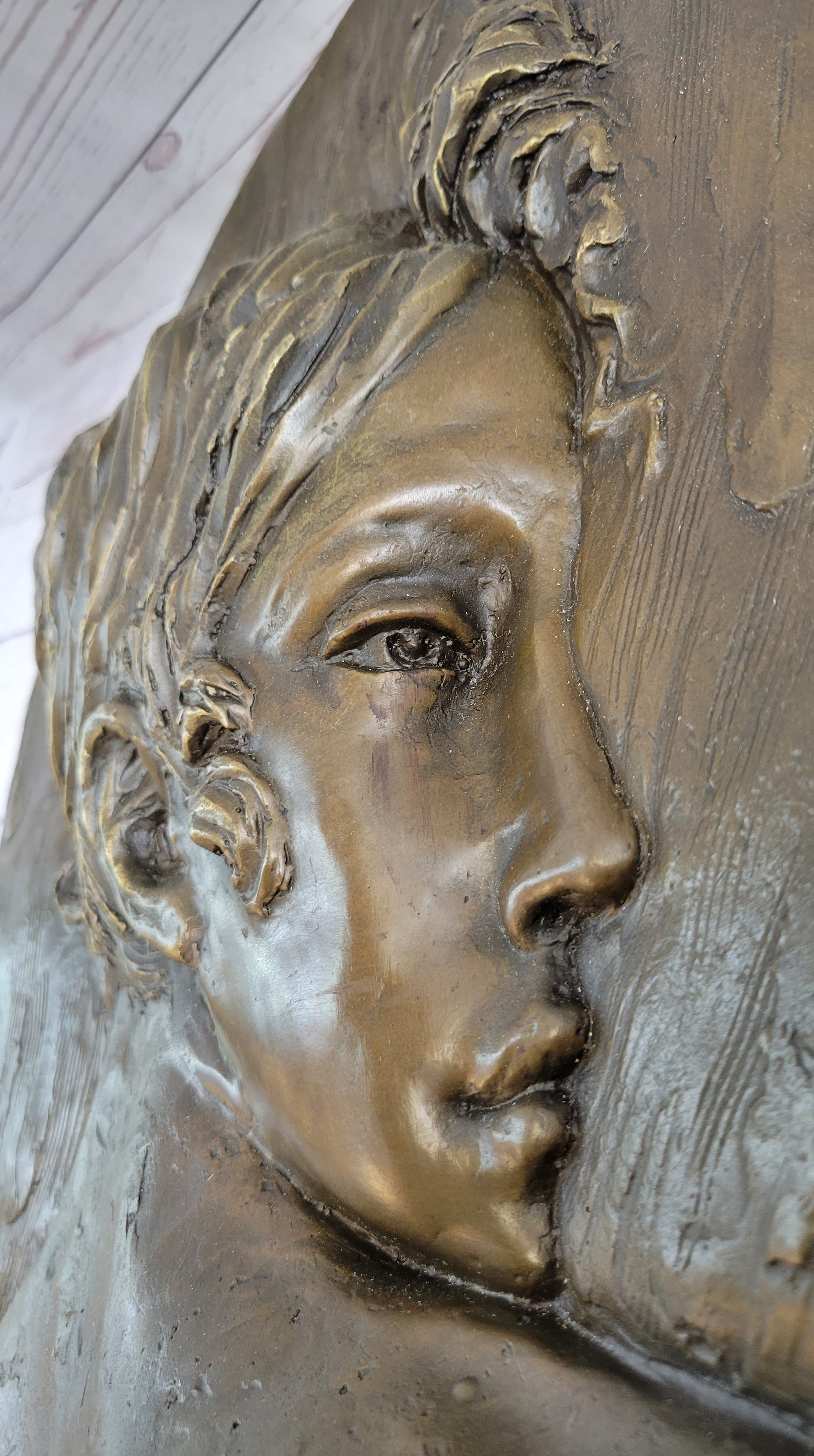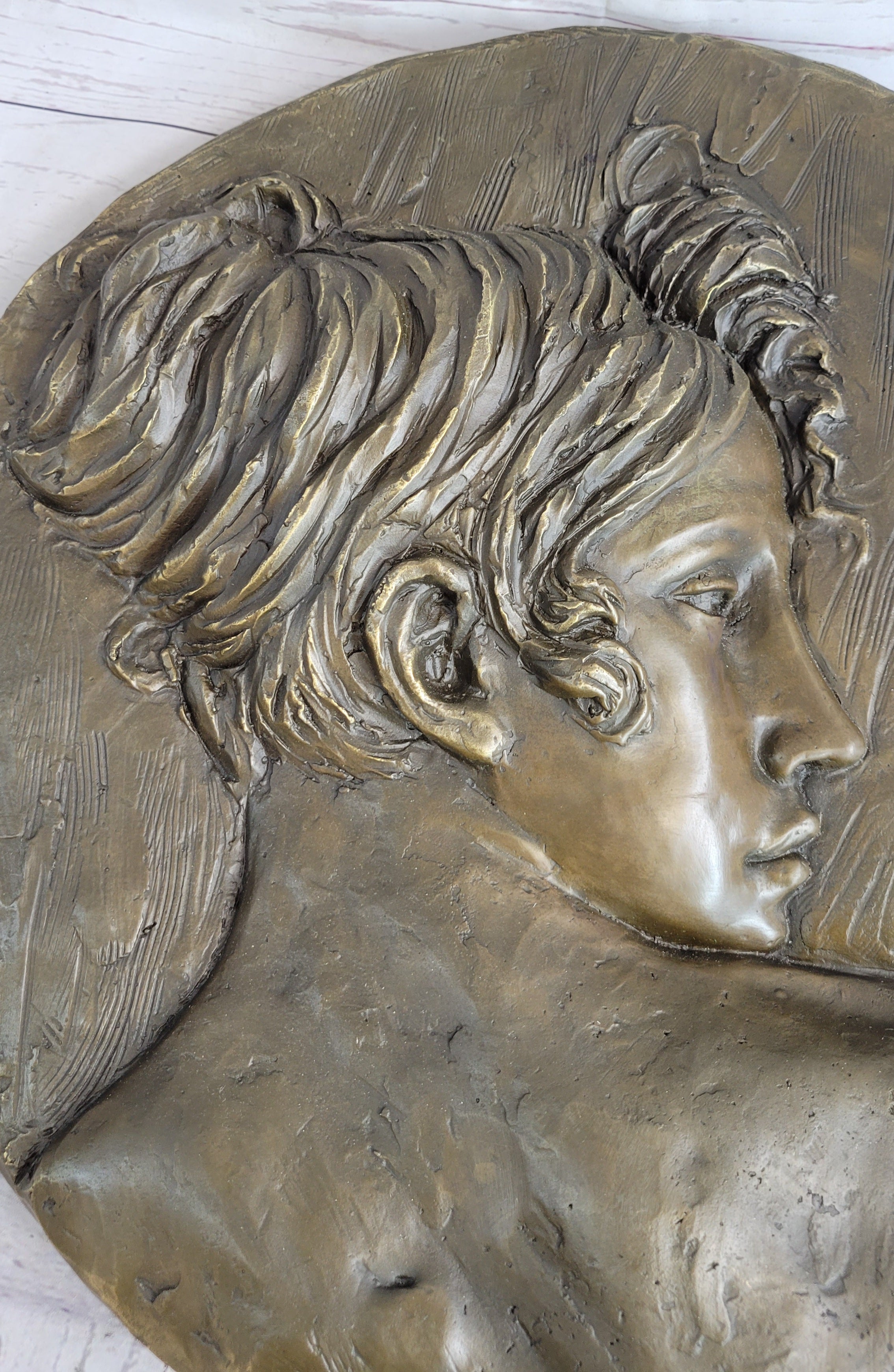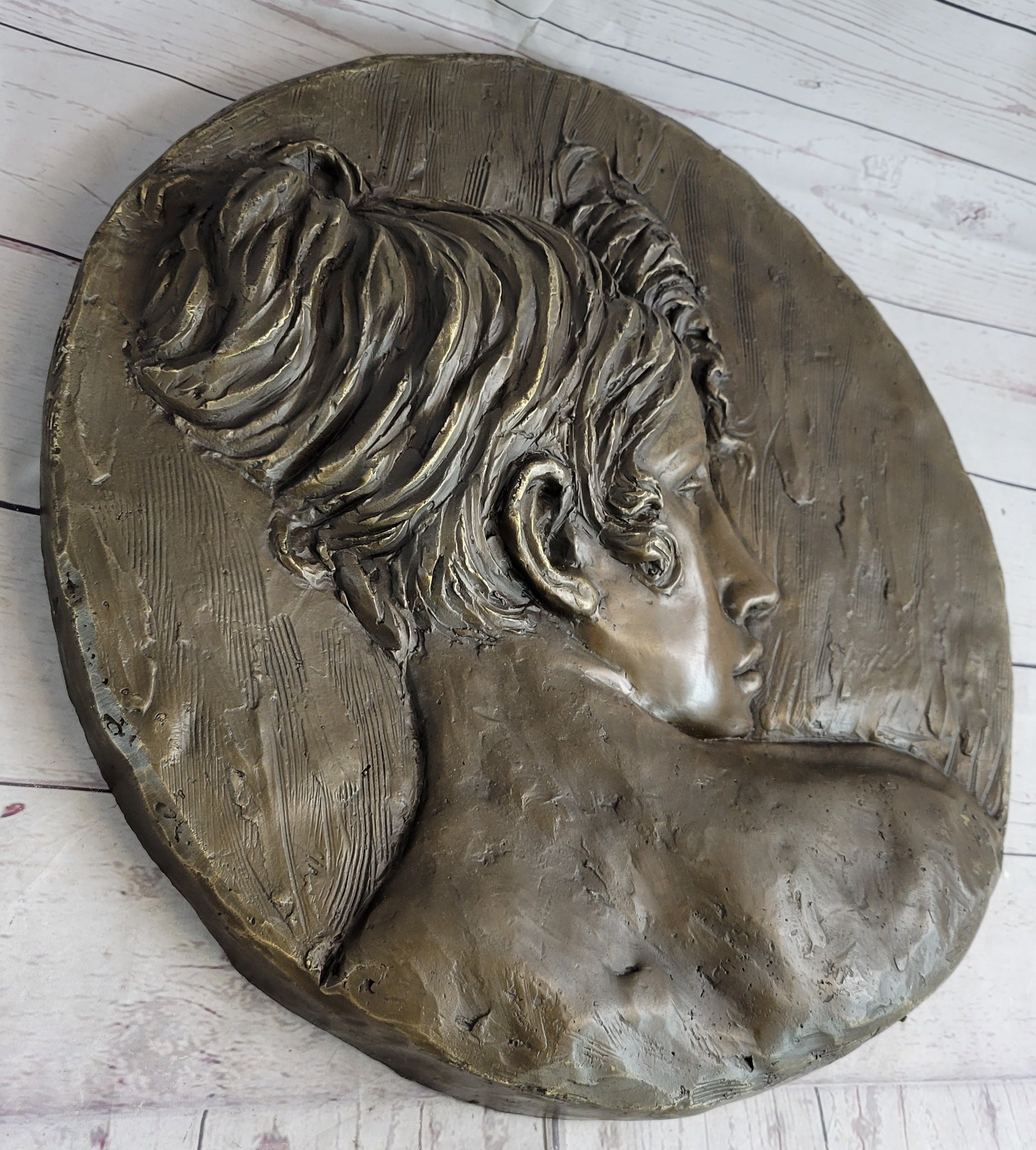 Art Nouveau Wall Hanging Bronze Plaque of a Woman Female Profile 17" x 7"