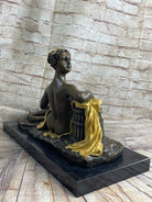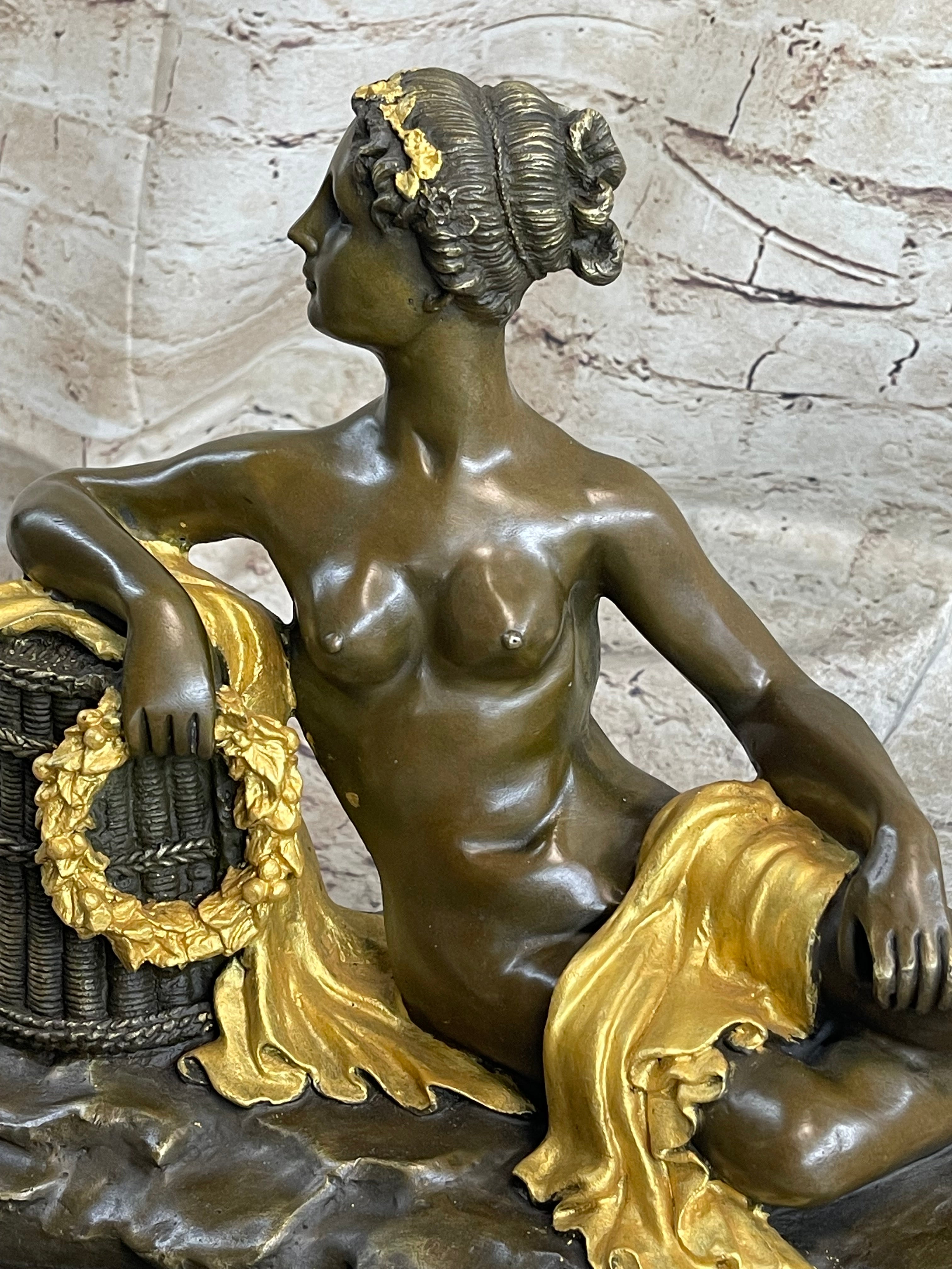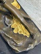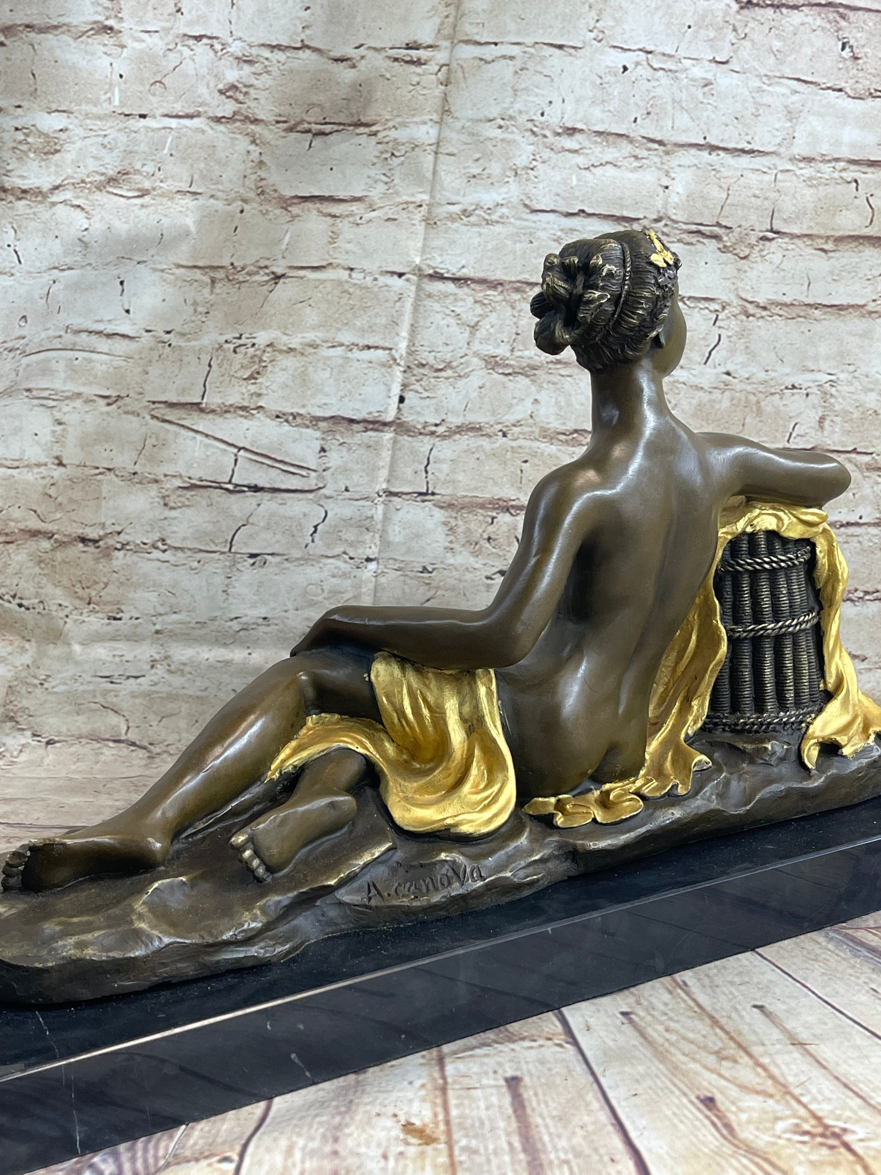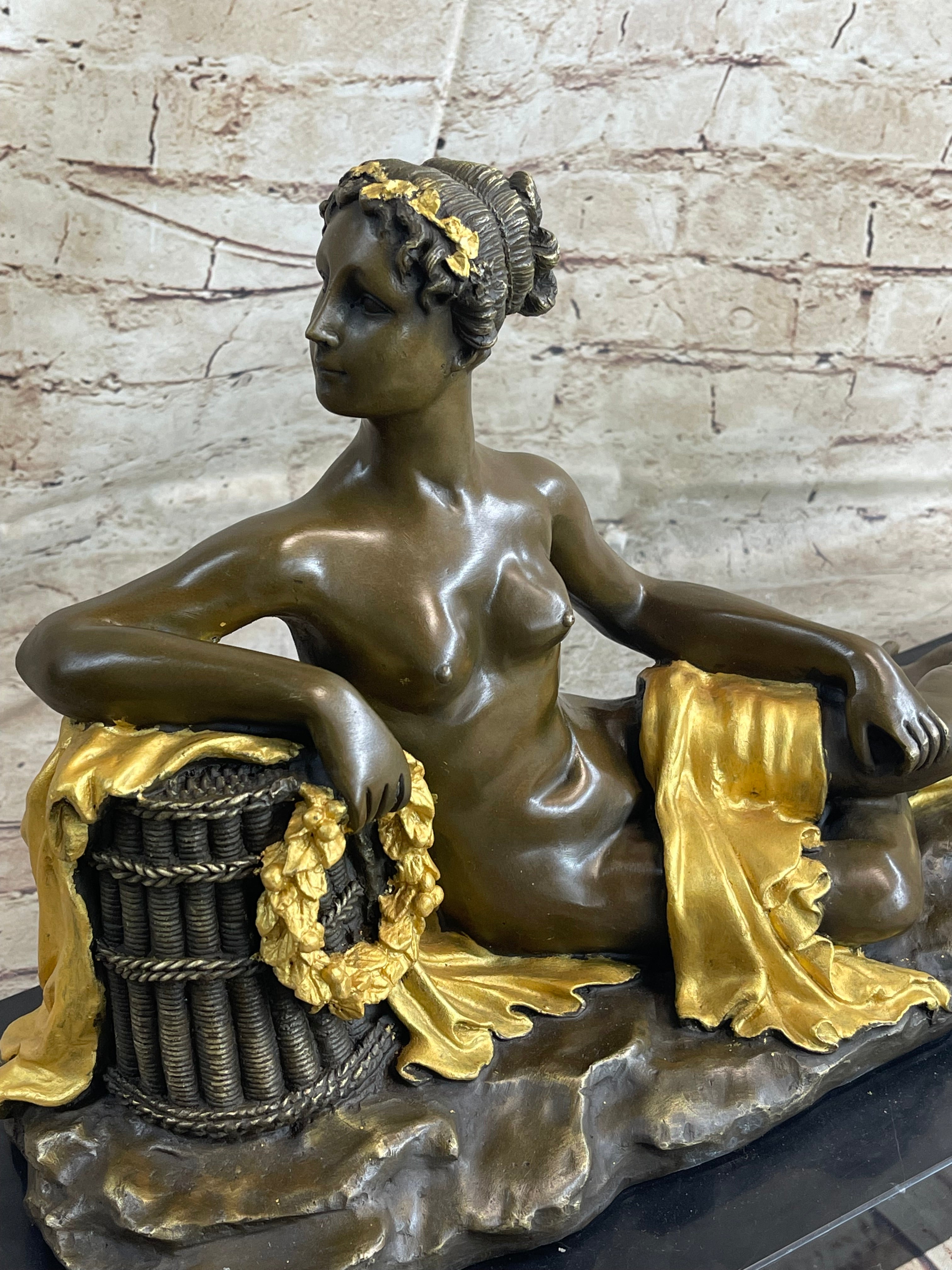 Nude Female Figure Greek Roman Goddess Lounging Bronze Statue Sculpture Gold Patina
